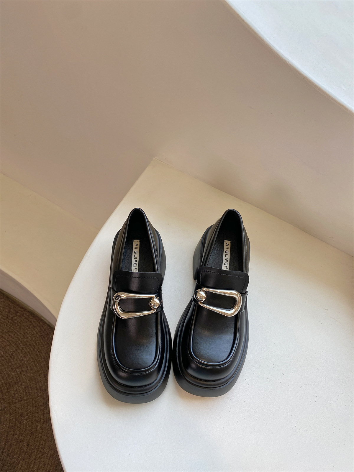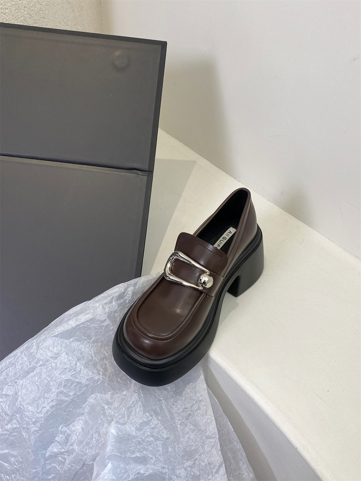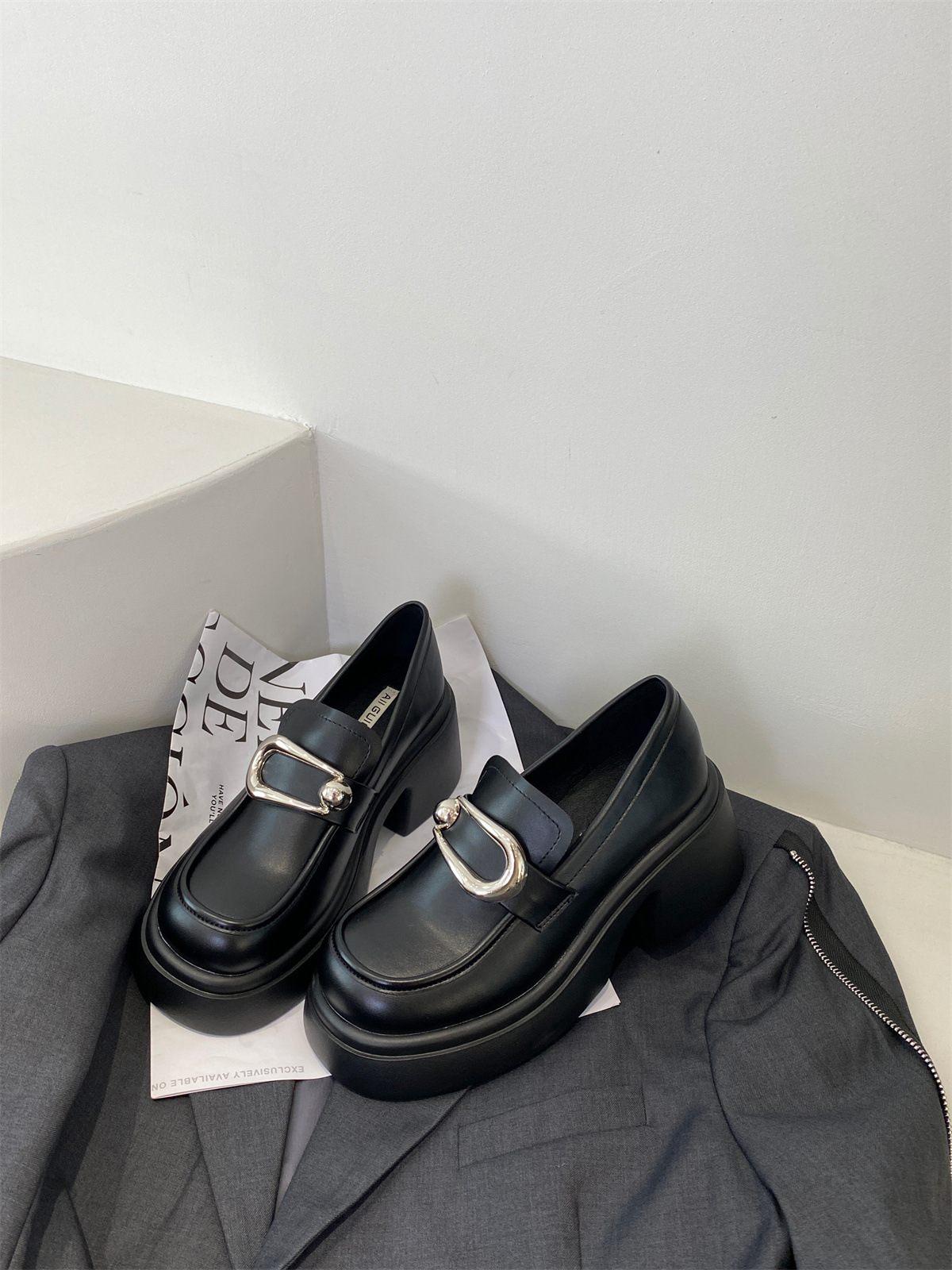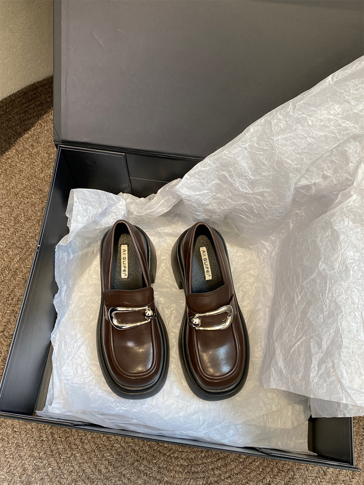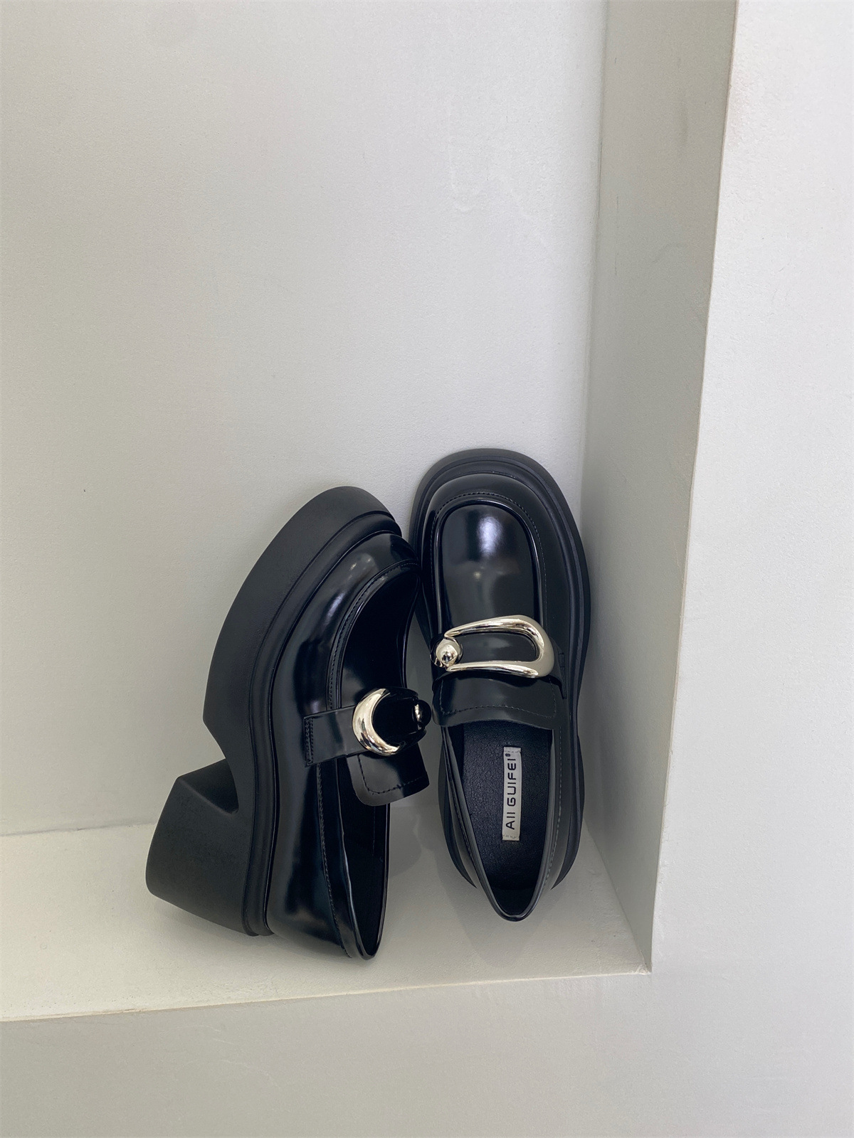 빈티지 두꺼운 밑창 높이 증가 작은 가죽 신발 여성 가을 2023 새로운 영국 스타일 로퍼 Mary Jane 단층 신발 여성 신발스토어 가기