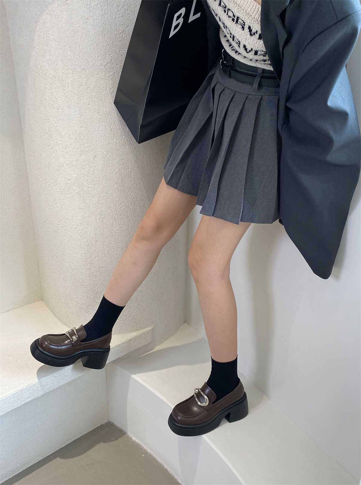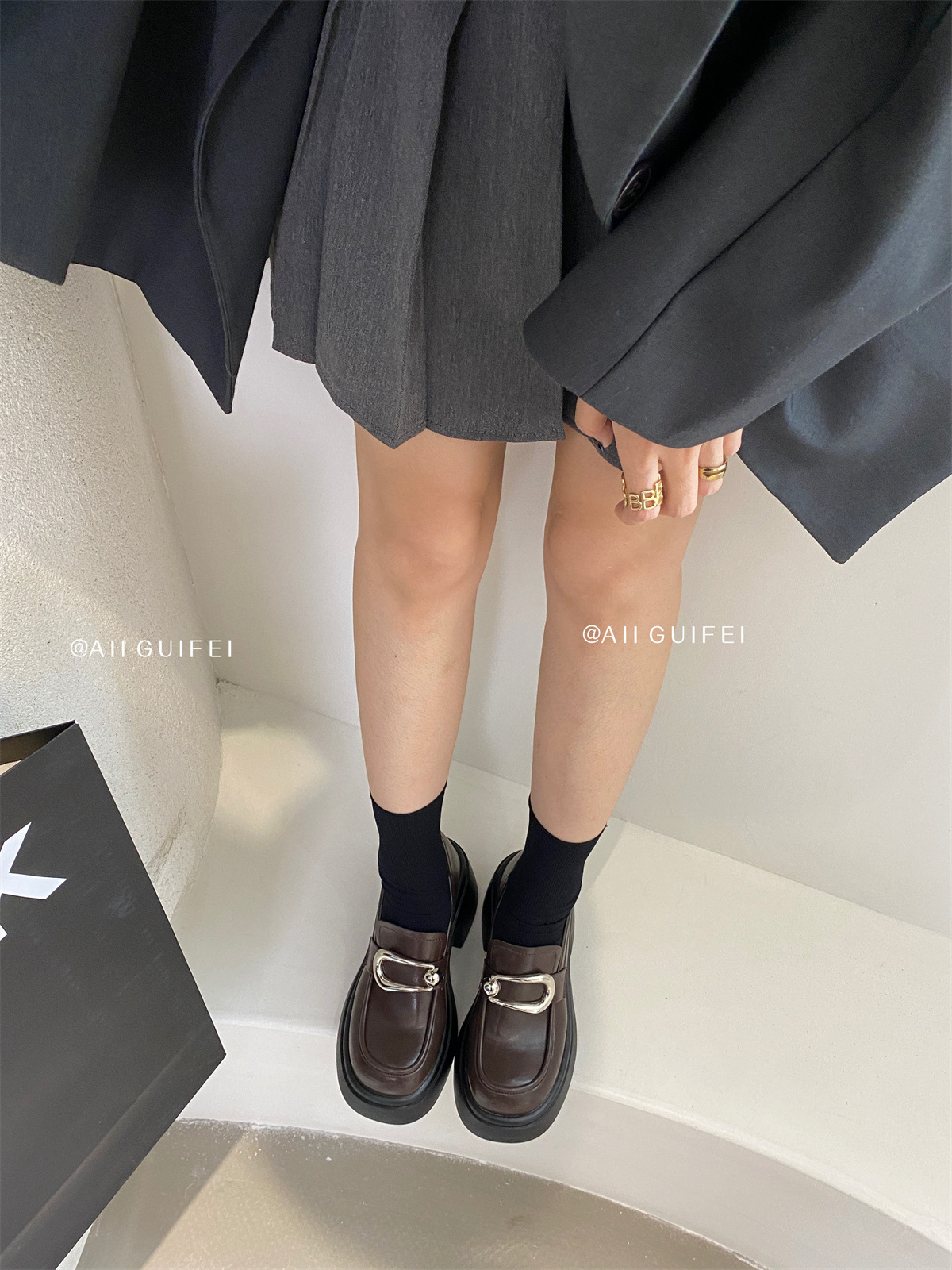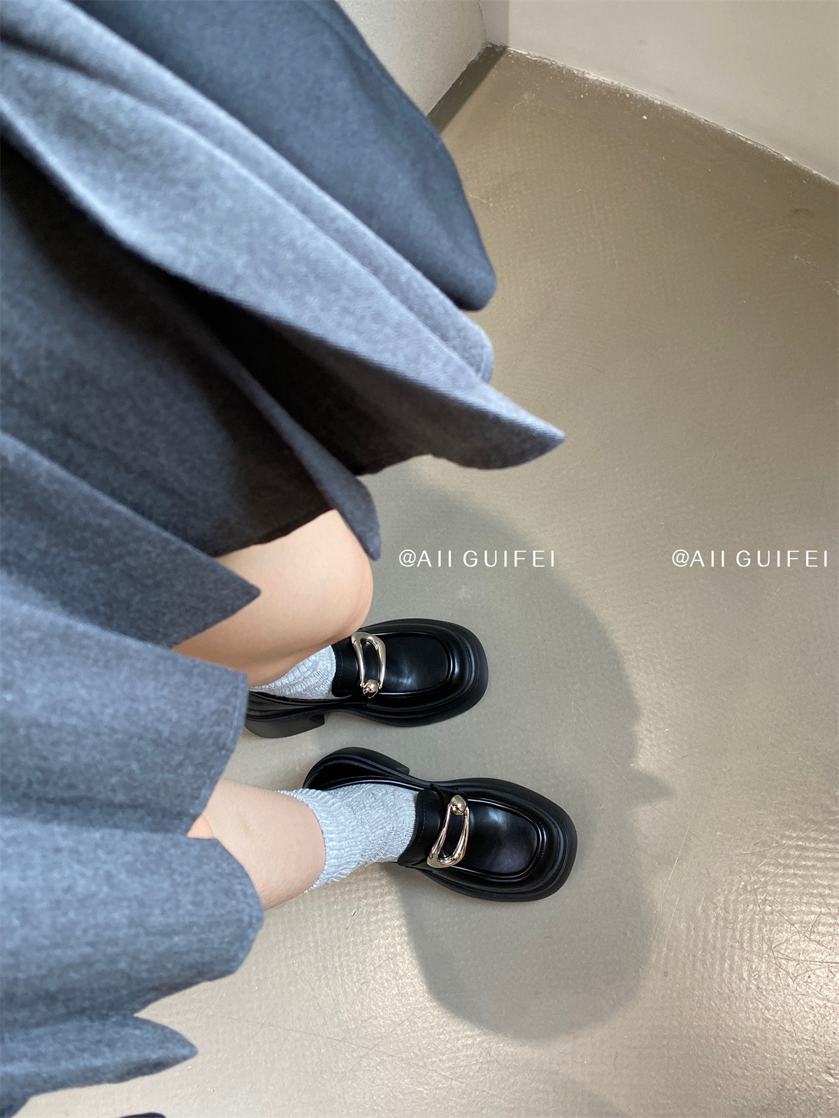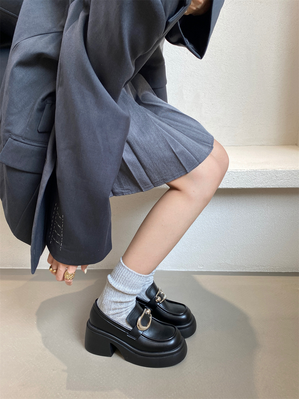 빈티지 두꺼운 밑창 높이 증가 작은 가죽 신발 여성 가을 2023 새로운 영국 스타일 로퍼 Mary Jane 단층 신발 여성 신발스토어 가기