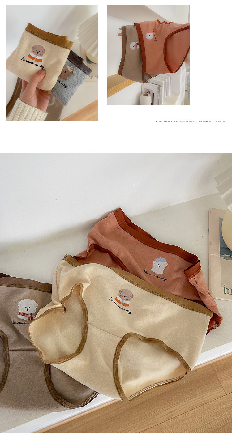 플러시 베어 ~ 드 롱 여성 속옷 기모 자가 발열 여아 속옷 순면 가랑이 심플 학생 속옷