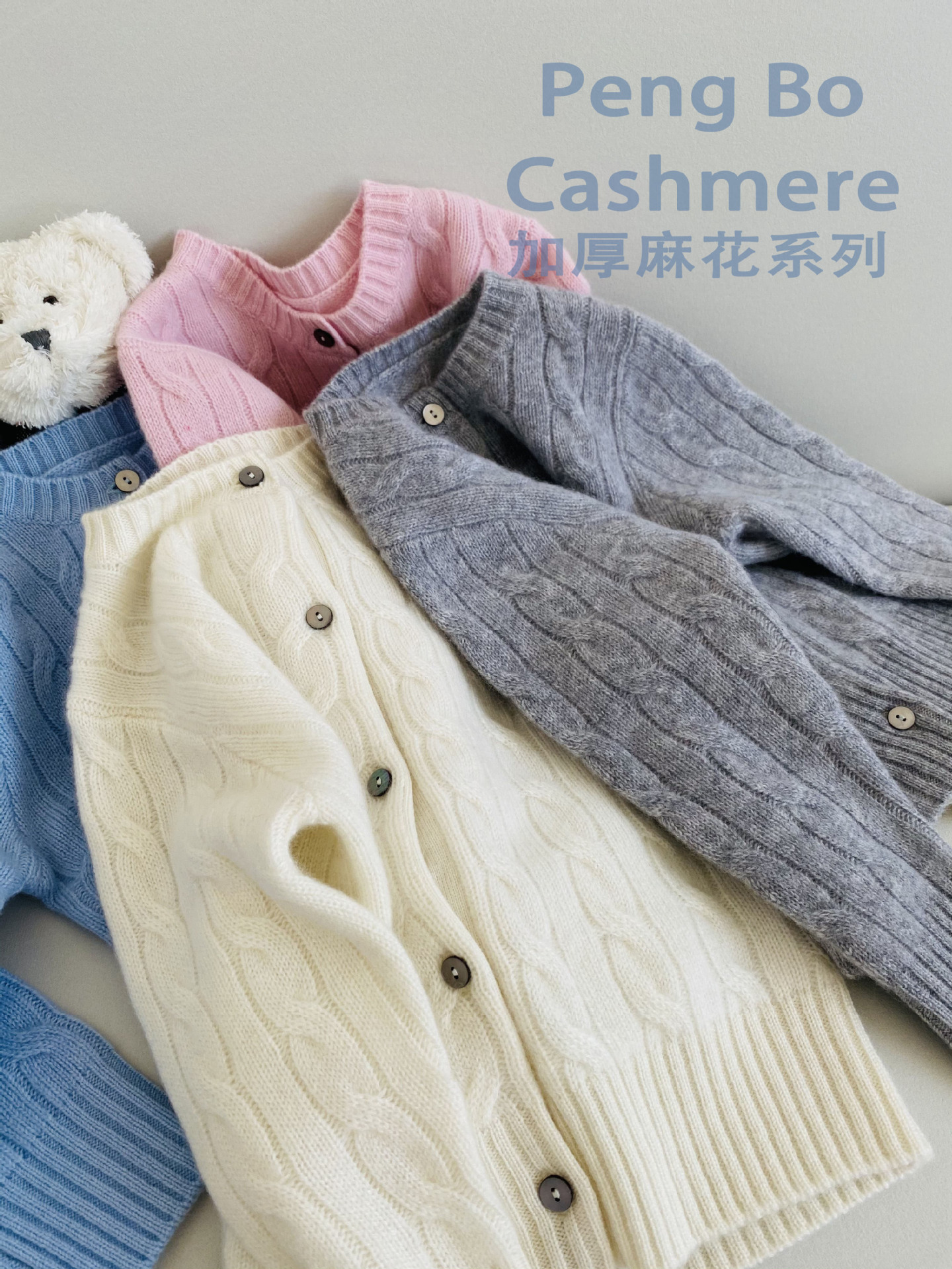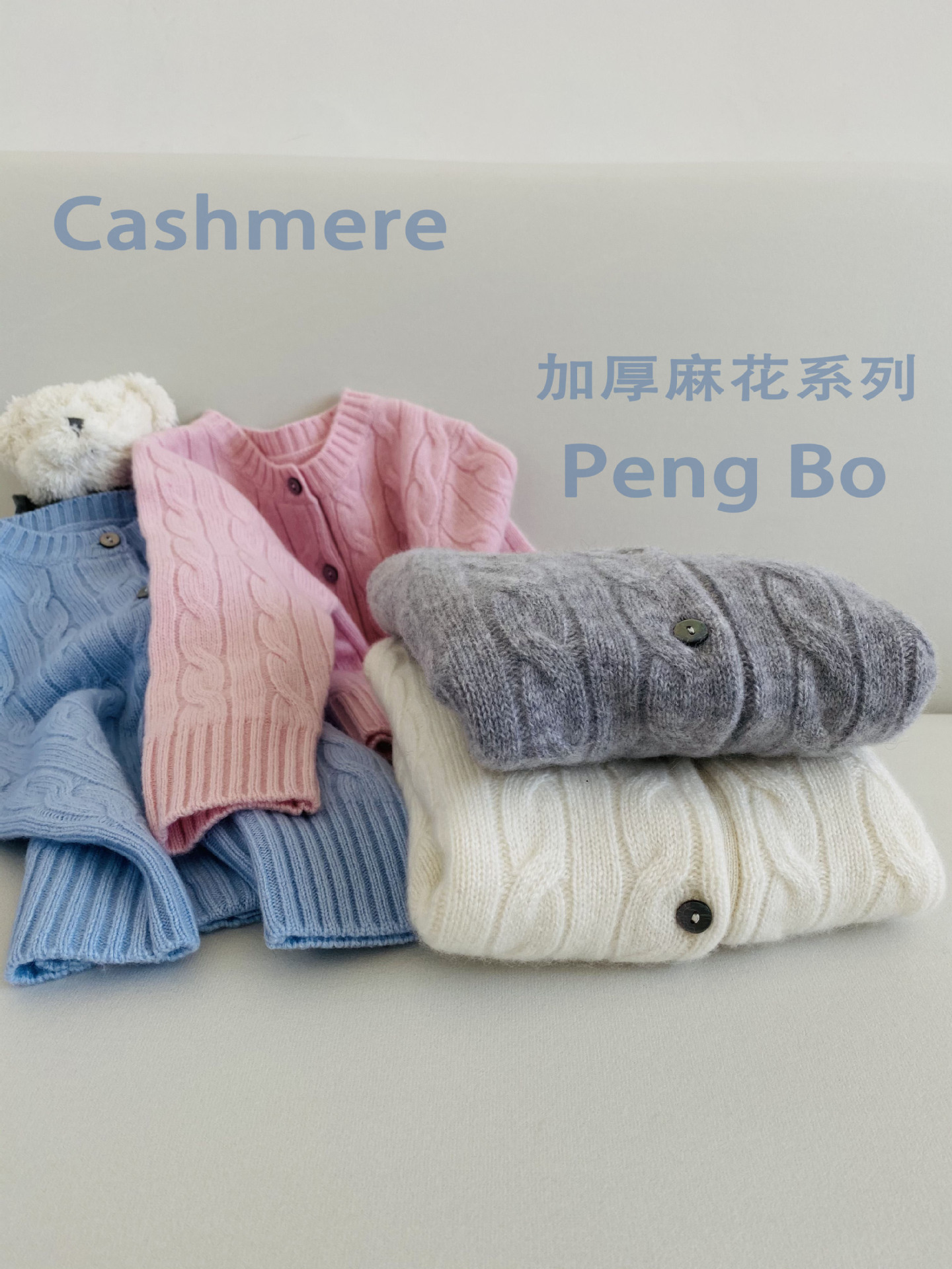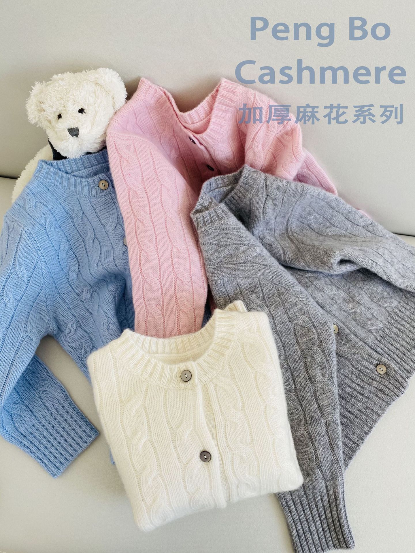 내몽골 펭보 캐시미어 가을 새로운 어린이 캐시미어 스웨터 라운드 넥 카디건 긴 소매 빈티지 마 꽃스토어 가기