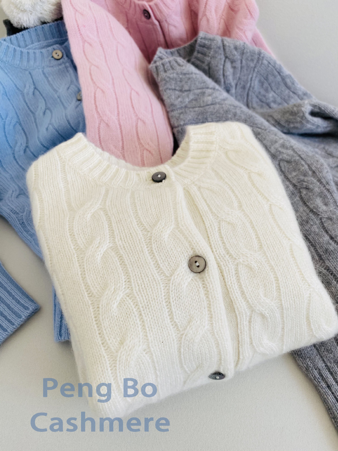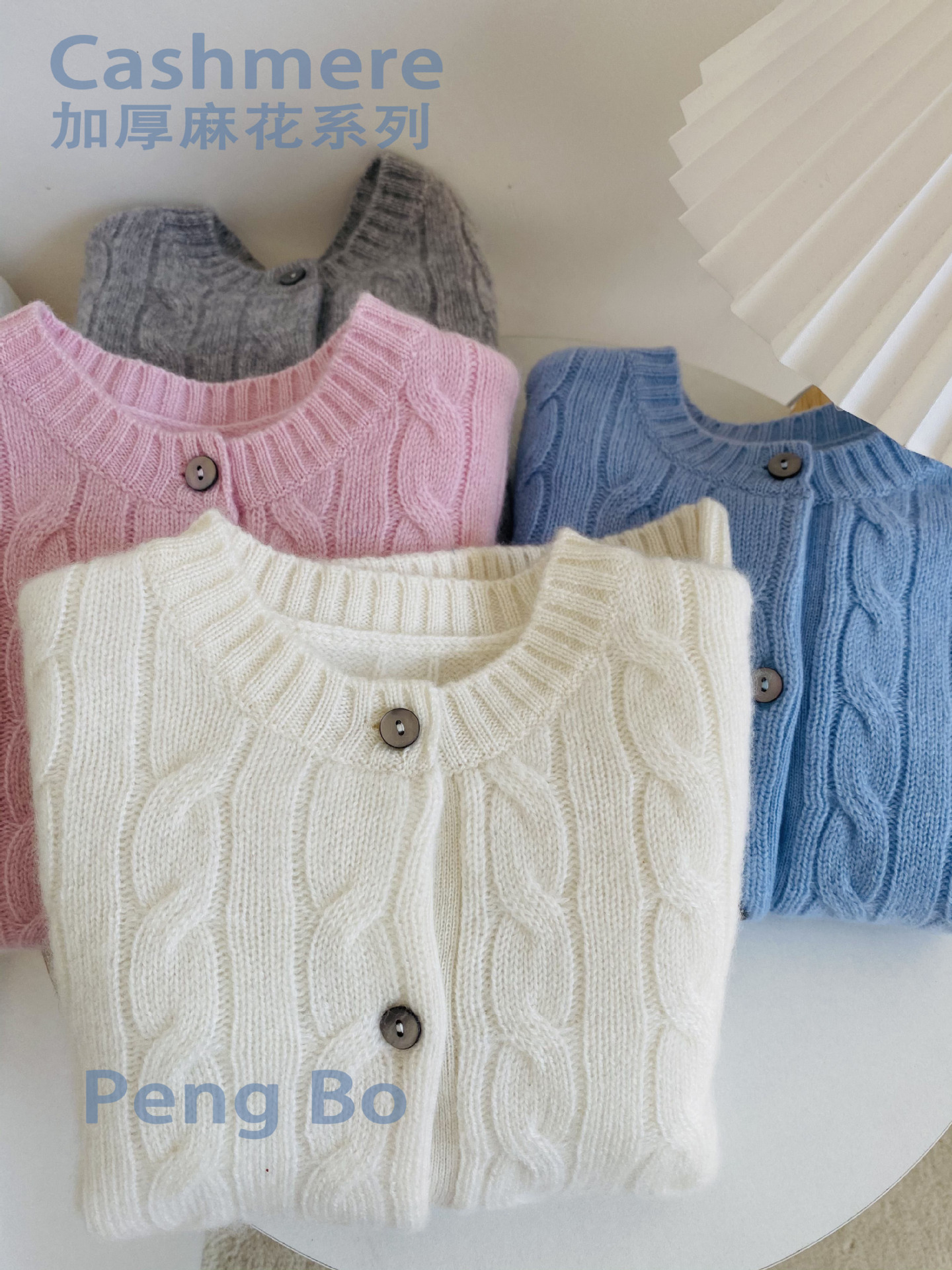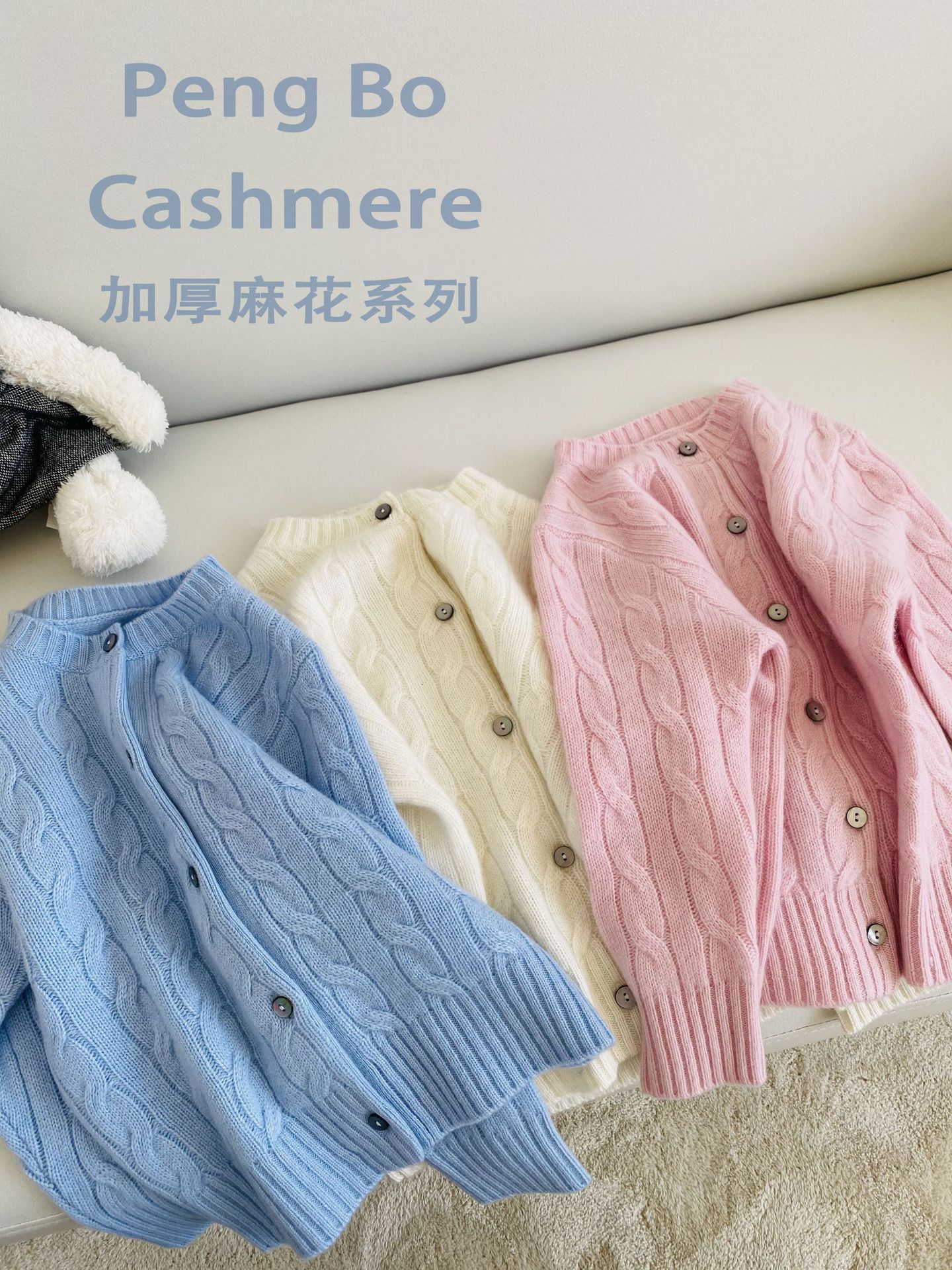 내몽골 펭보 캐시미어 가을 새로운 어린이 캐시미어 스웨터 라운드 넥 카디건 긴 소매 빈티지 마 꽃스토어 가기
