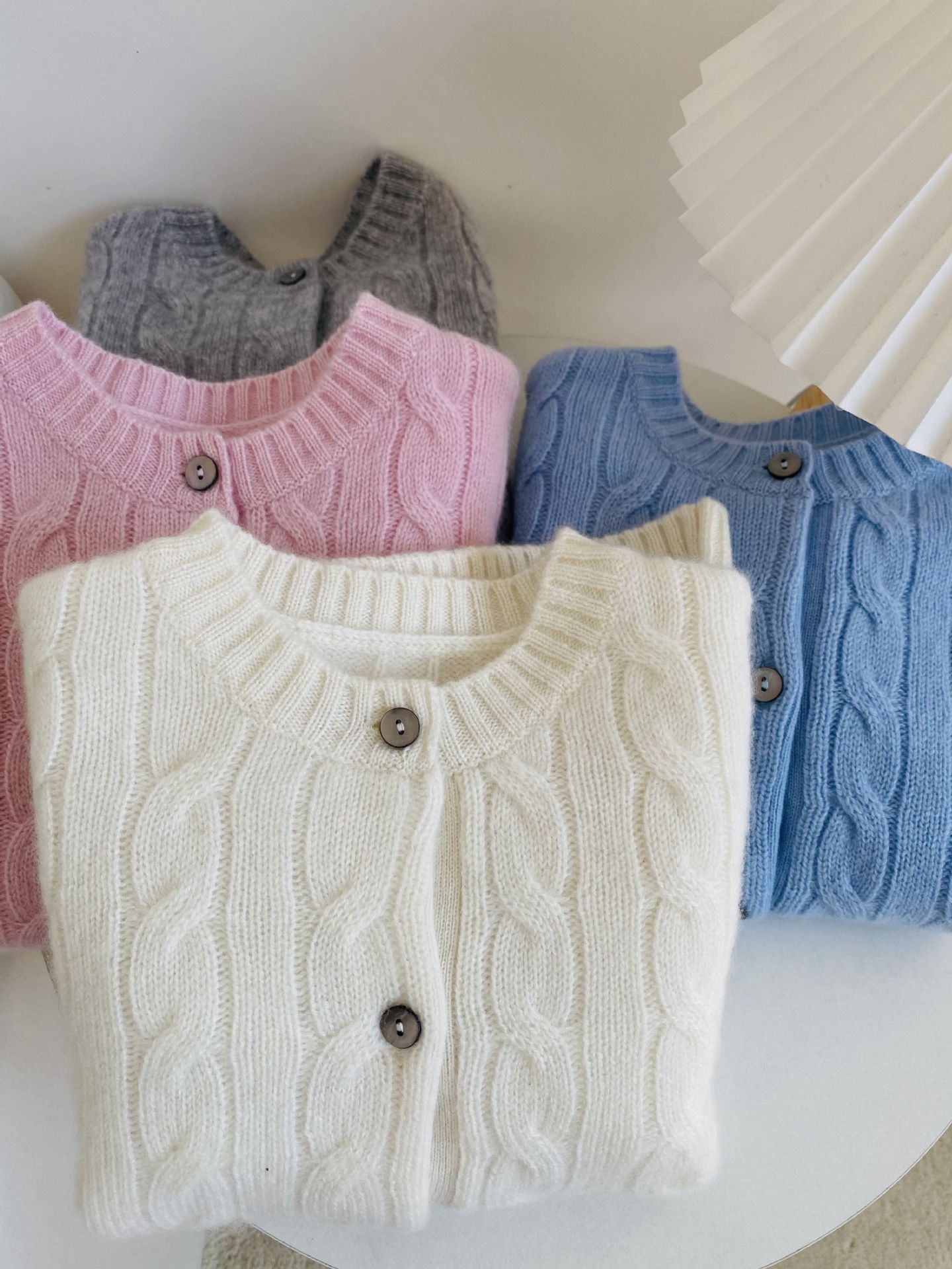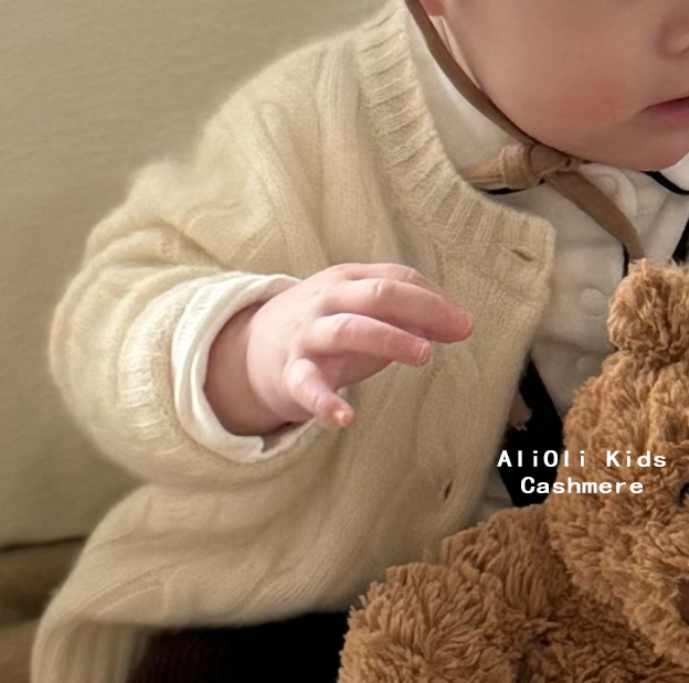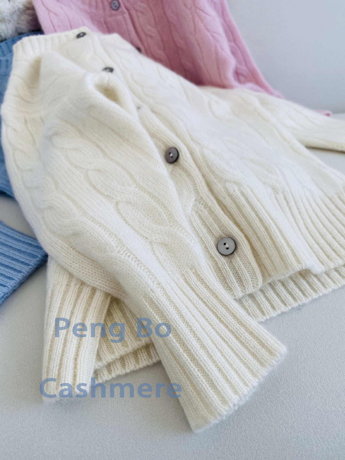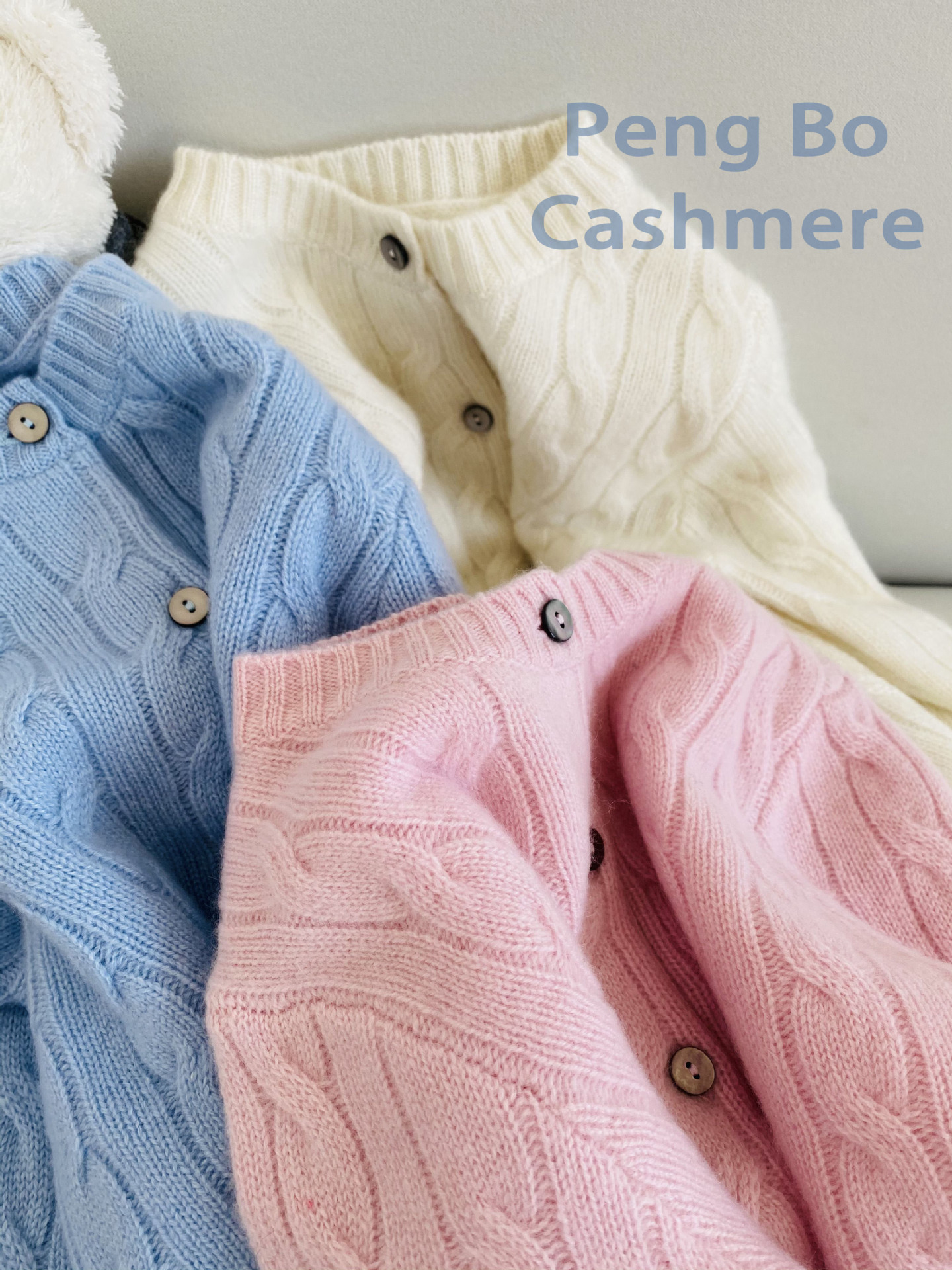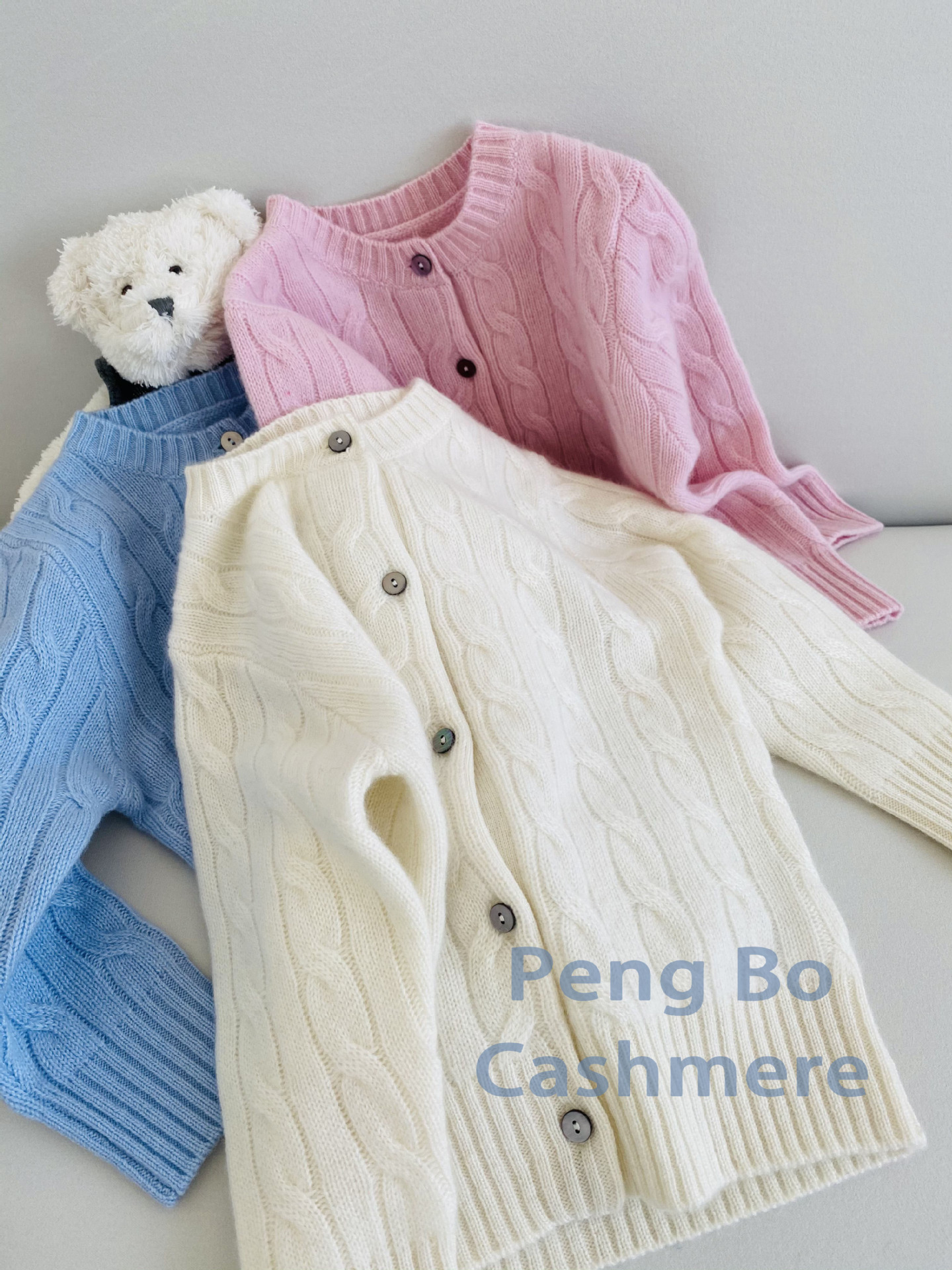 내몽골 펭보 캐시미어 가을 새로운 어린이 캐시미어 스웨터 라운드 넥 카디건 긴 소매 빈티지 마 꽃