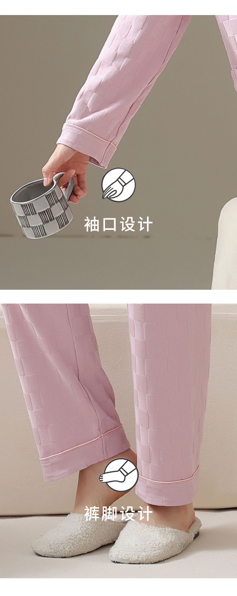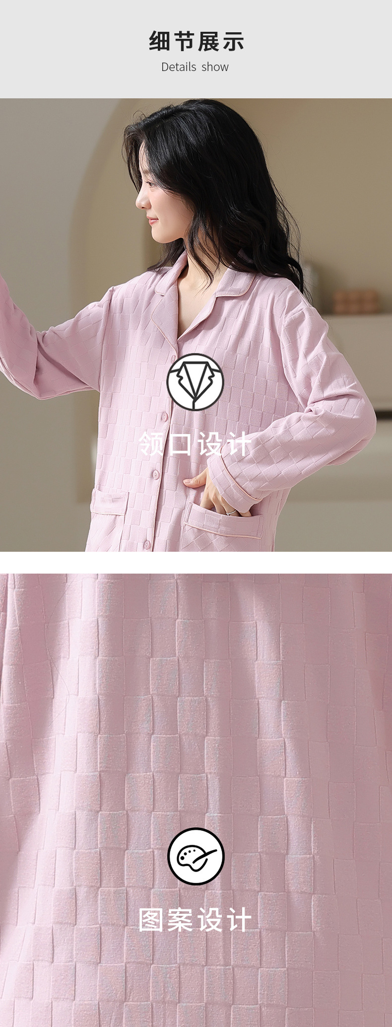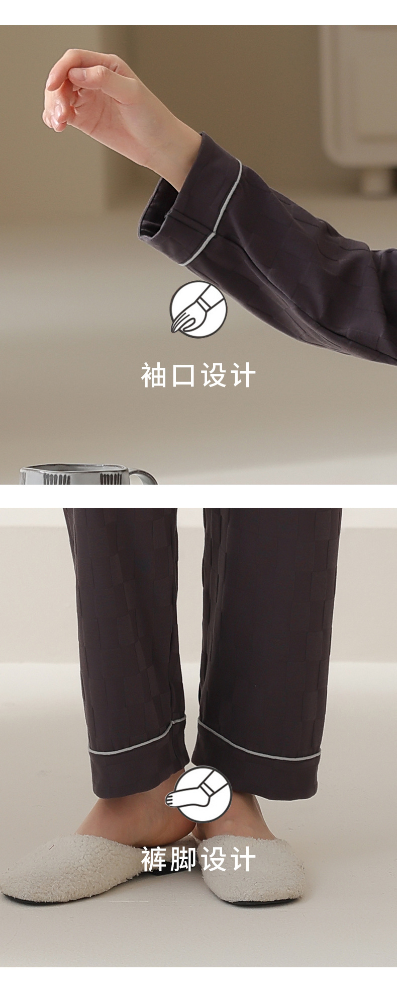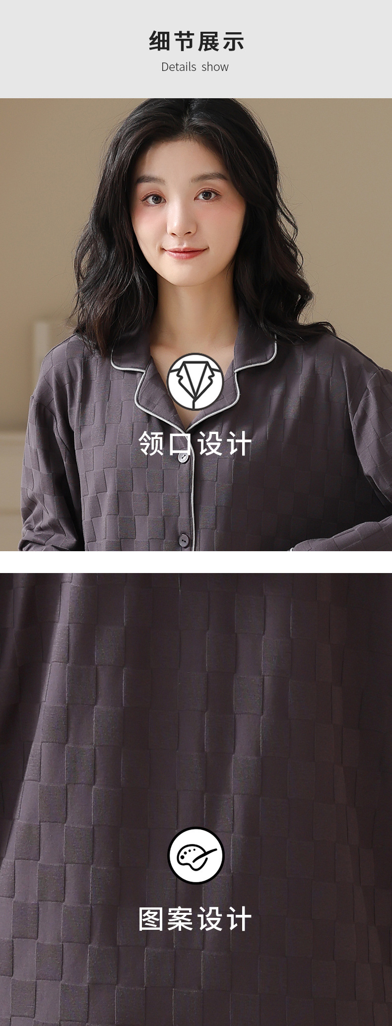 커플 잠옷 여자의 순면 봄과 가을 긴 소매 단색 격자 무늬 자카드 아웃웨어 얇은 가디건 남성 가정복