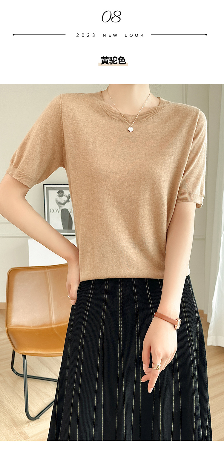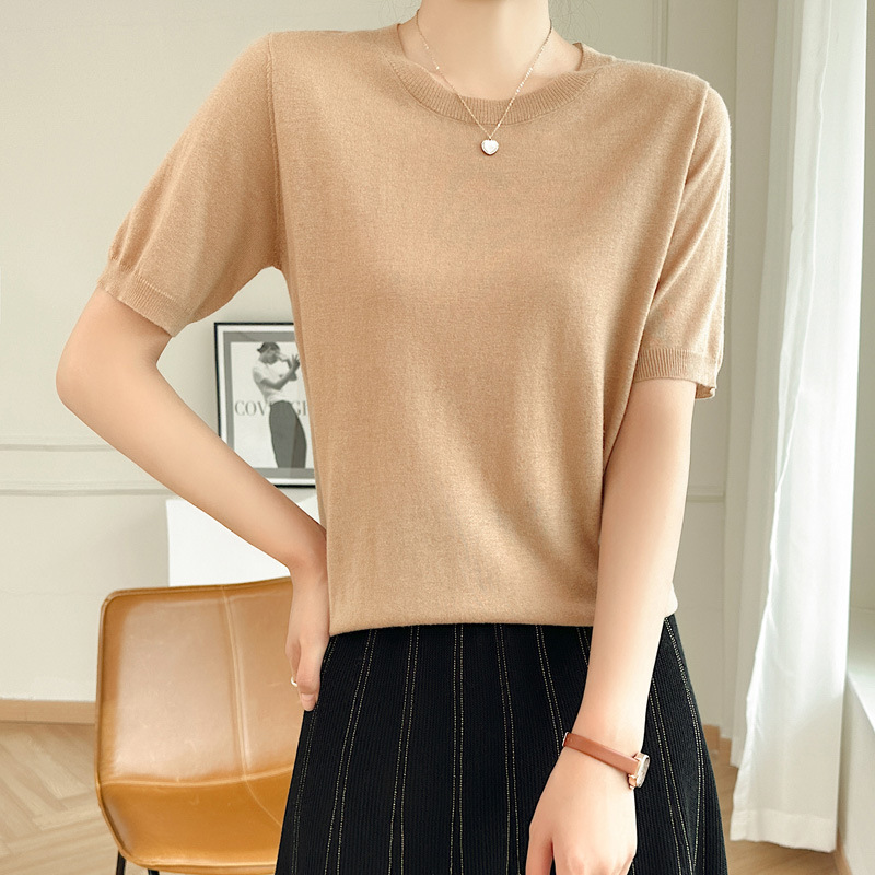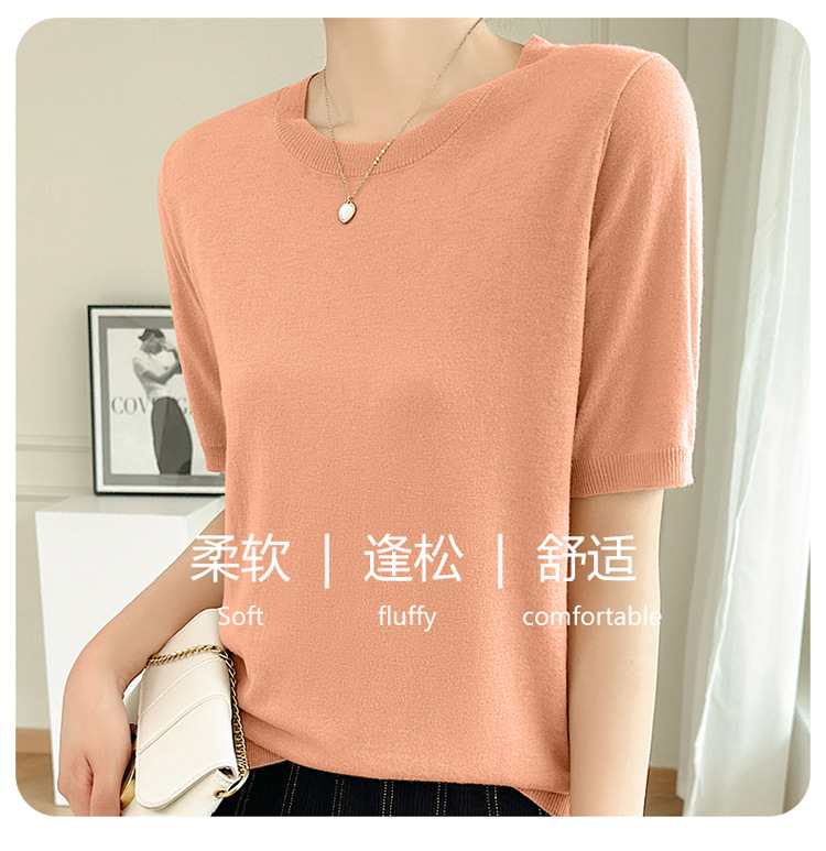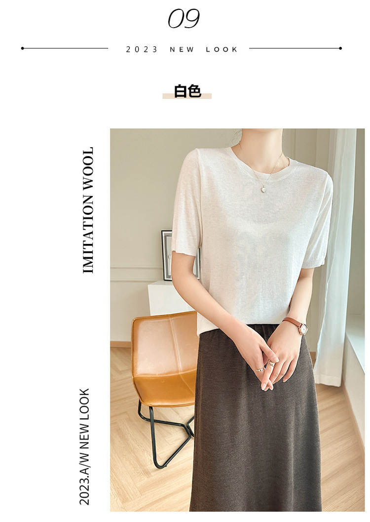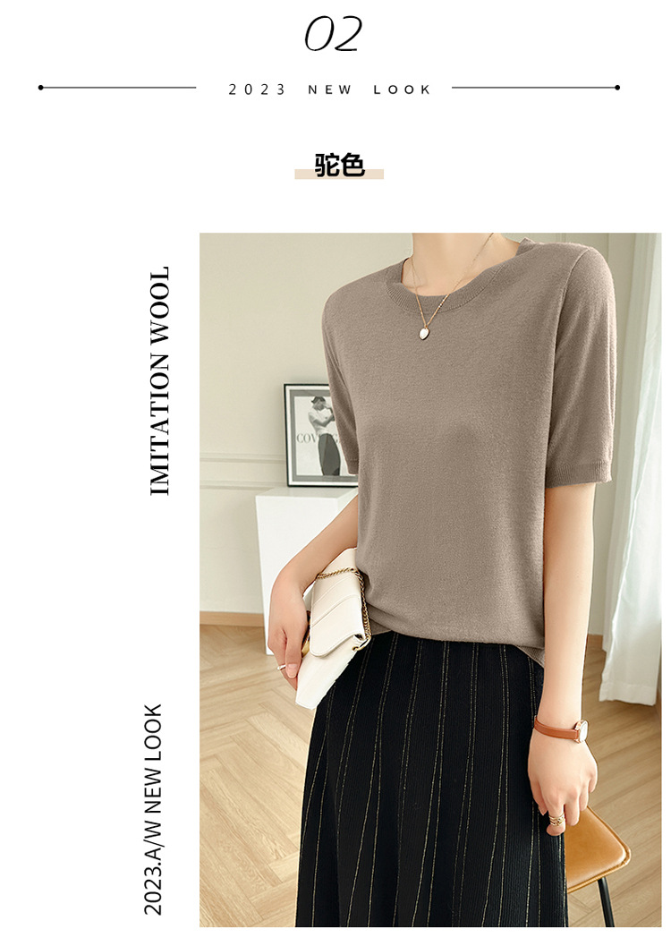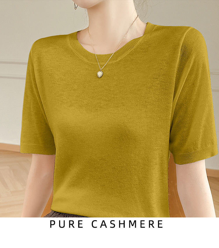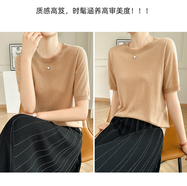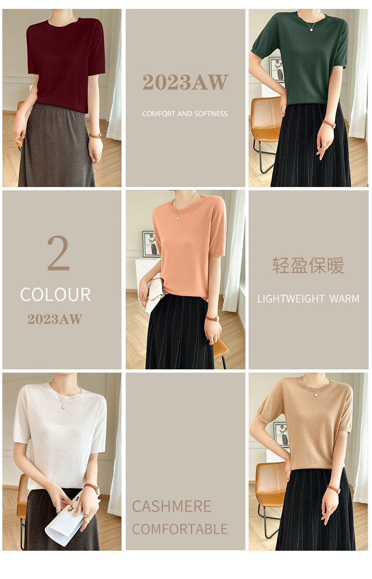 가을과 겨울 2023 새로운 캐시미어 혼방 반팔 여성 크루넥 니트 반 소매 느슨한 반 소매 캐시미어 스웨터스토어 가기