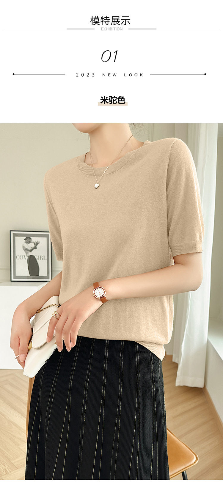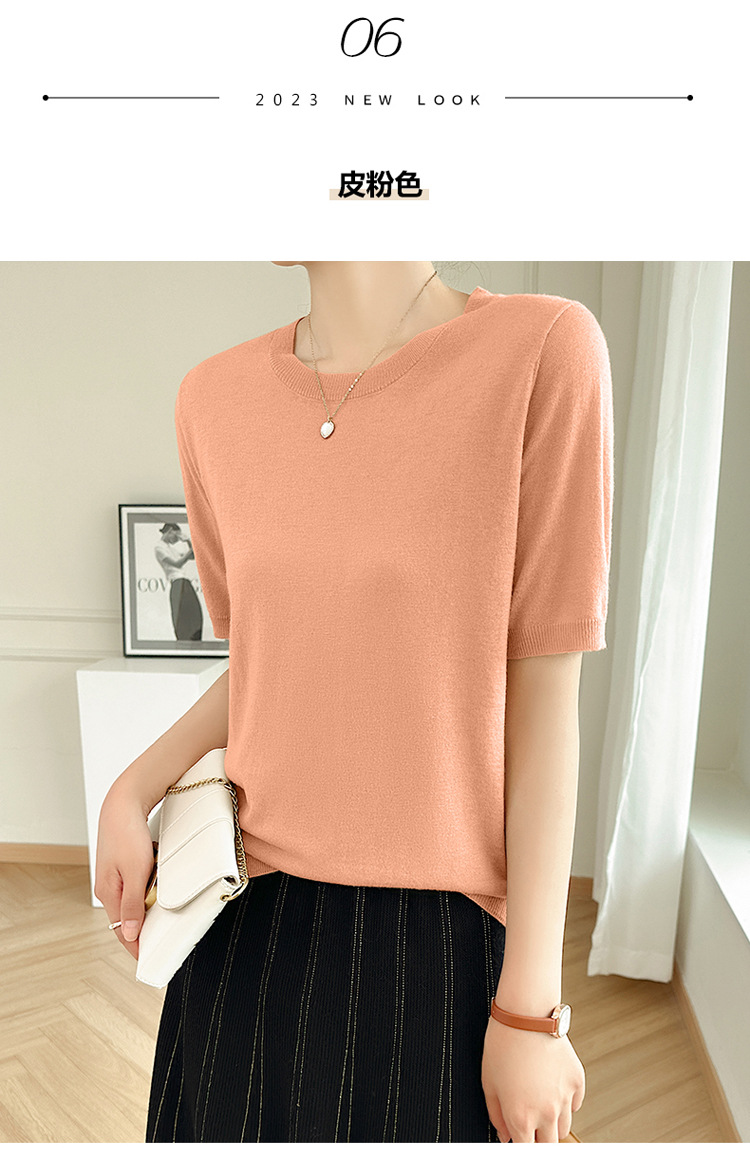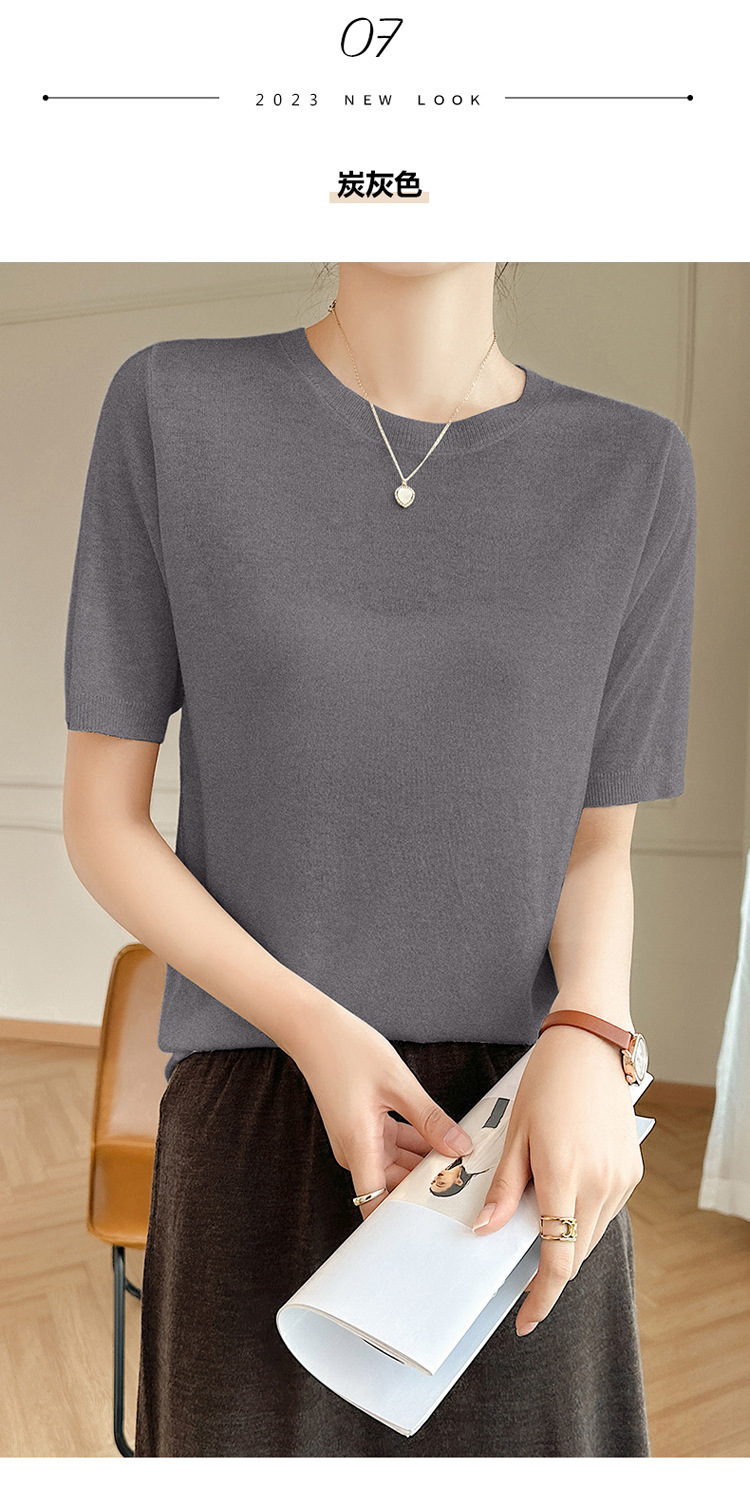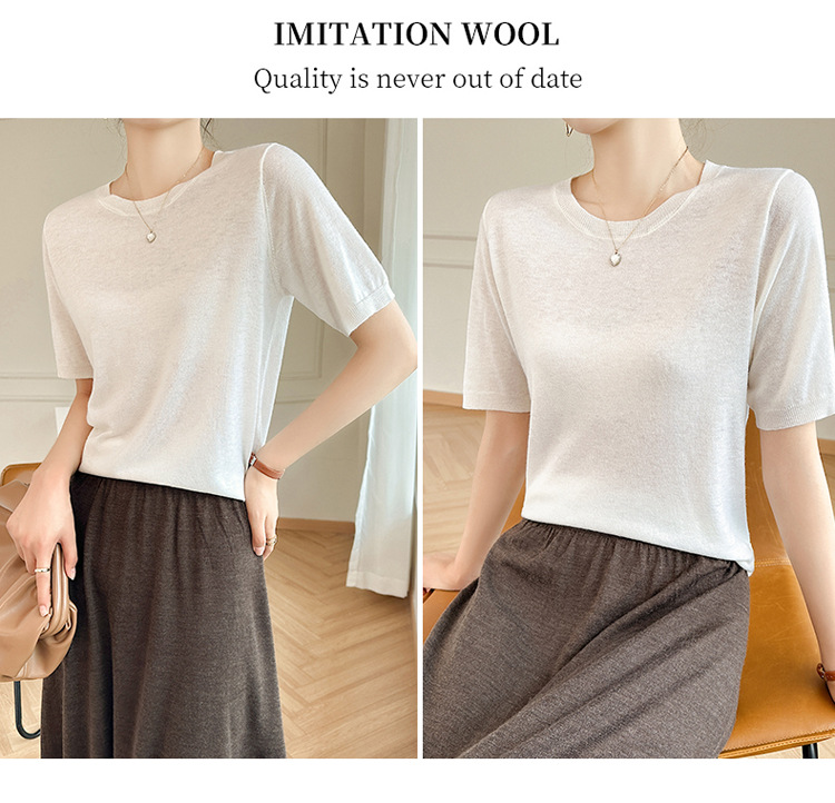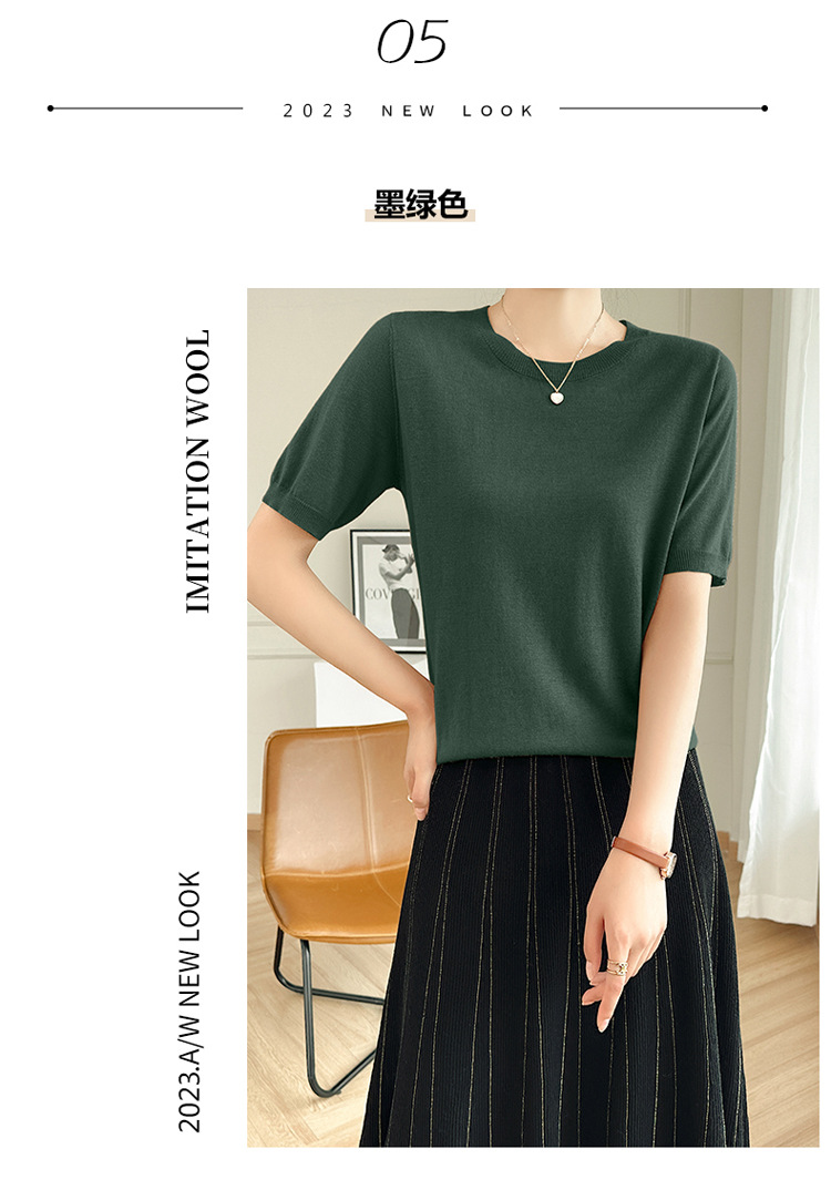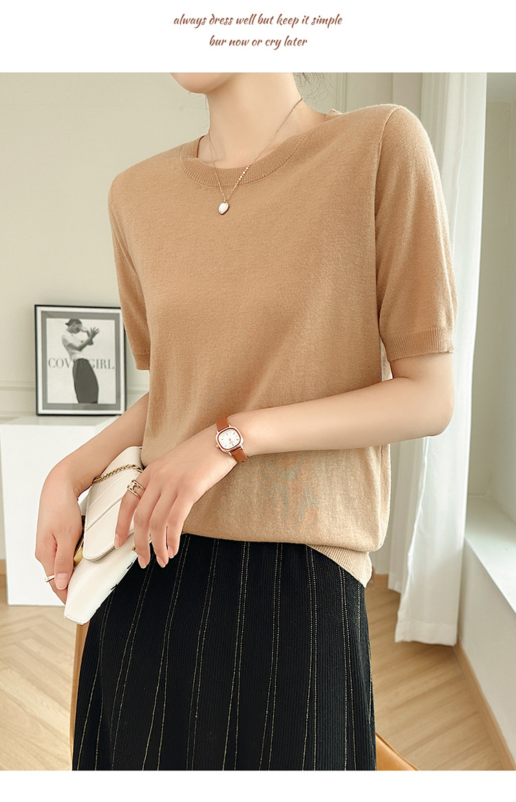 가을과 겨울 2023 새로운 캐시미어 혼방 반팔 여성 크루넥 니트 반 소매 느슨한 반 소매 캐시미어 스웨터스토어 가기