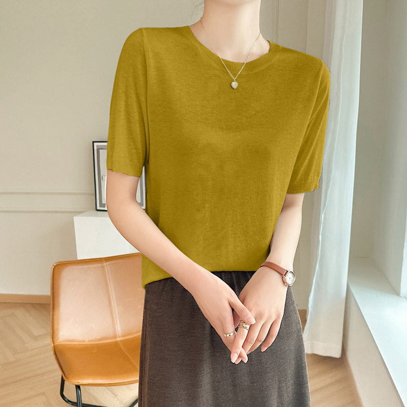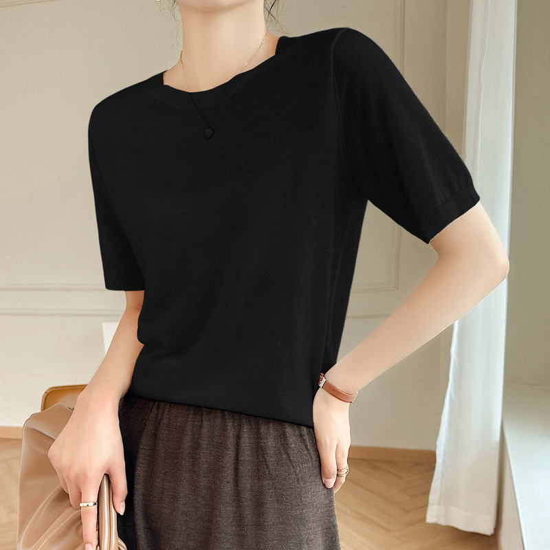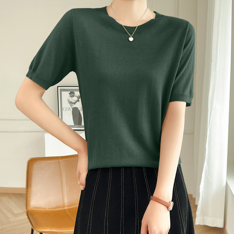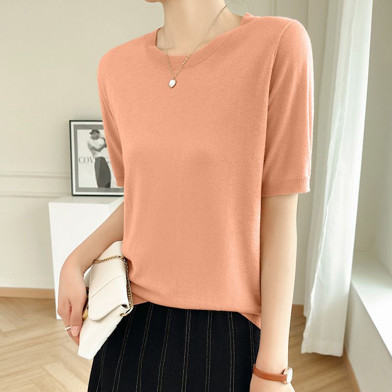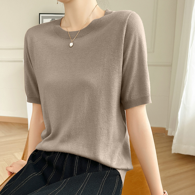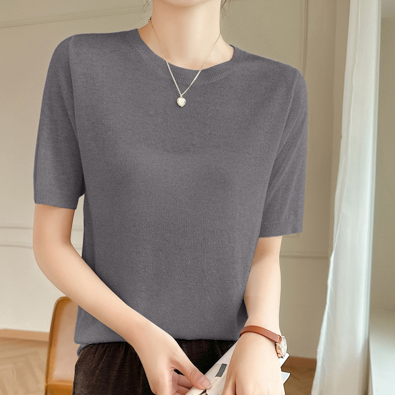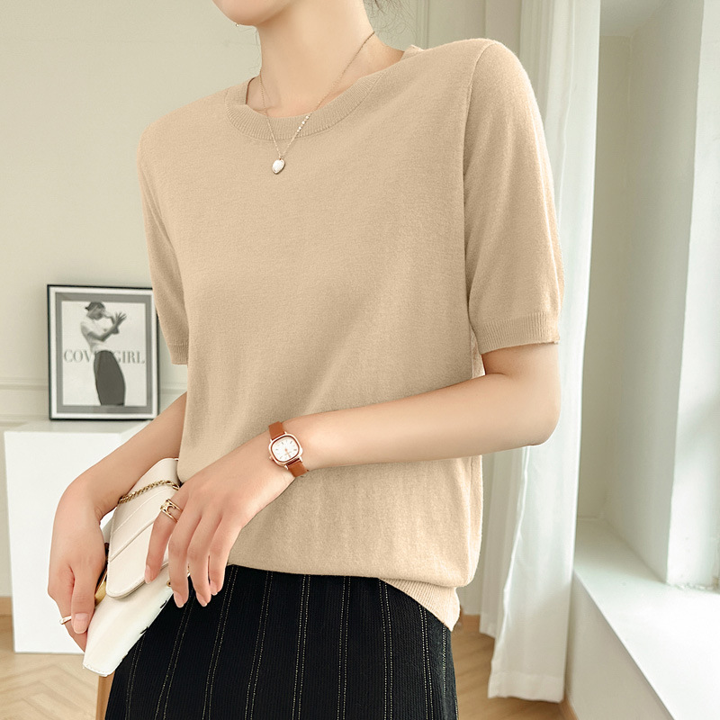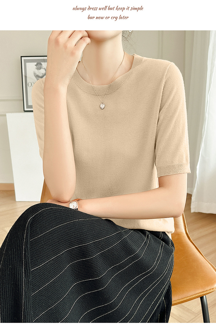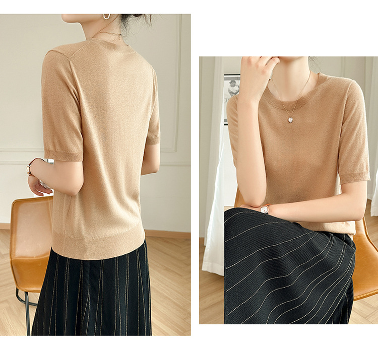가을과 겨울 2023 새로운 캐시미어 혼방 반팔 여성 크루넥 니트 반 소매 느슨한 반 소매 캐시미어 스웨터스토어 가기