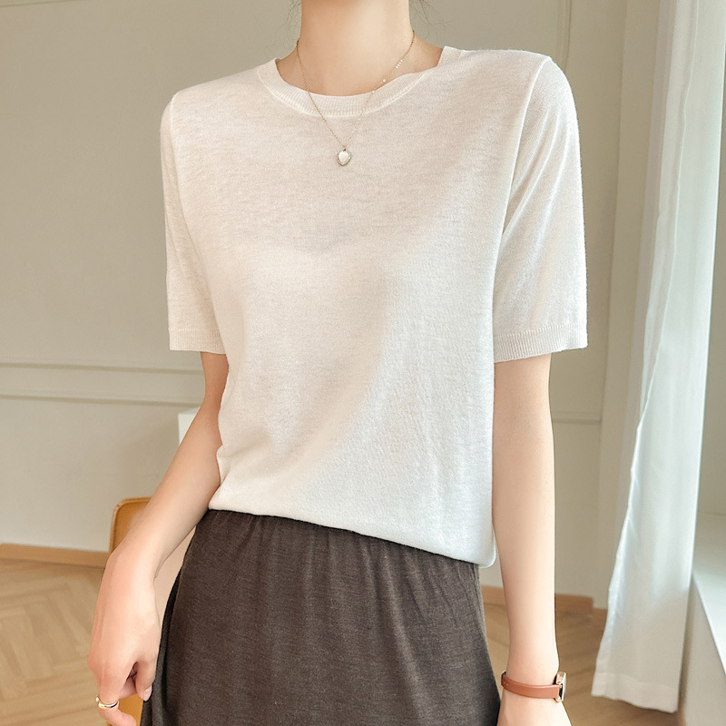 가을과 겨울 2023 새로운 캐시미어 혼방 반팔 여성 크루넥 니트 반 소매 느슨한 반 소매 캐시미어 스웨터