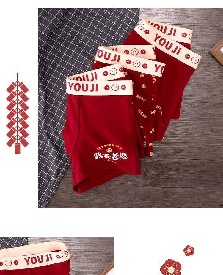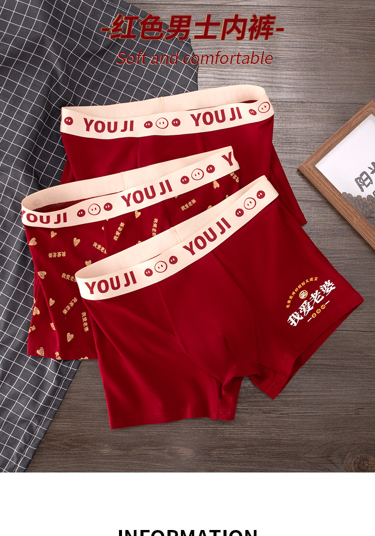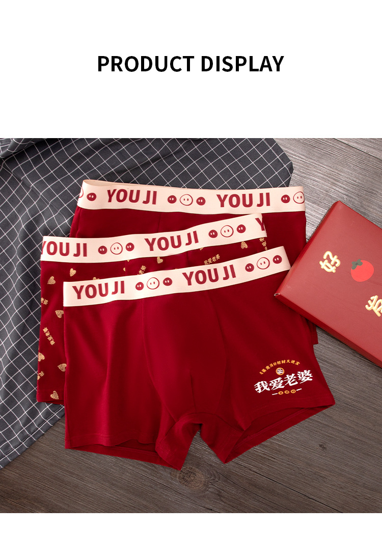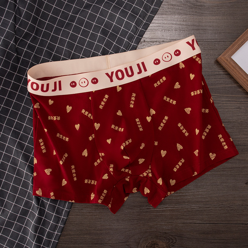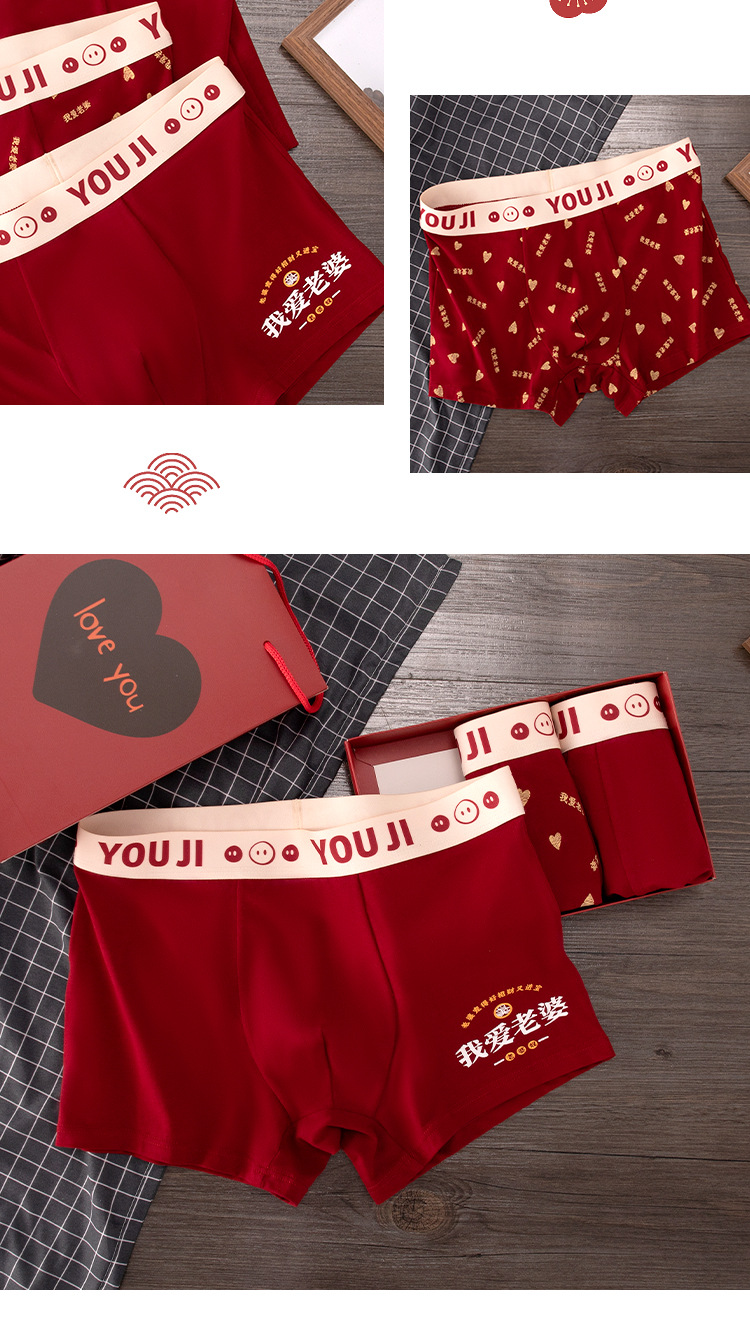 폭발 폭발 레드 남성 속옷 사각 코튼 웨딩 년 레드 I Love 아내 복서 반바지스토어 가기