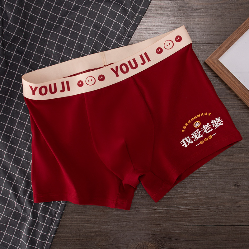 폭발 폭발 레드 남성 속옷 사각 코튼 웨딩 년 레드 I Love 아내 복서 반바지