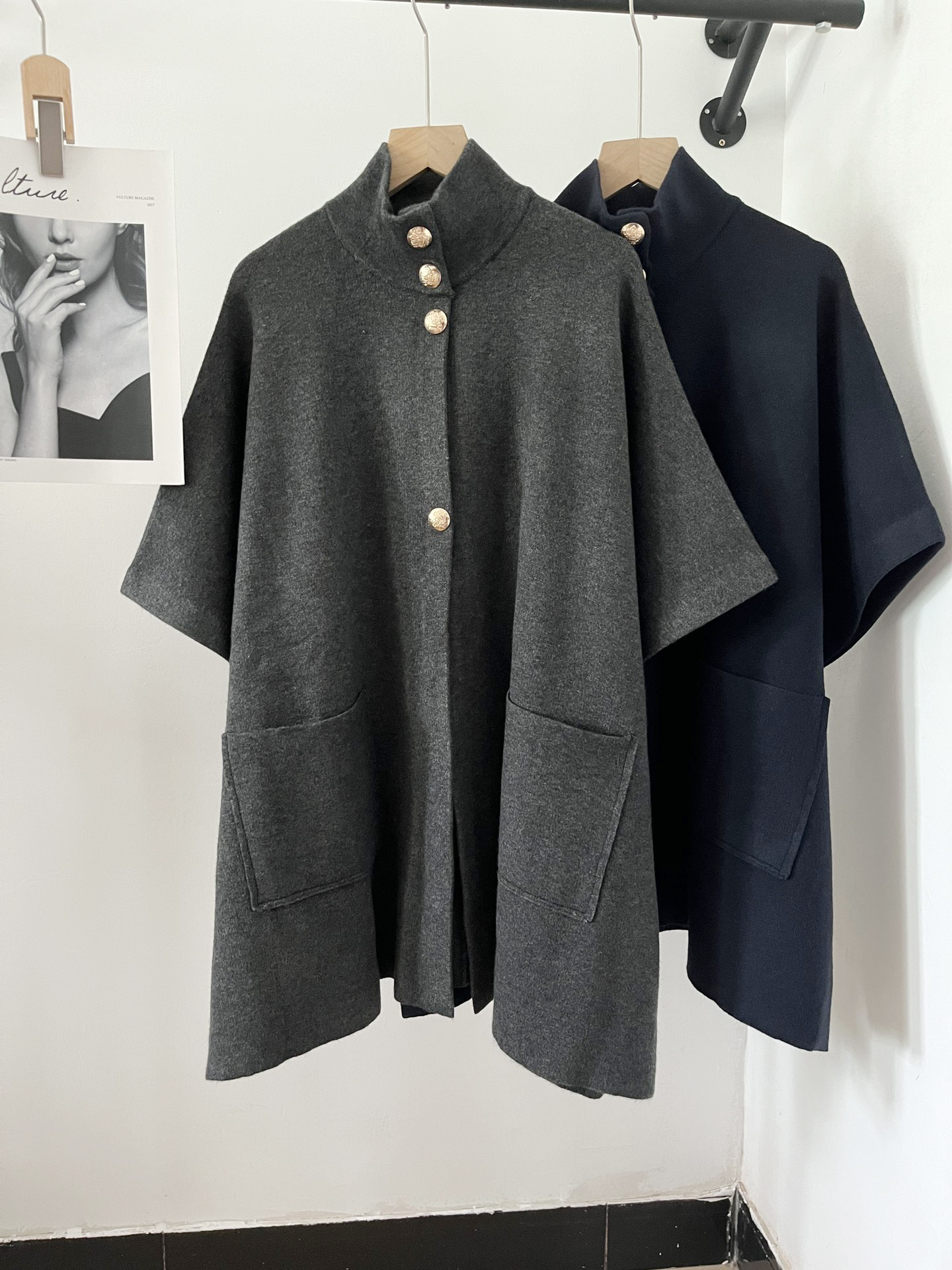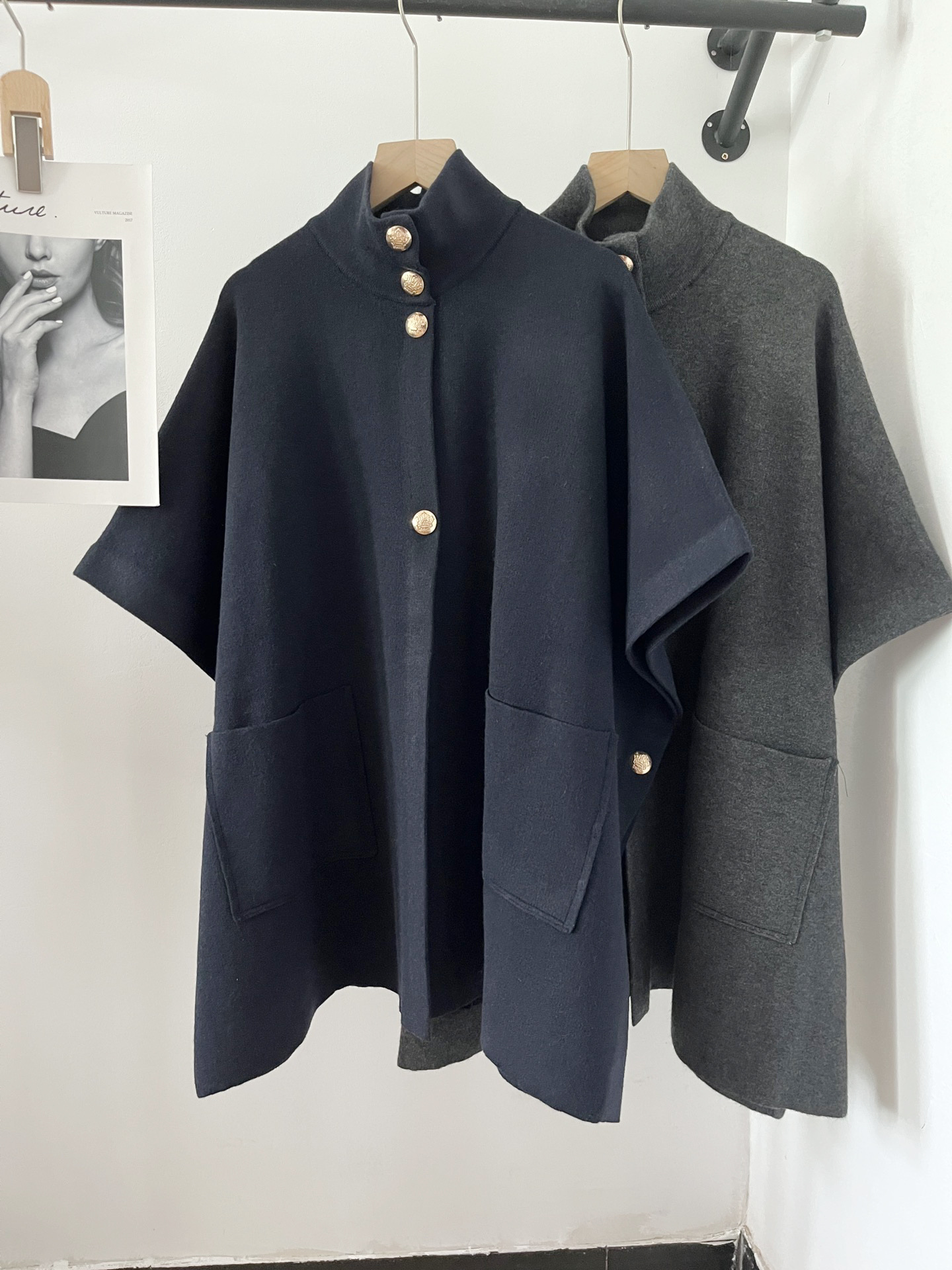 MD 스타일 여성 의류 샤넬 스타일 우아한 골든 버튼 하이 넥 니트 숄 반팔 가디건 05651601401