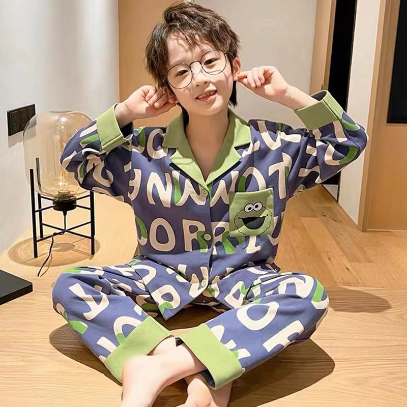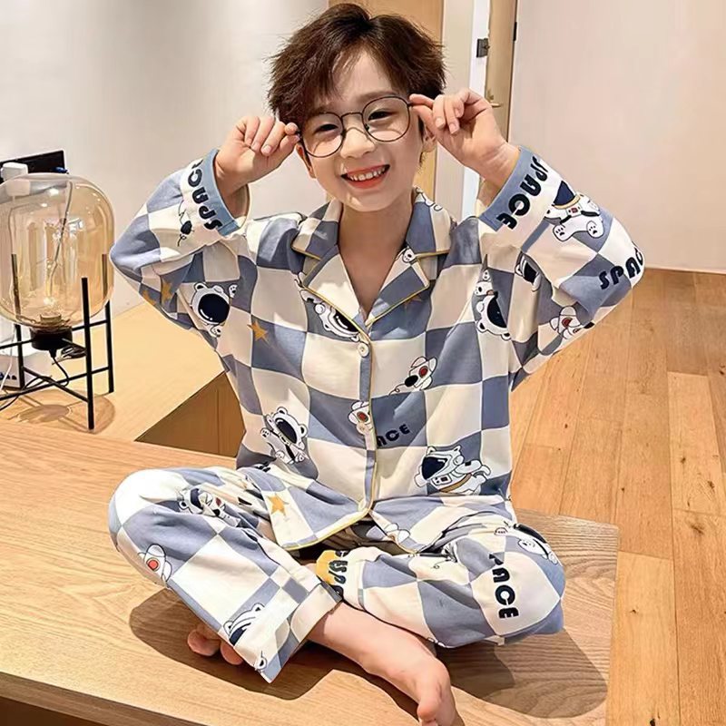 2023 새로운 어린이 잠옷 봄과 가을 소년 가디건 긴 소매 얇은 중간 및 대형 어린이 소년 10 세 가정복스토어 가기