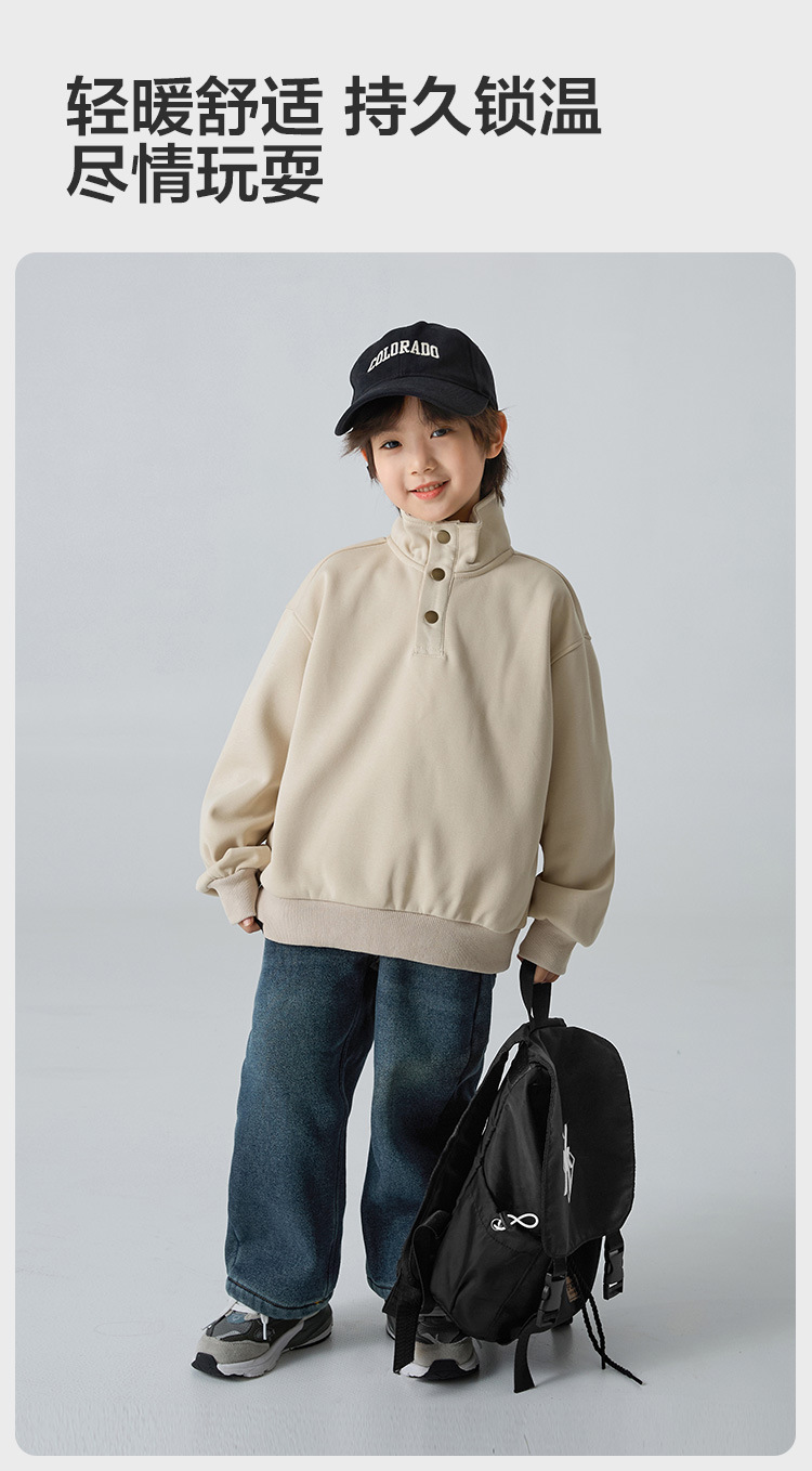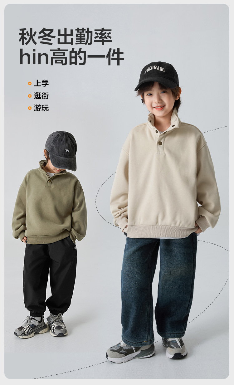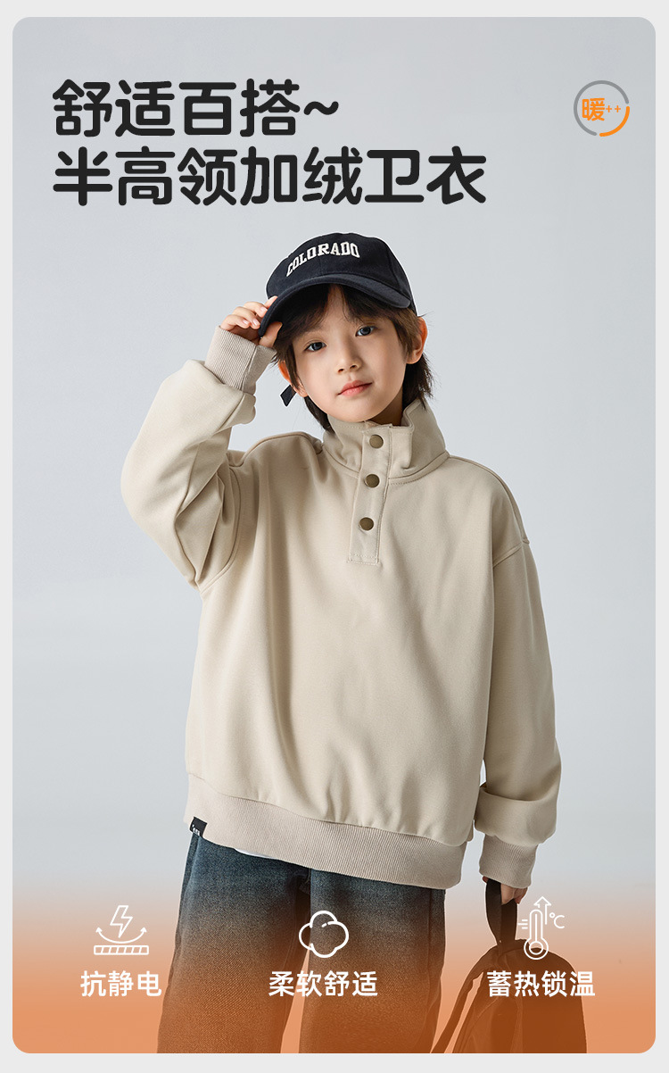 해마가족 아동복 2025 겨울 신상 남아 한국 스타일 기모 스웨트셔츠 겨울옷 컬리지 스타일 두꺼운 이너웨어스토어 가기