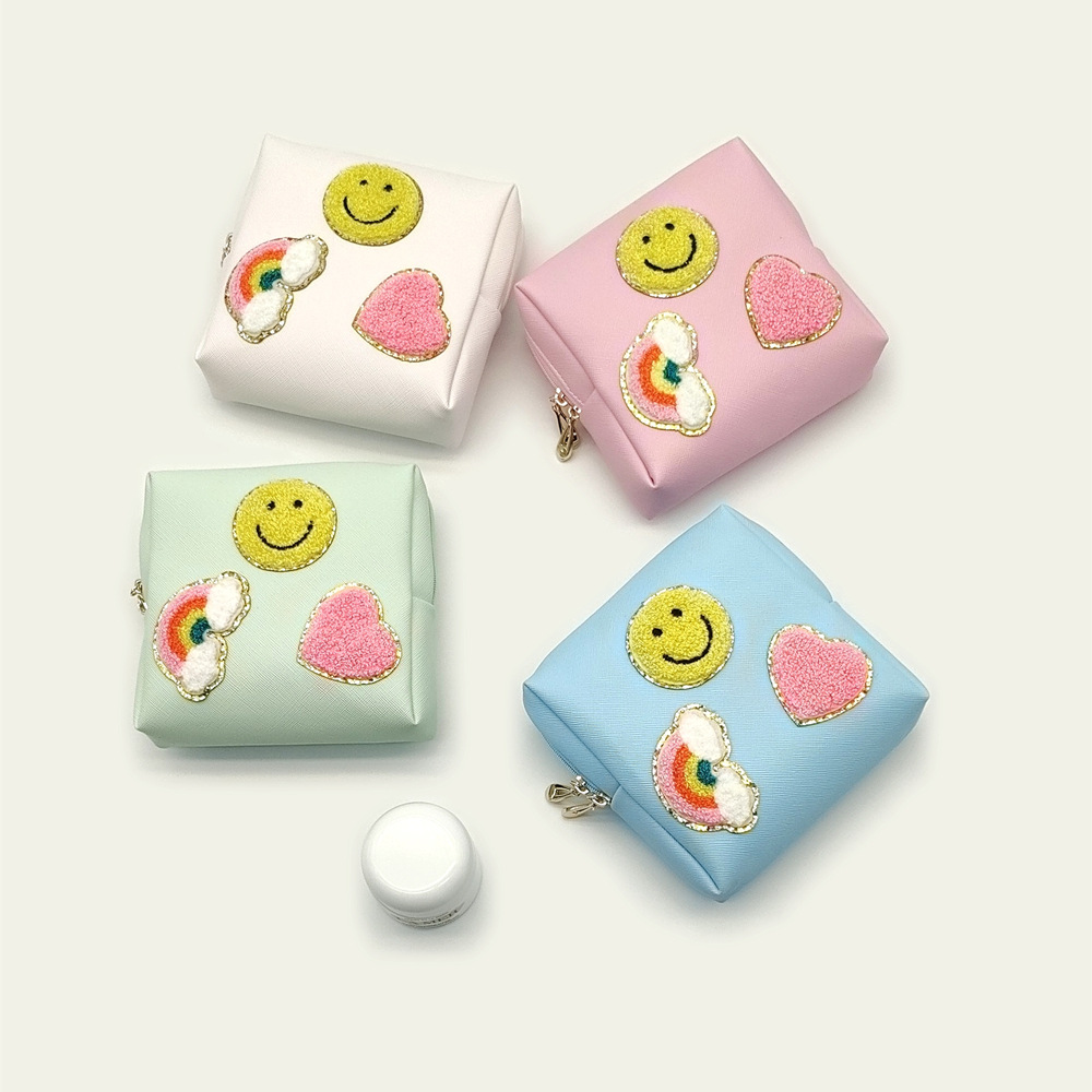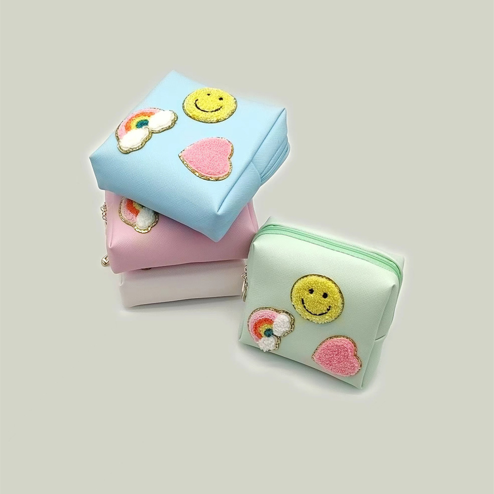 2024pu 새로운 스타일의 사각 수건 자수 수납 가방, 여행용 세면도구 가방, 여성용 동전 지갑, 립스틱 가방스토어 가기