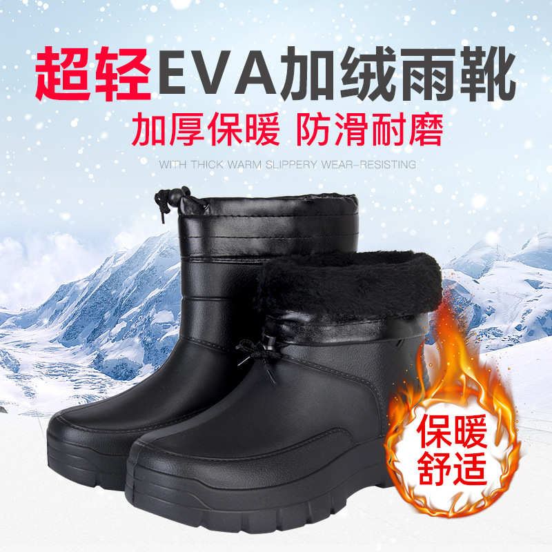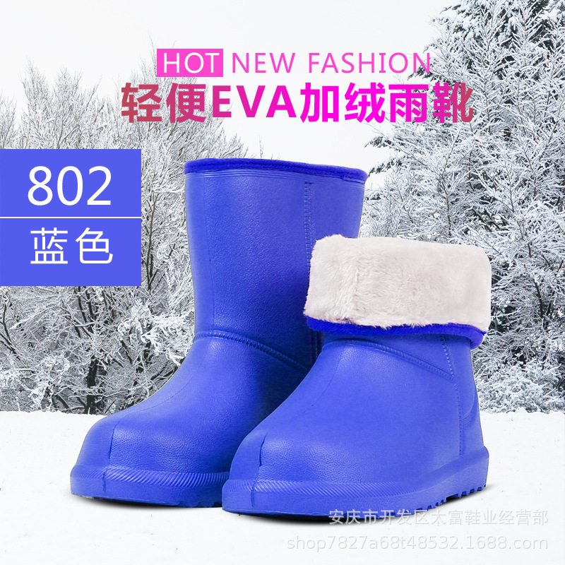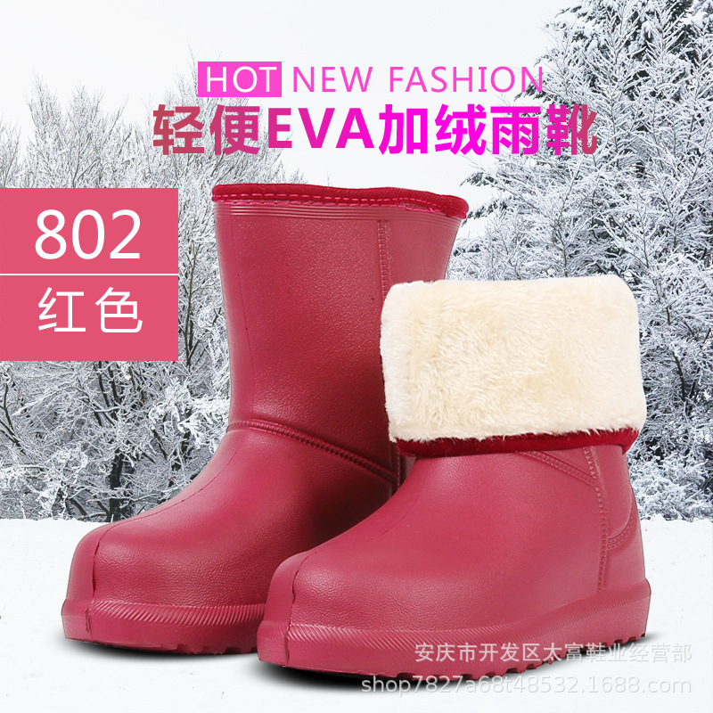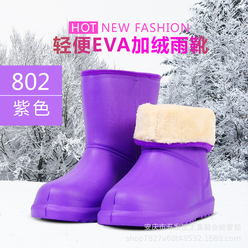 겨울 경량 EVA 폼 방수 면 신발 여성의 낮은 튜브 따뜻한 비 신발 두꺼운 미끄럼 방지 기모 스노우 부츠 재고스토어 가기