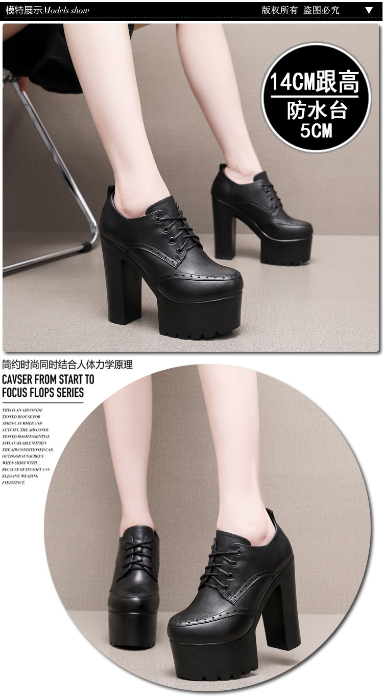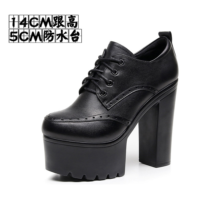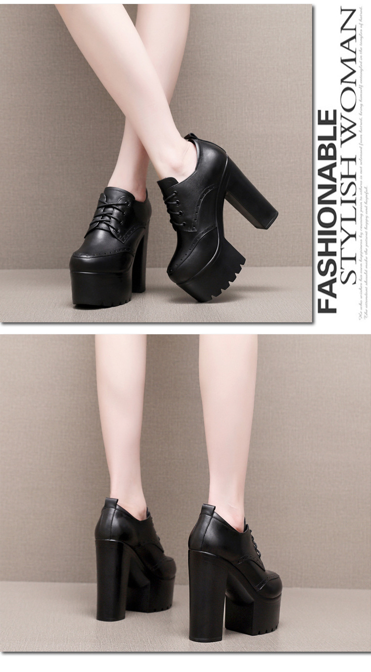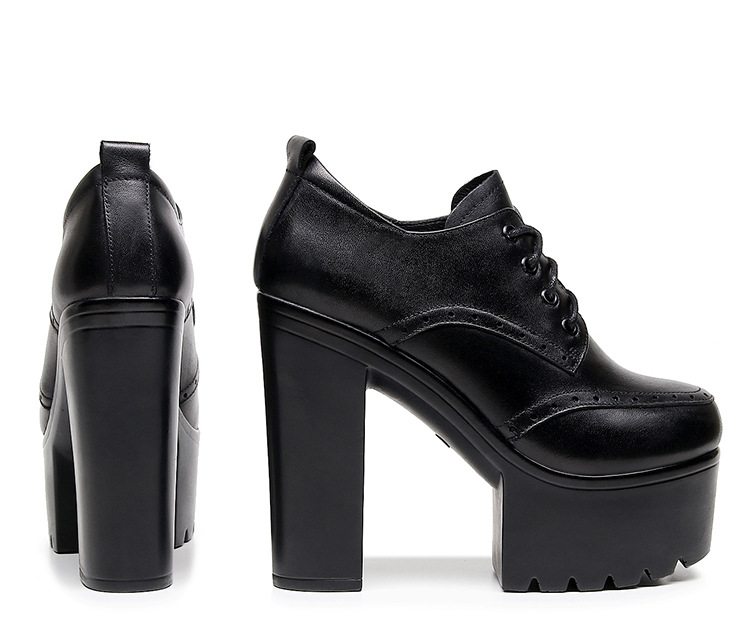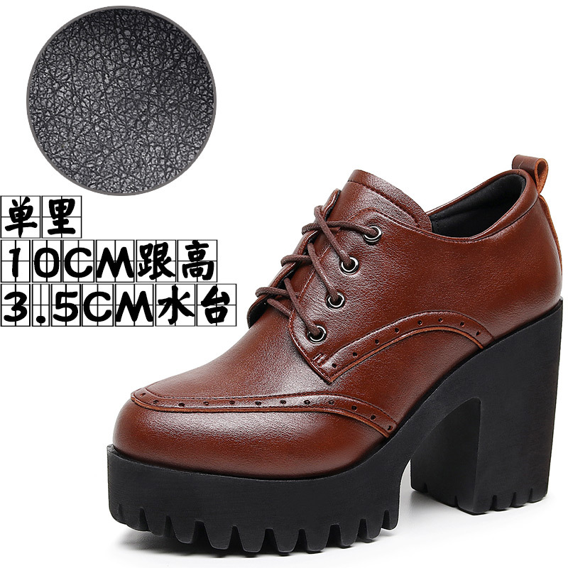 다크 다크 브라운 Brogues 여성용 레이스 업 영국 조각 가죽 신발 두꺼운 굽 높은 굽 플랫폼 라운드 발가락 깊은 입 싱글 레이어 신발스토어 가기