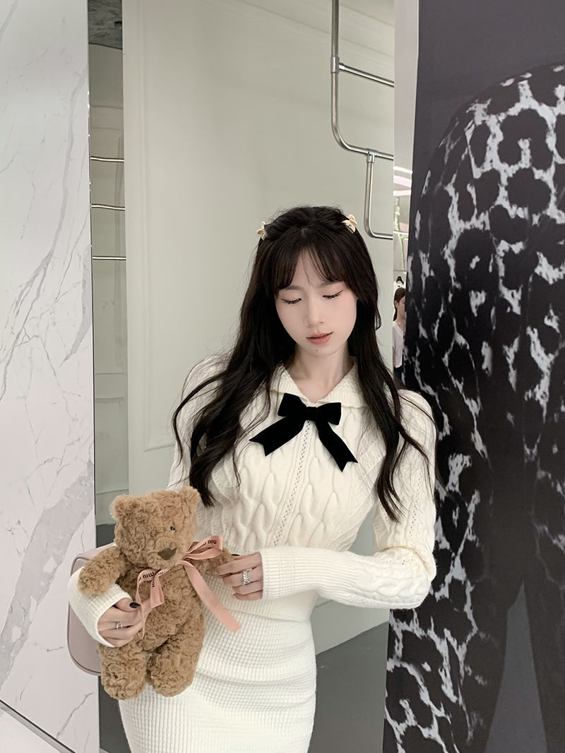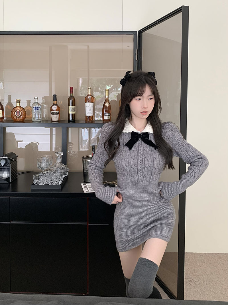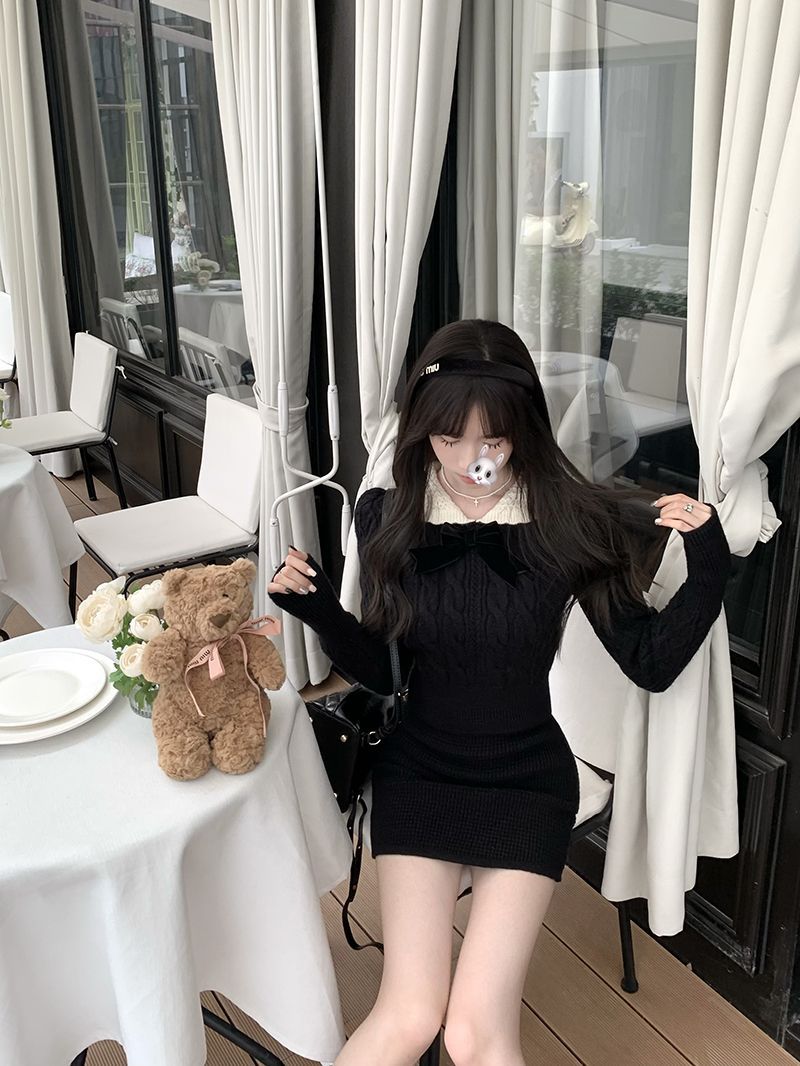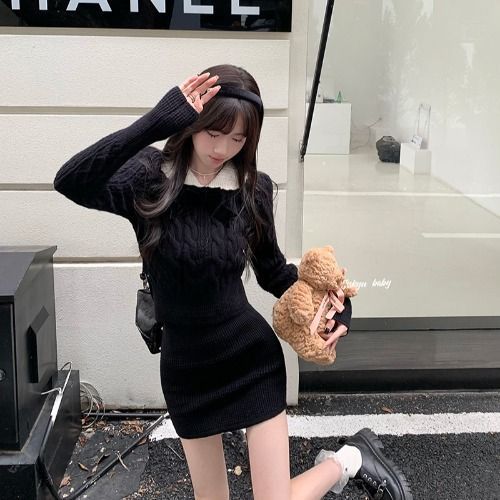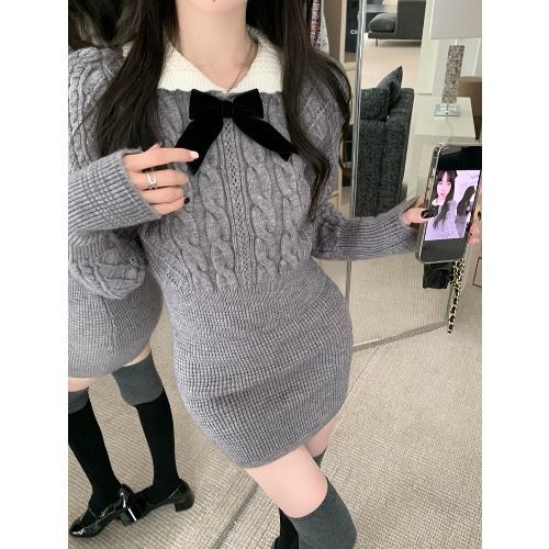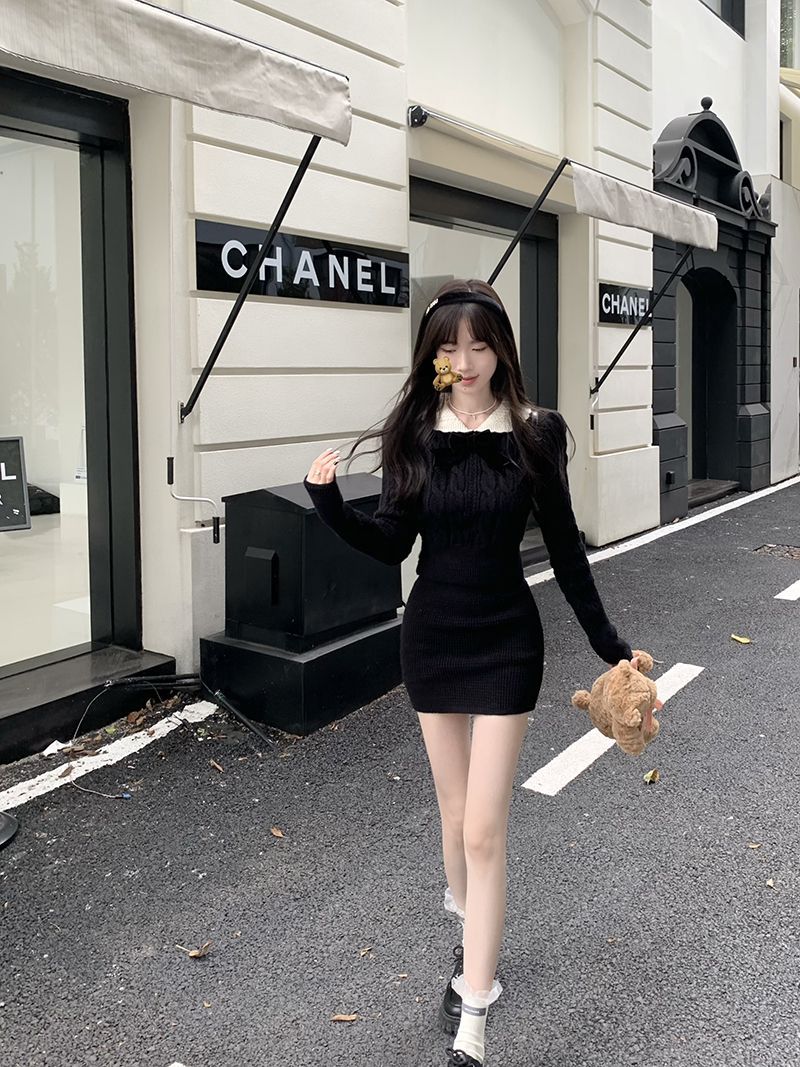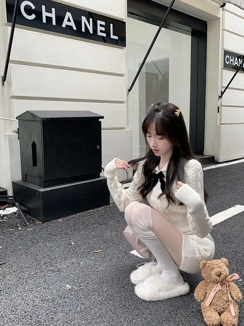 뜨거운 소녀 니트 세트 여자의 우아한 짧은 스웨터 가을과 겨울 엉덩이 스커트 하프 길이 스커트 작은 샤넬 스타일 투피스 유행 세트스토어 가기