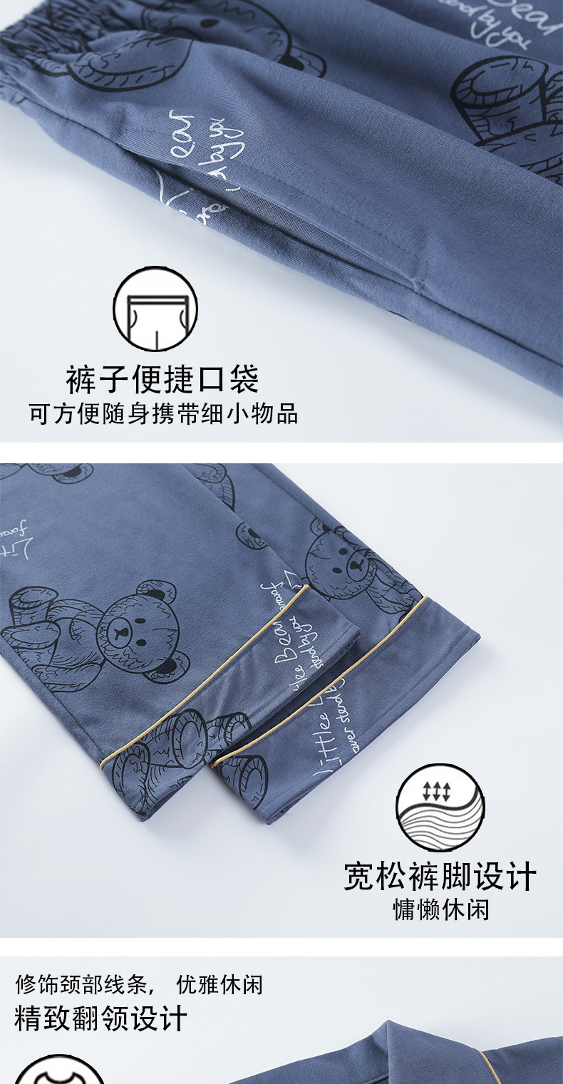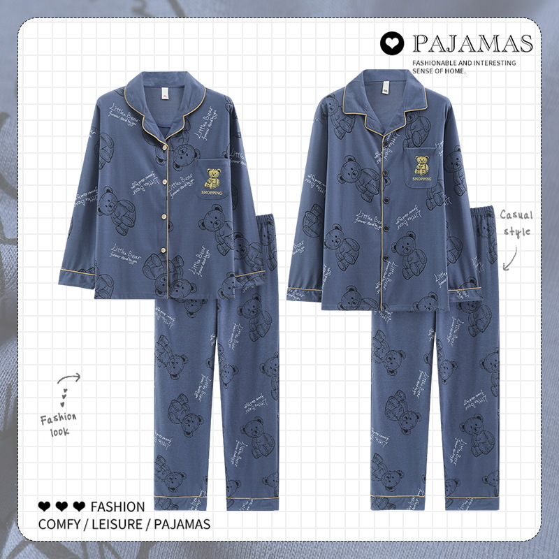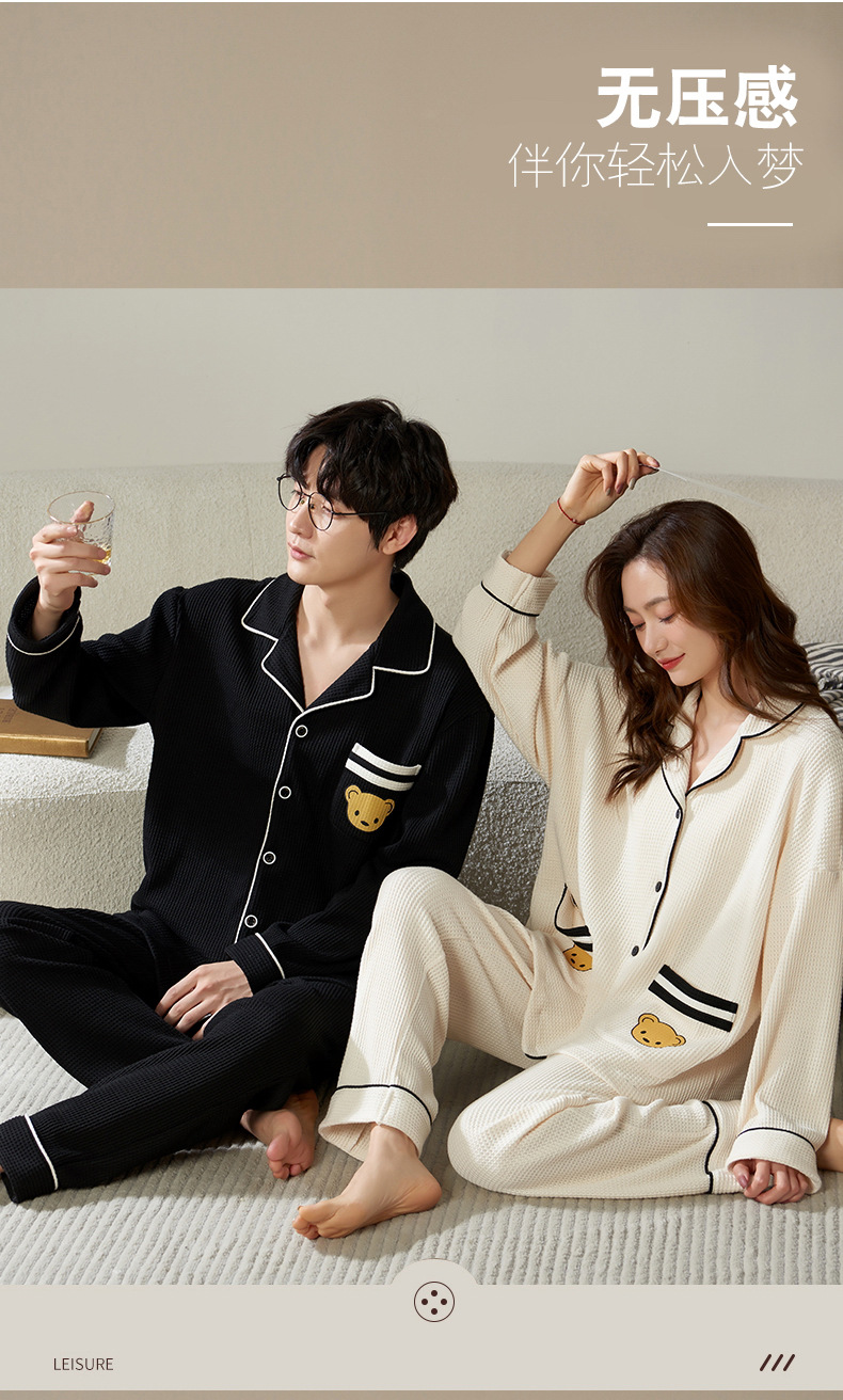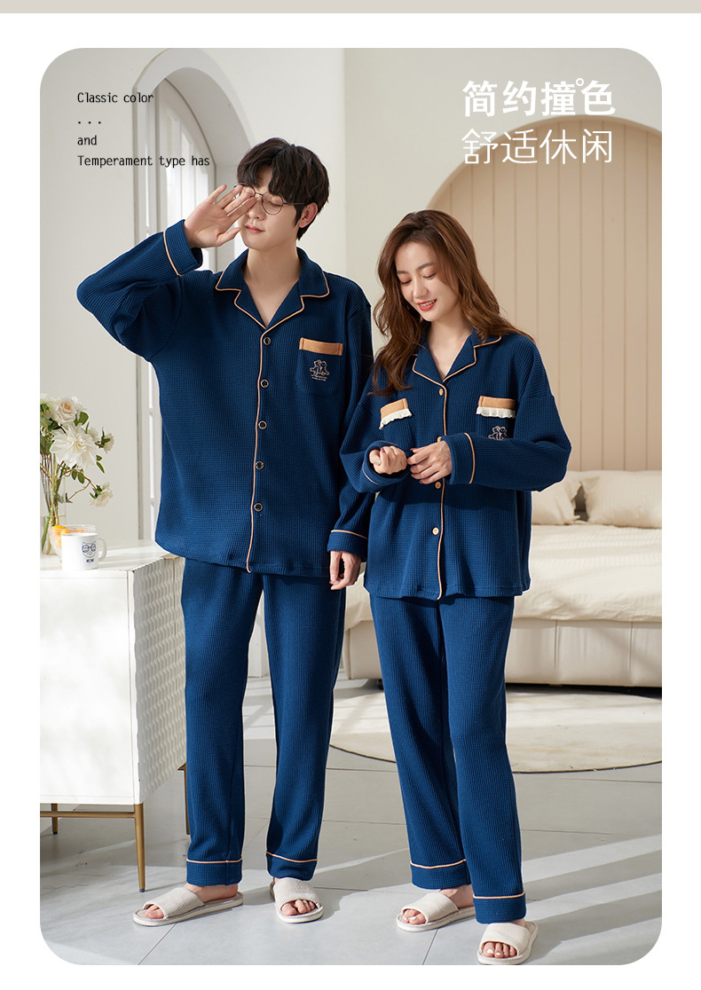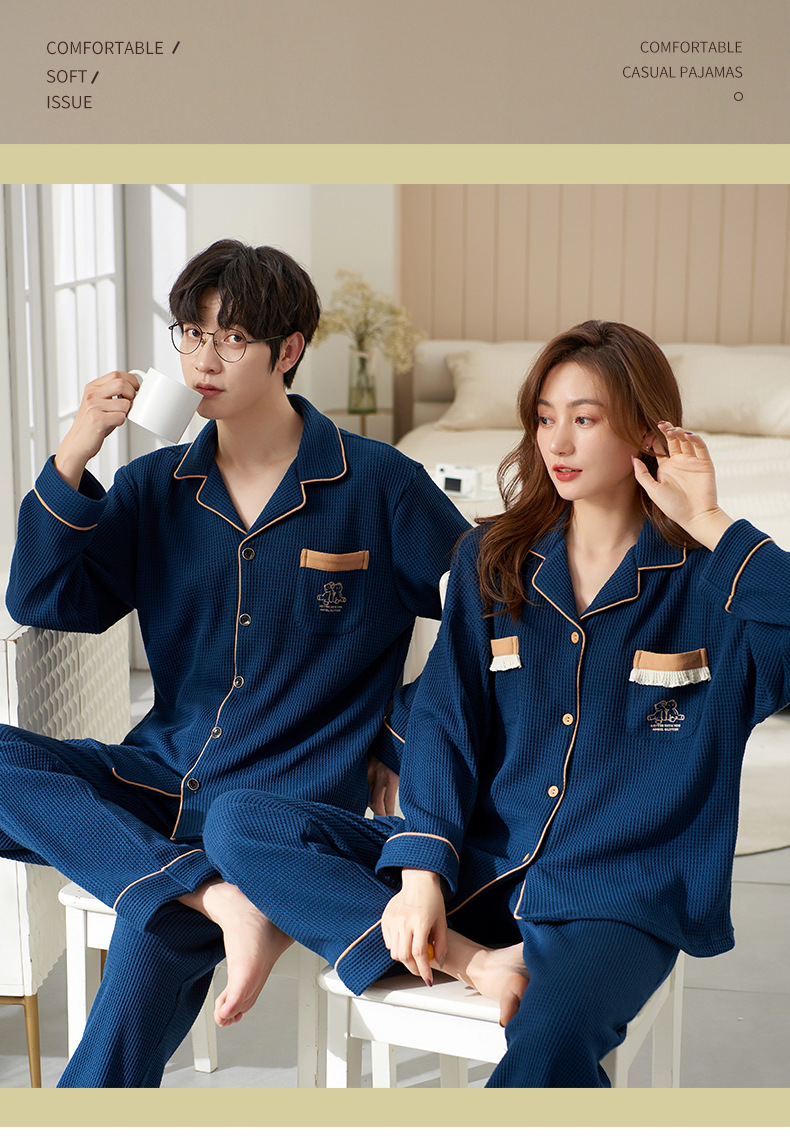 2023 새로운 가을 커플 잠옷 여자의 긴 소매 바지 와플렛 카디건 남자의 가을과 겨울 가정 의류 세트스토어 가기