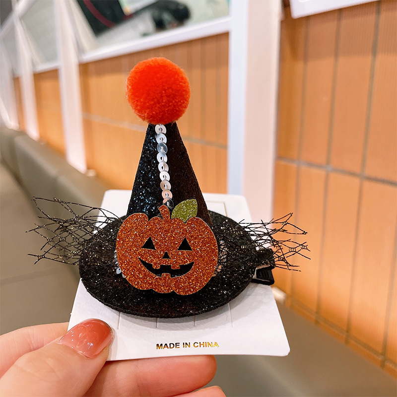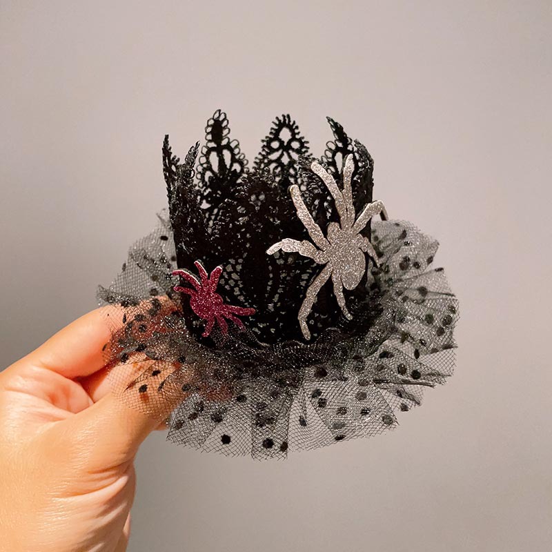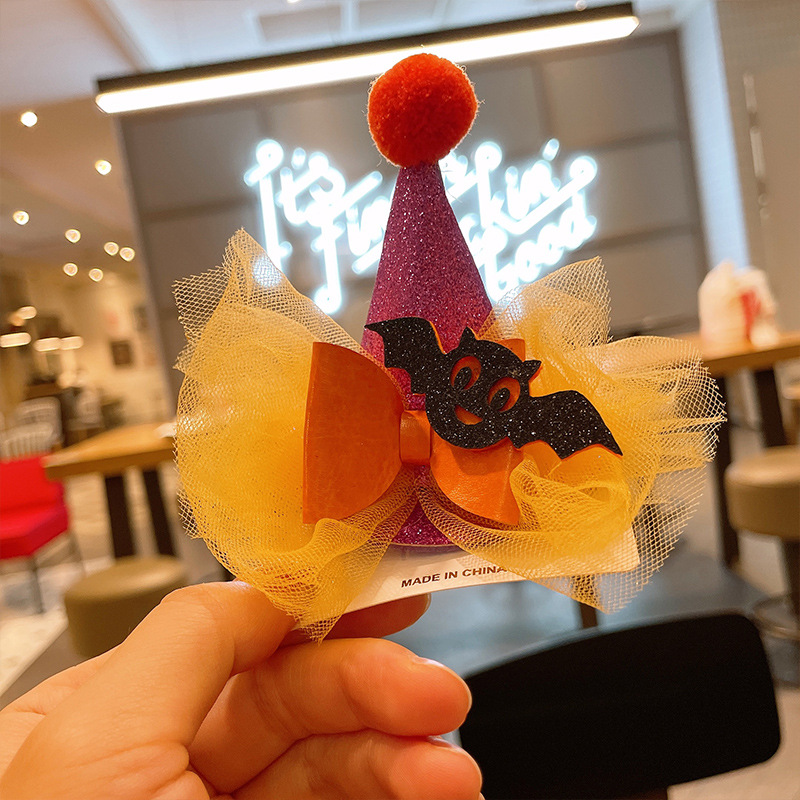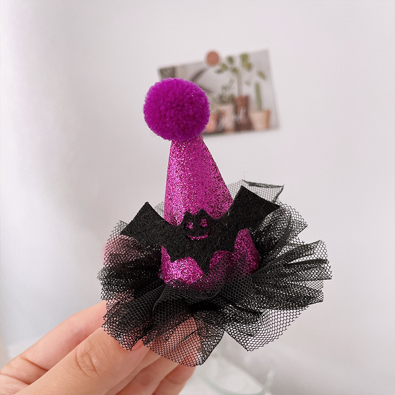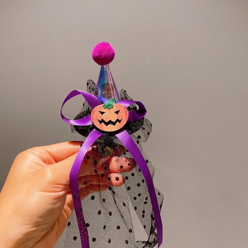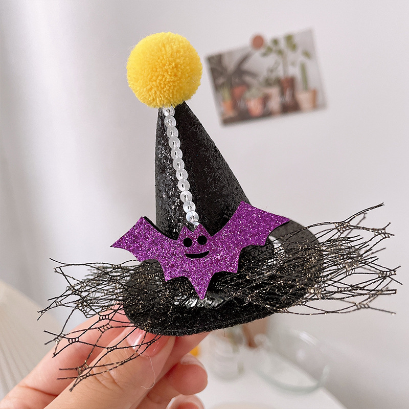 할로윈 매직 탑 모자 머리핀 레이스 베일 마법사 재미있는 유령 탑 클립 귀여운 박쥐 호박 모자