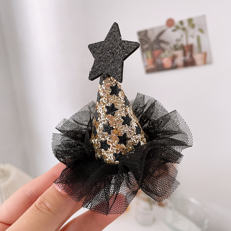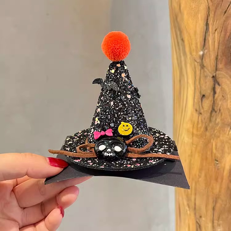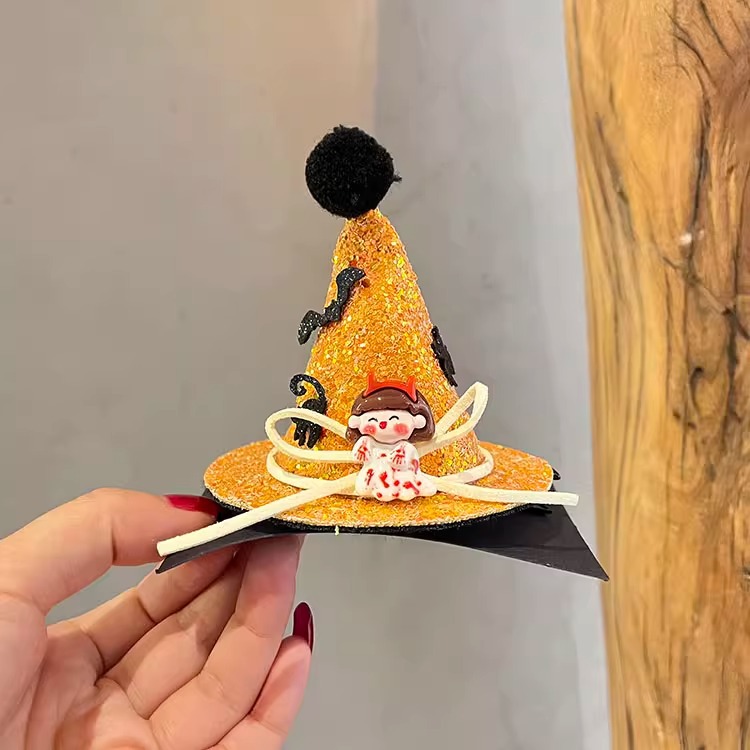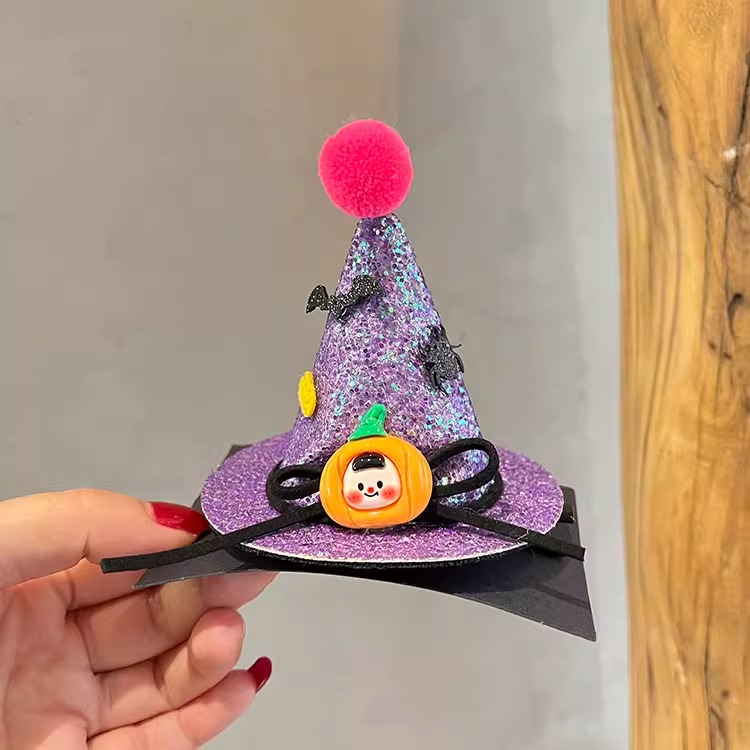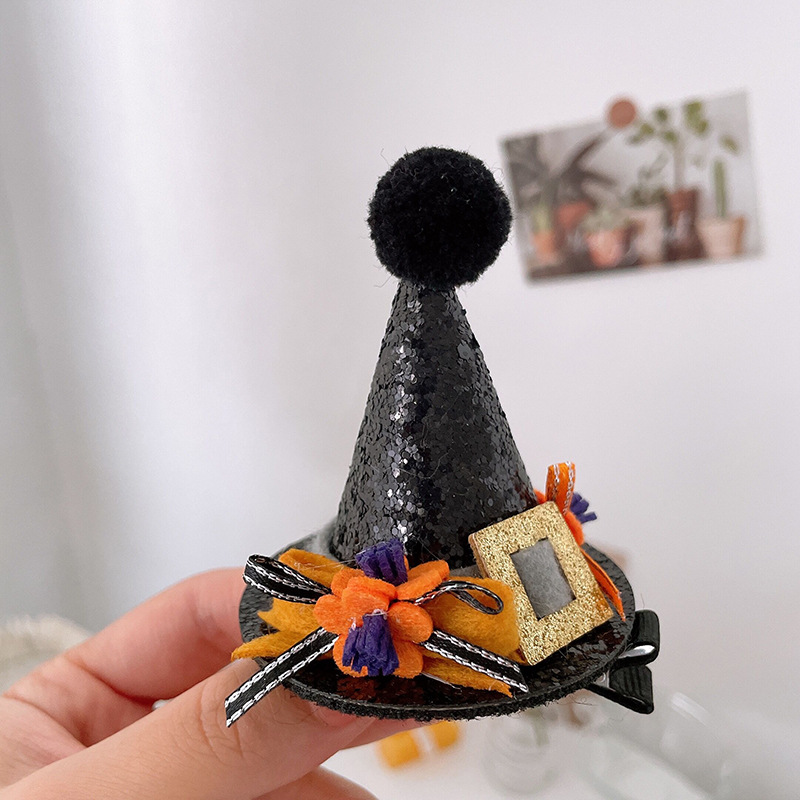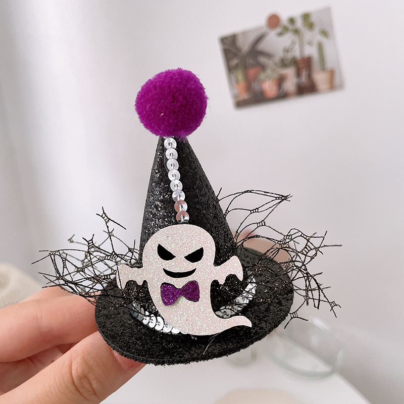 할로윈 매직 탑 모자 머리핀 레이스 베일 마법사 재미있는 유령 탑 클립 귀여운 박쥐 호박 모자
