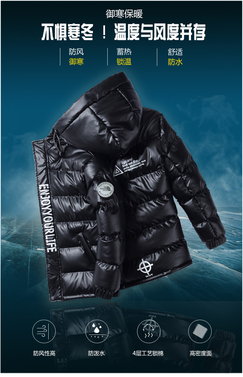 소년 다운 코튼 코트 2025 겨울 새 스타일 어린이 두꺼운 따뜻한 후드 코튼 코트 중형 및 대형 어린이 코튼 패딩 재킷 유행스토어 가기