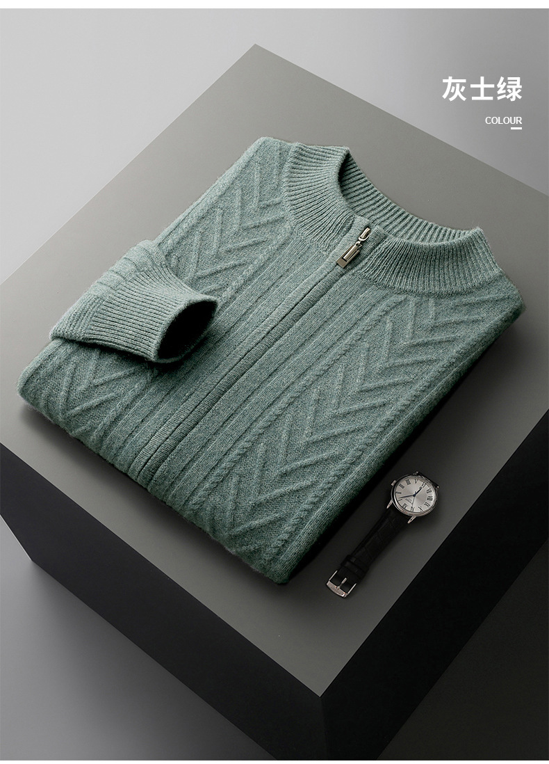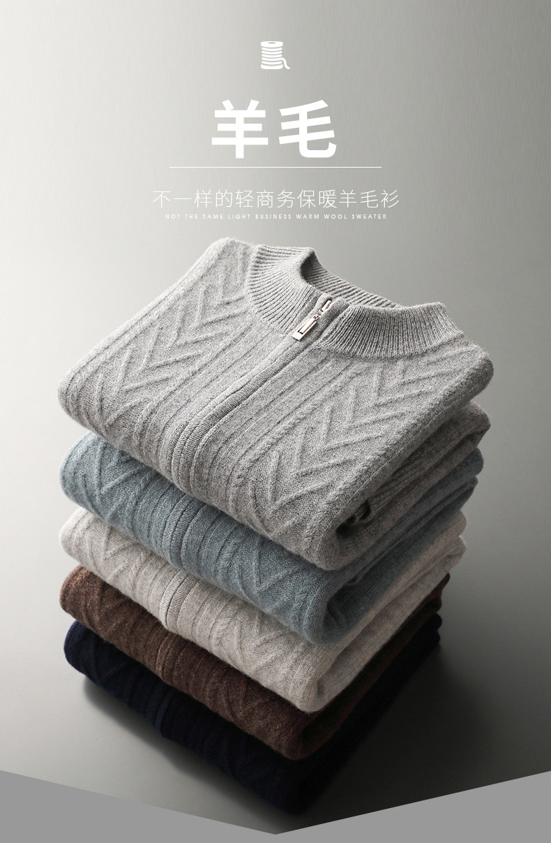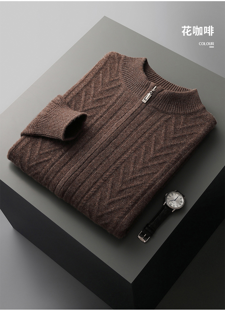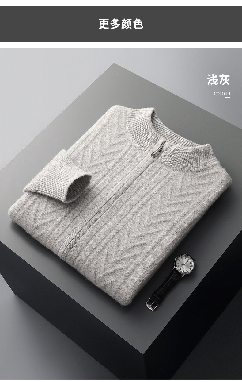 가을과 겨울 남성용 캐시미어 스웨터 지퍼 가디건 반 터틀넥 두꺼운 스웨터 단색 니트 가디건 캐주얼 코트 트렌디