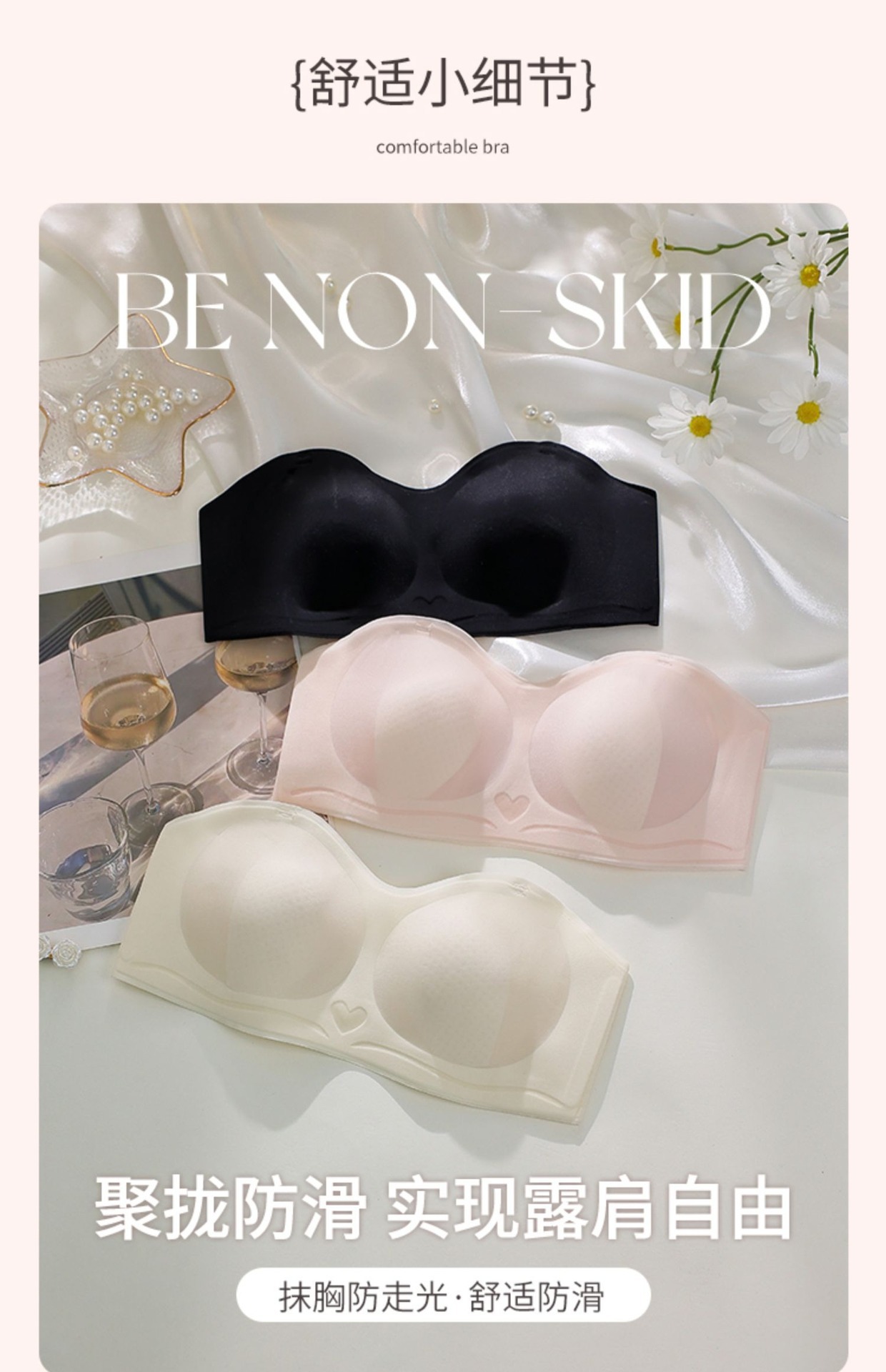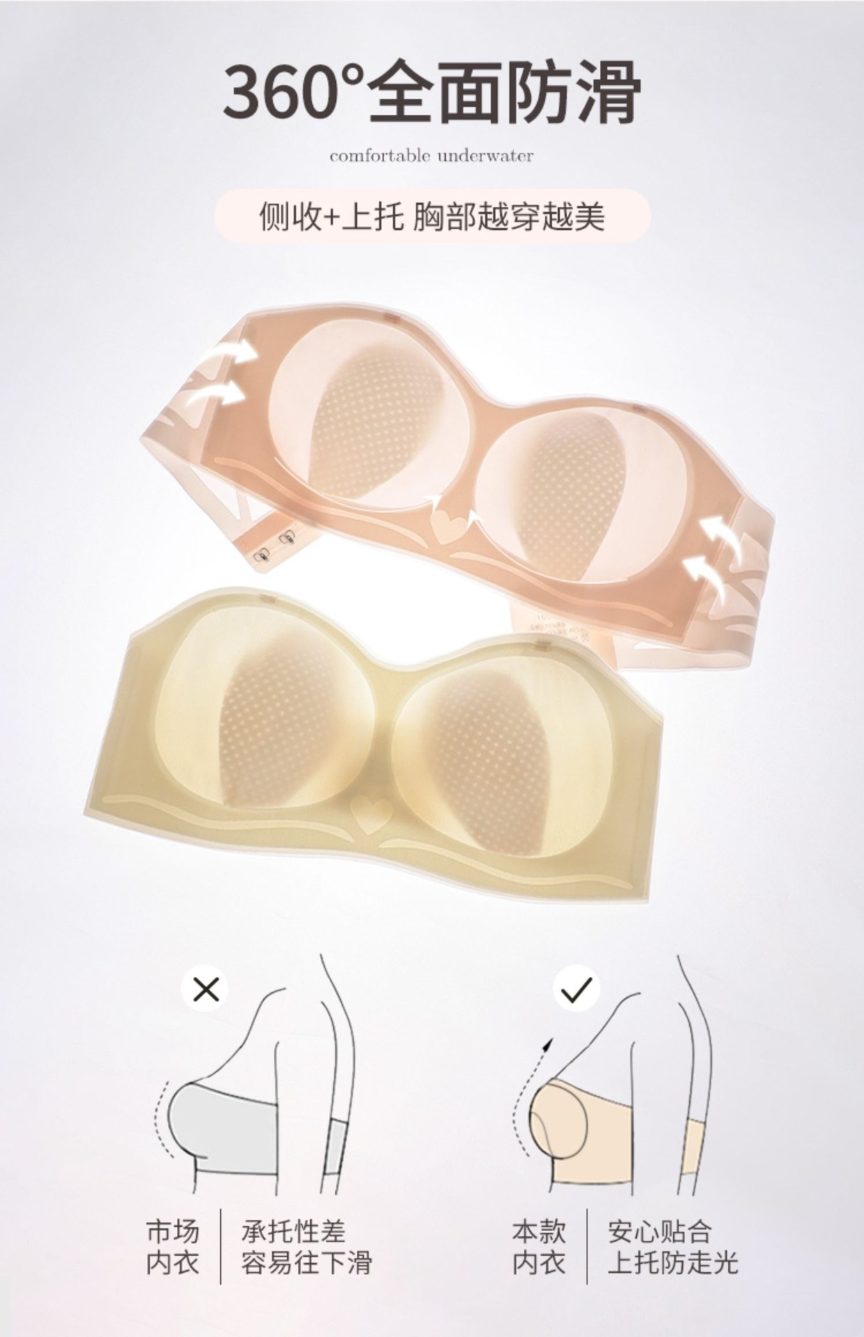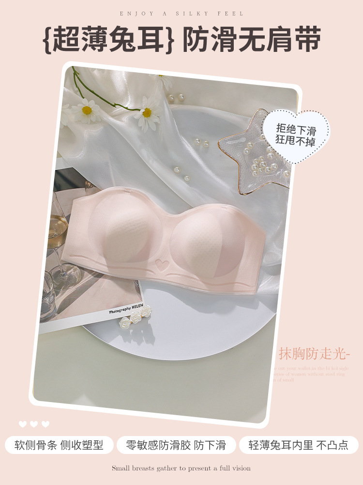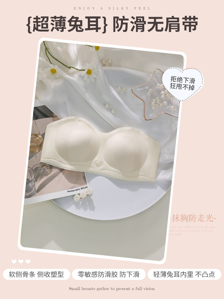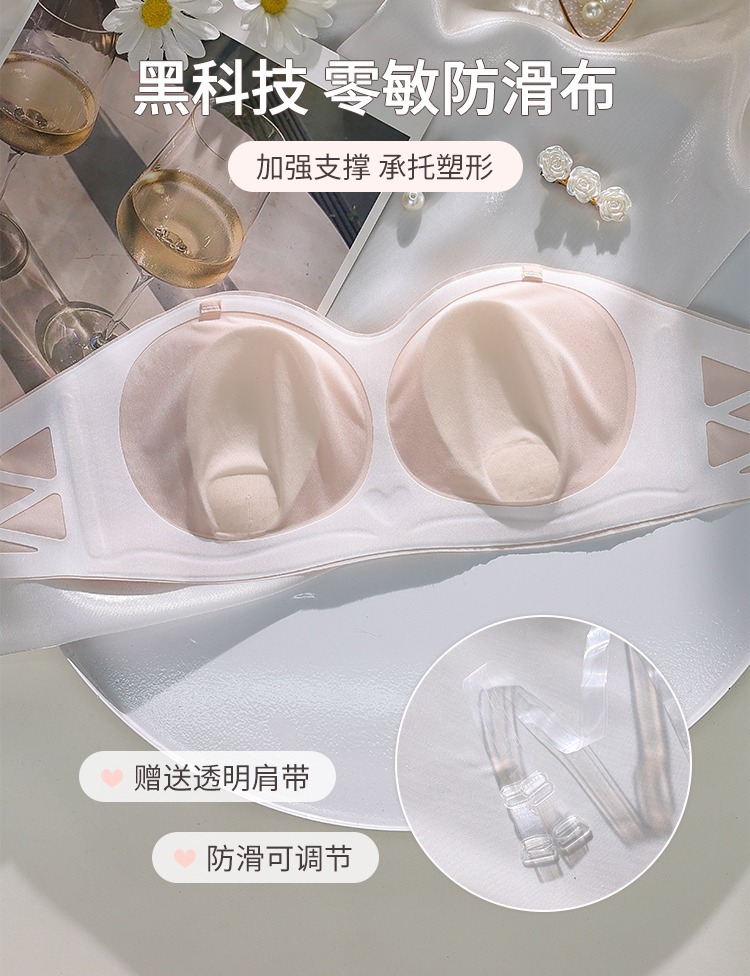 초박형 끈이 없는 속옷 여성용 미끄럼 방지 푸시 업 추적 랩 업 패치 웨딩 원피스 스트랩 여름 보이지 않는 브래지어스토어 가기