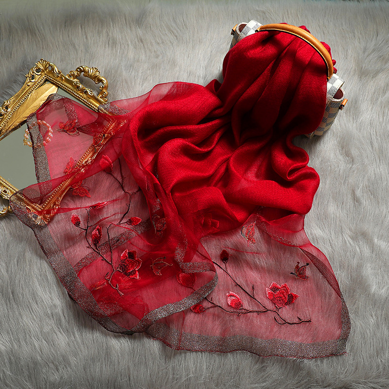 새로운 실크 울 스카프 수제 자수 우아한 스카프 봄과 가을 여성의 모든 일치 실크 스카프 얇은 숄