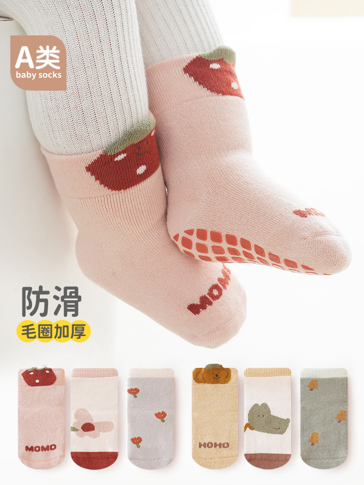 25 가을 겨울 아기 바닥 양말 테리 두꺼운 아기 양말 미끄럼 방지 신생아 클래스 A 면 양말 뼈없는 느슨한 입스토어 가기