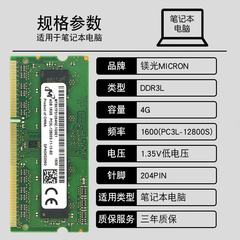 마그네슘 라이트 DDR3L 4G 1600MHz PC3L-12800 노트북 메모리 모듈 MT8KTF51264스토어 가기