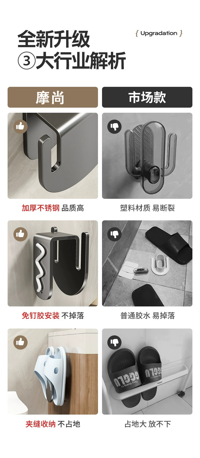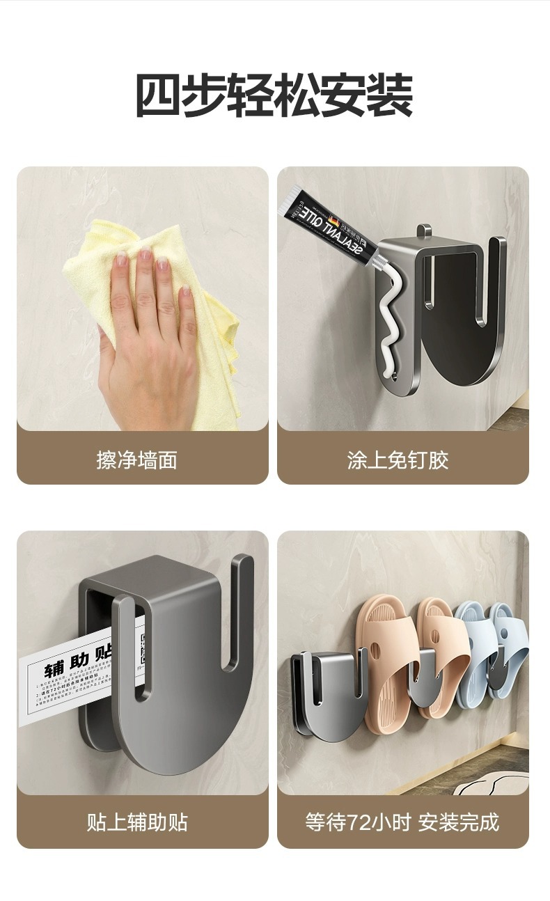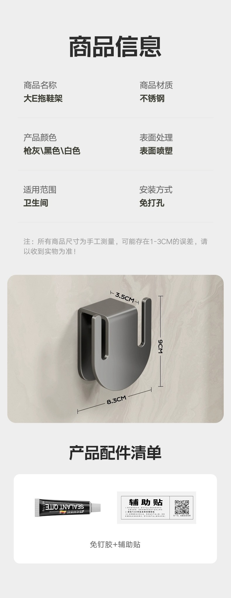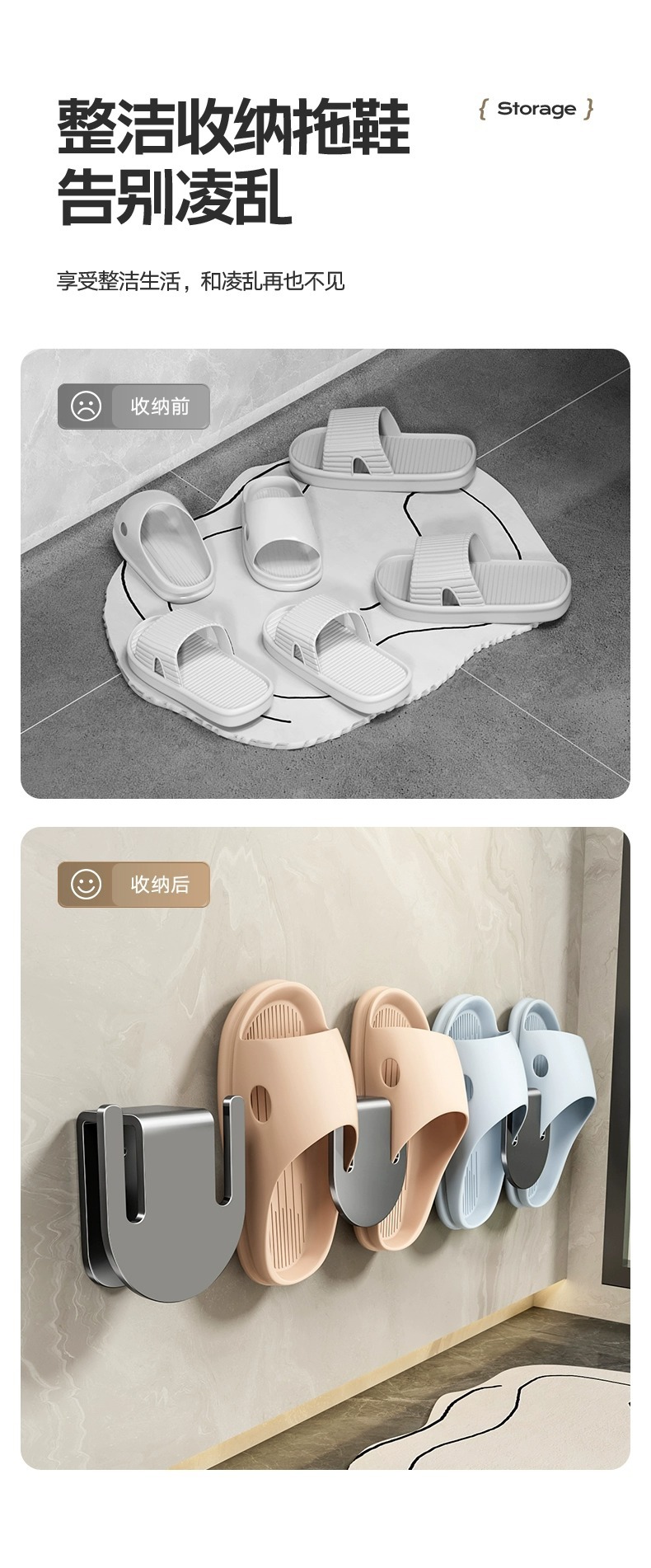 욕실 슬리퍼 랙 벽걸이 형 비 천공 화장실 스테인레스 스틸 보관 랙 화장실 보관 후크 보관 선반