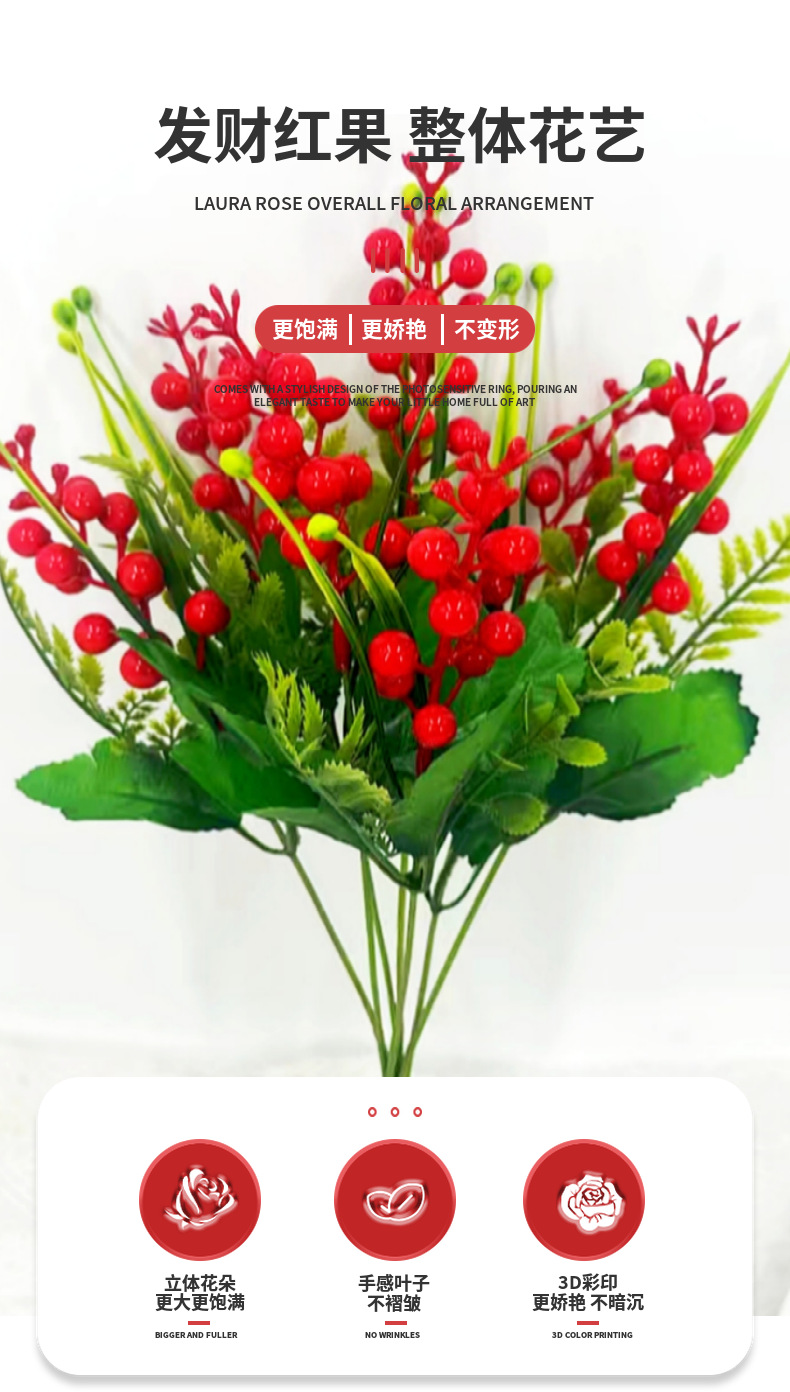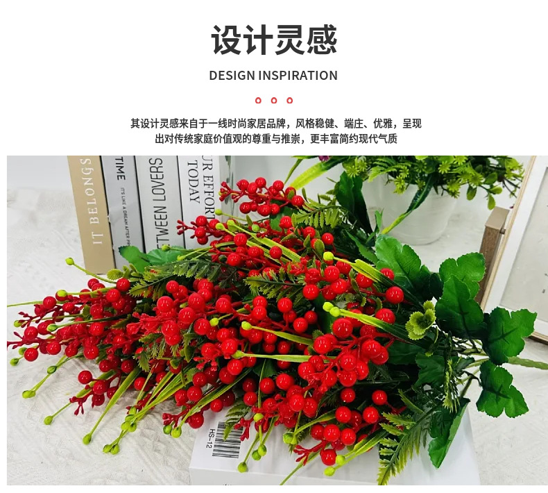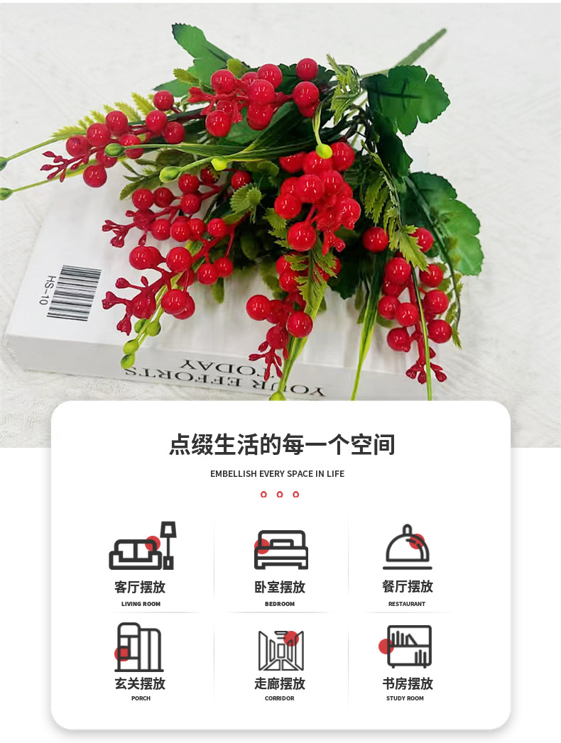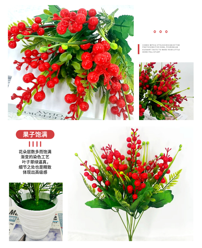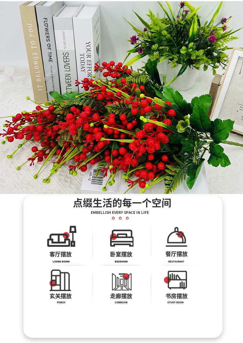 빨간 행운의 열매 꽃 인조 꽃 가짜 꽃 거실 식탁 TV 캐비닛 장식품 인조 빨간 열매