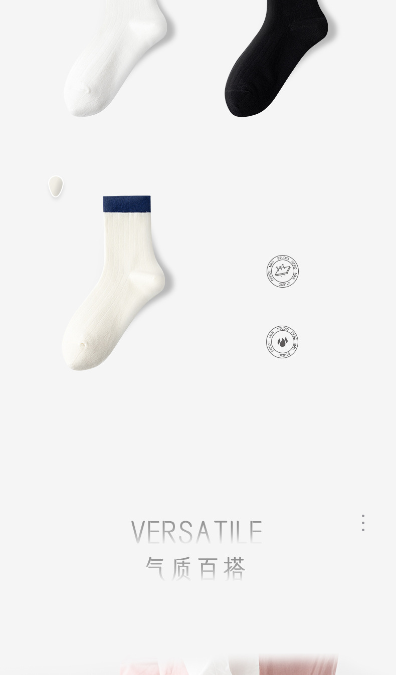 여성용 양말 색상 일치 세로 줄무늬 중반 종아리 양말 탈취제 땀 흡수성 뼈없는 양말 흰색면 양말 탈취제 스포츠 양말 재고 도매스토어 가기