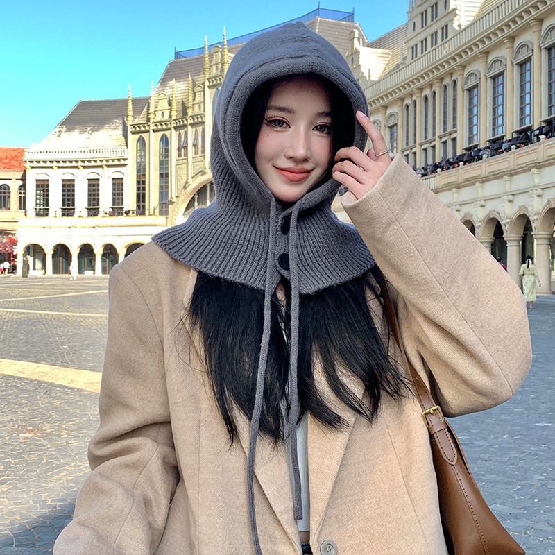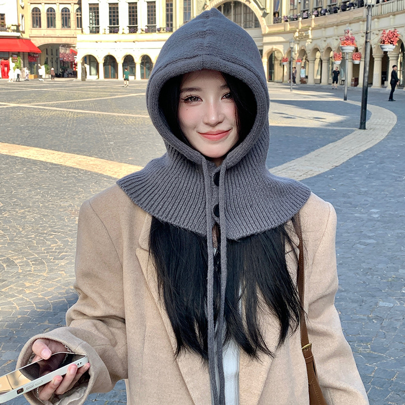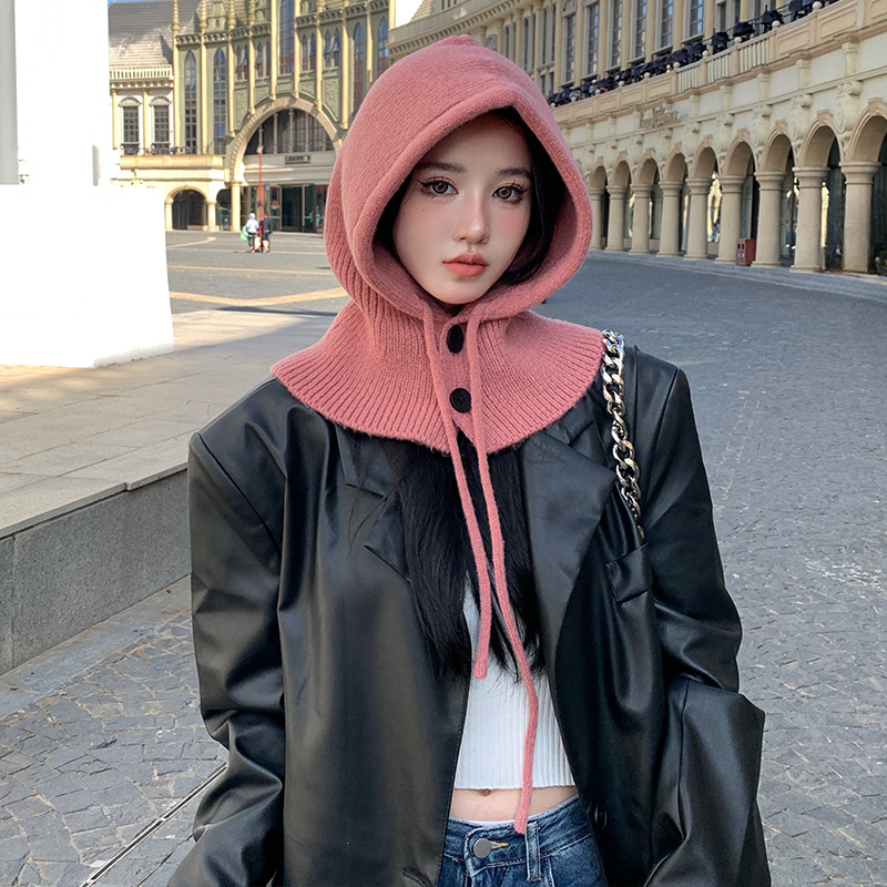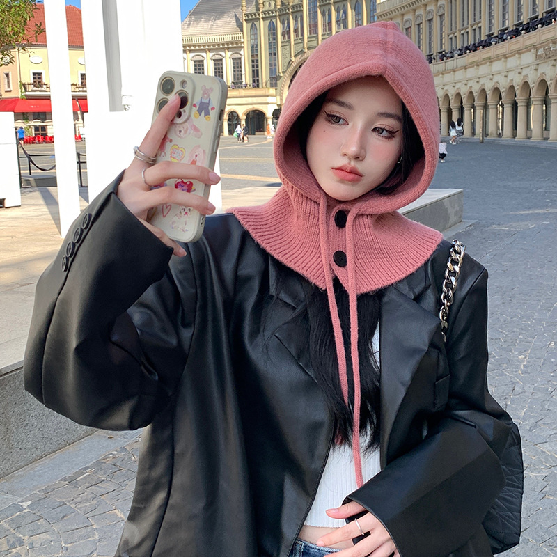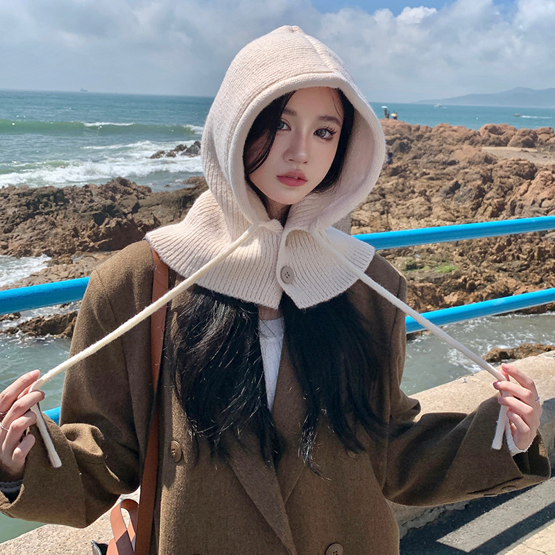 야외 레저 놀이 사진 울 모자 니트 방한 틈새 단추 목 보호 간단한 따뜻한 통기성 풀오버 캡스토어 가기