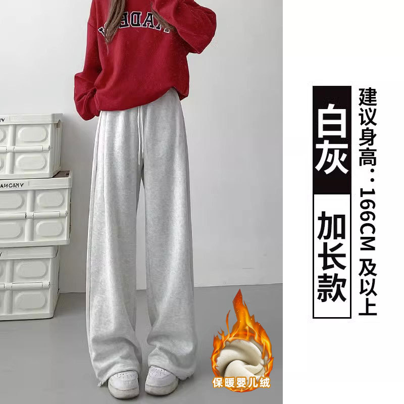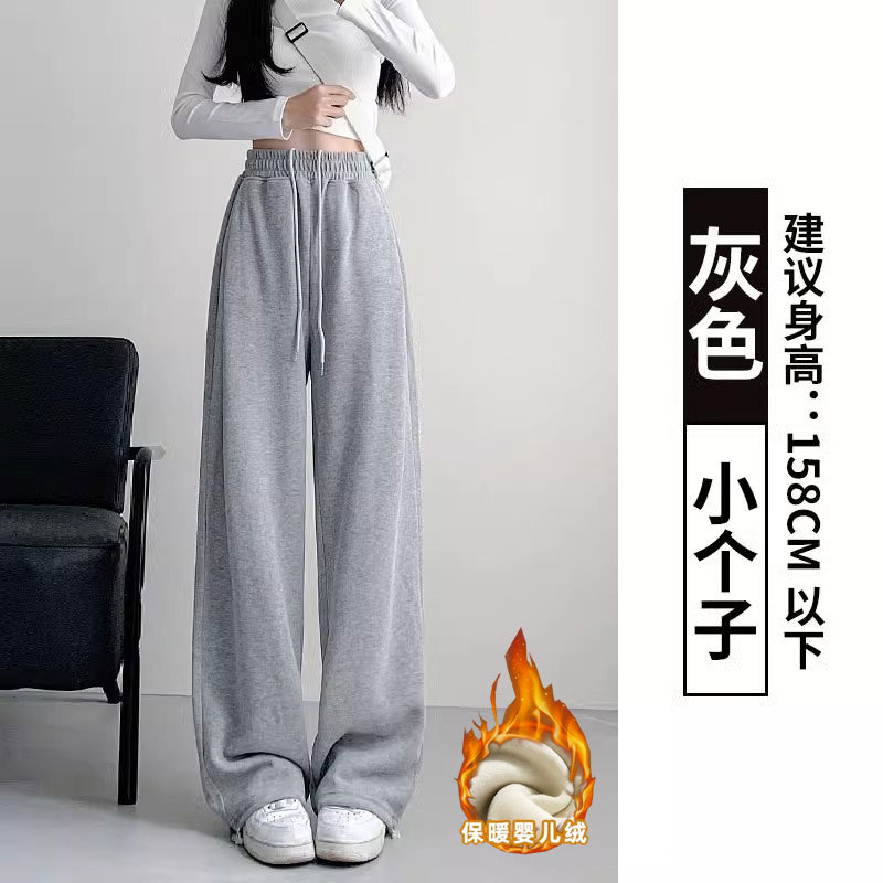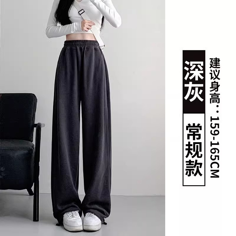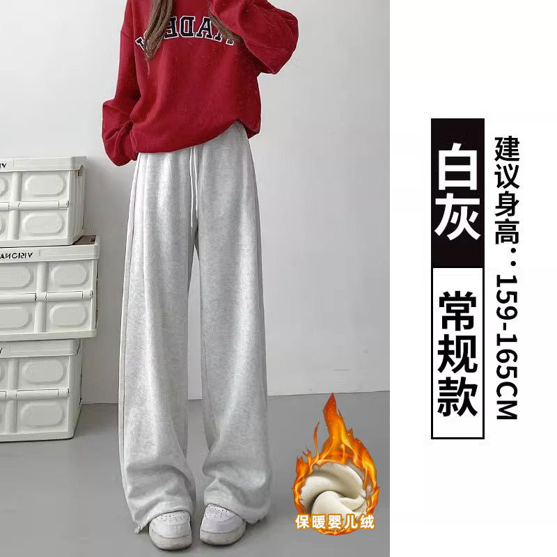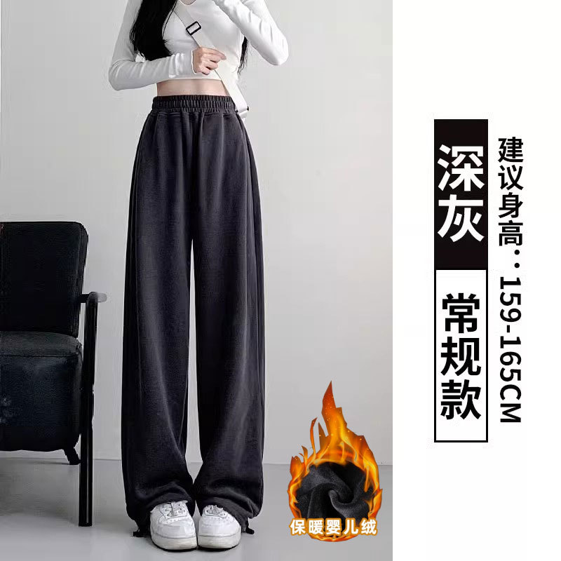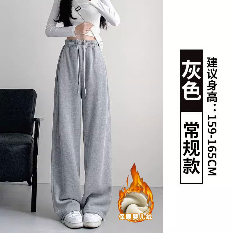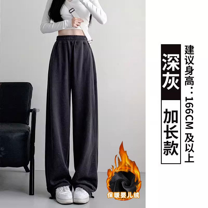 여성용 회색 와이드 팬츠 가을 겨울 하이웨이스트 루즈핏 레깅스 플리스 안감 아메리칸 스타일 스포츠 바지 롱 팬츠
