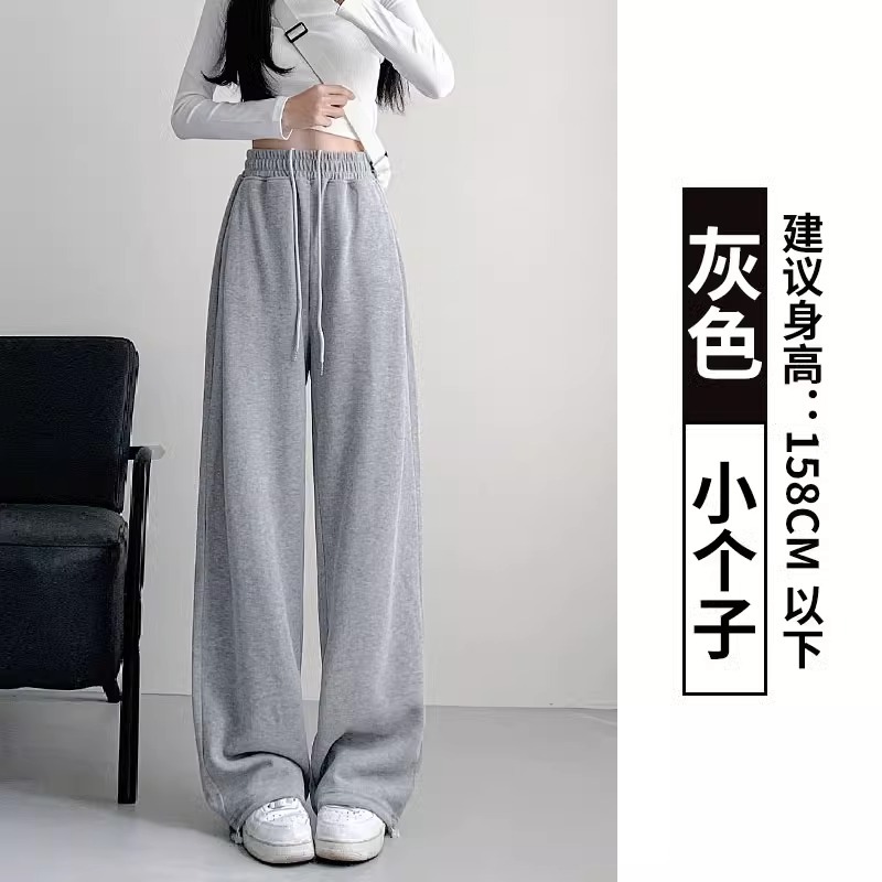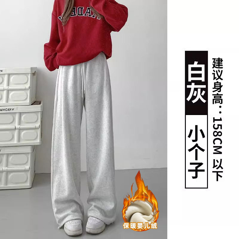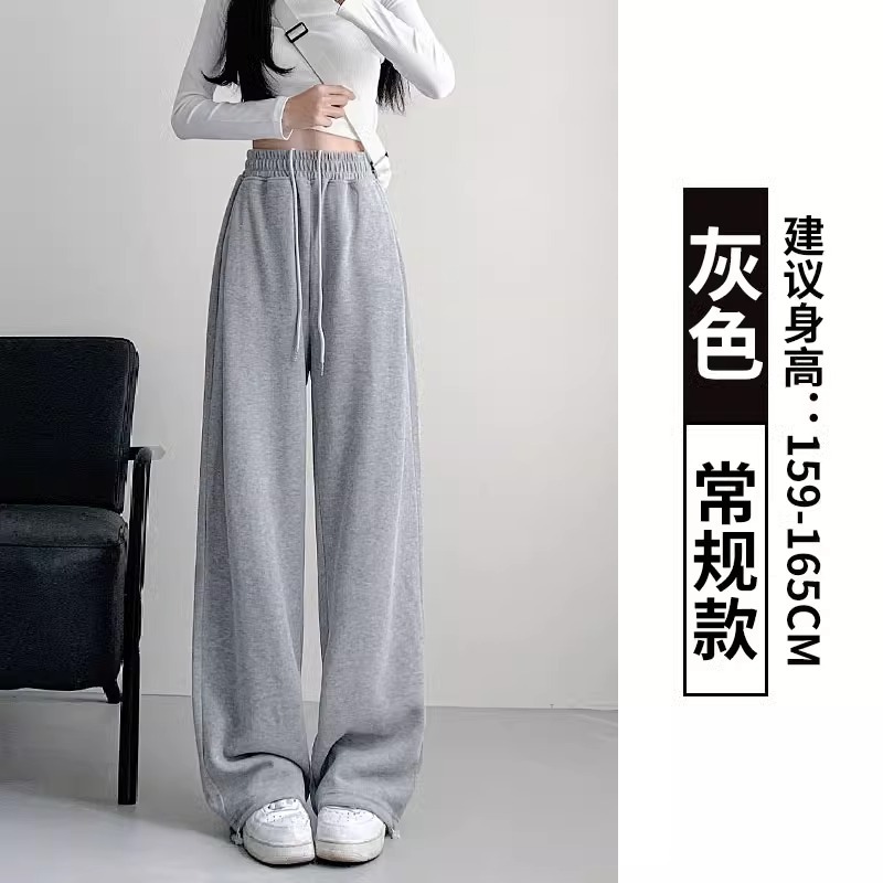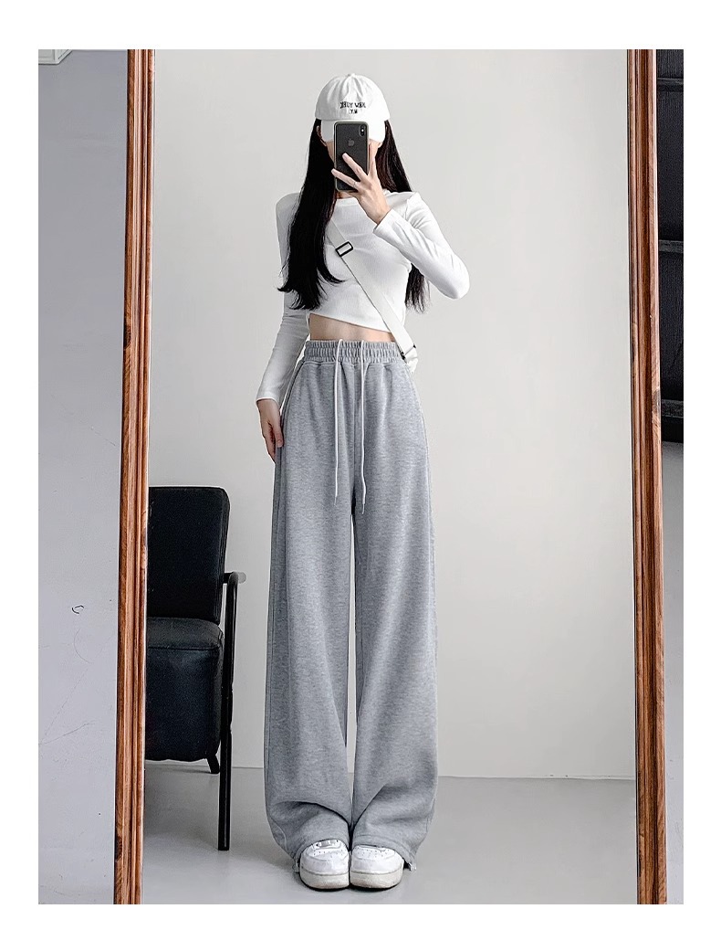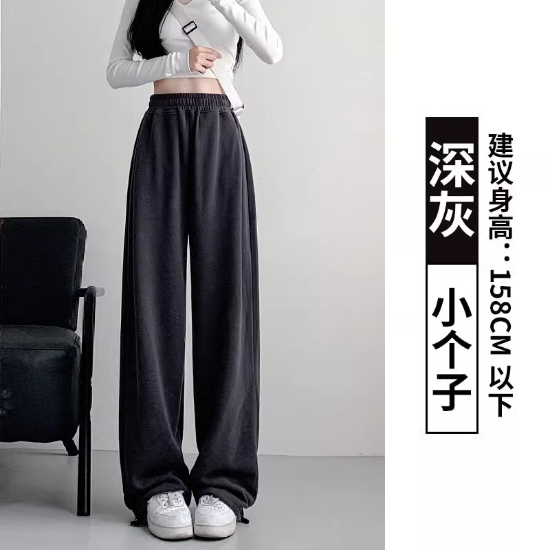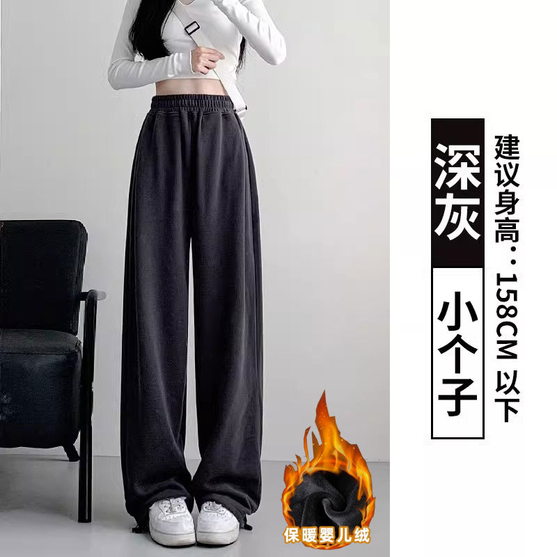 여성용 회색 와이드 팬츠 가을 겨울 하이웨이스트 루즈핏 레깅스 플리스 안감 아메리칸 스타일 스포츠 바지 롱 팬츠