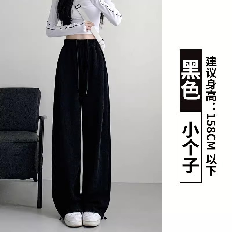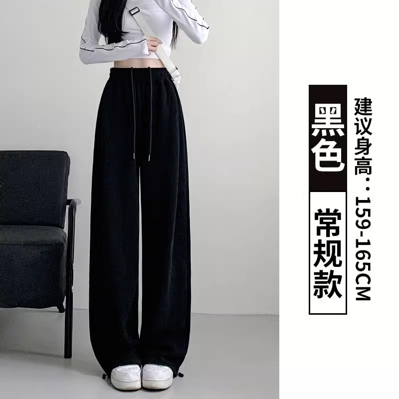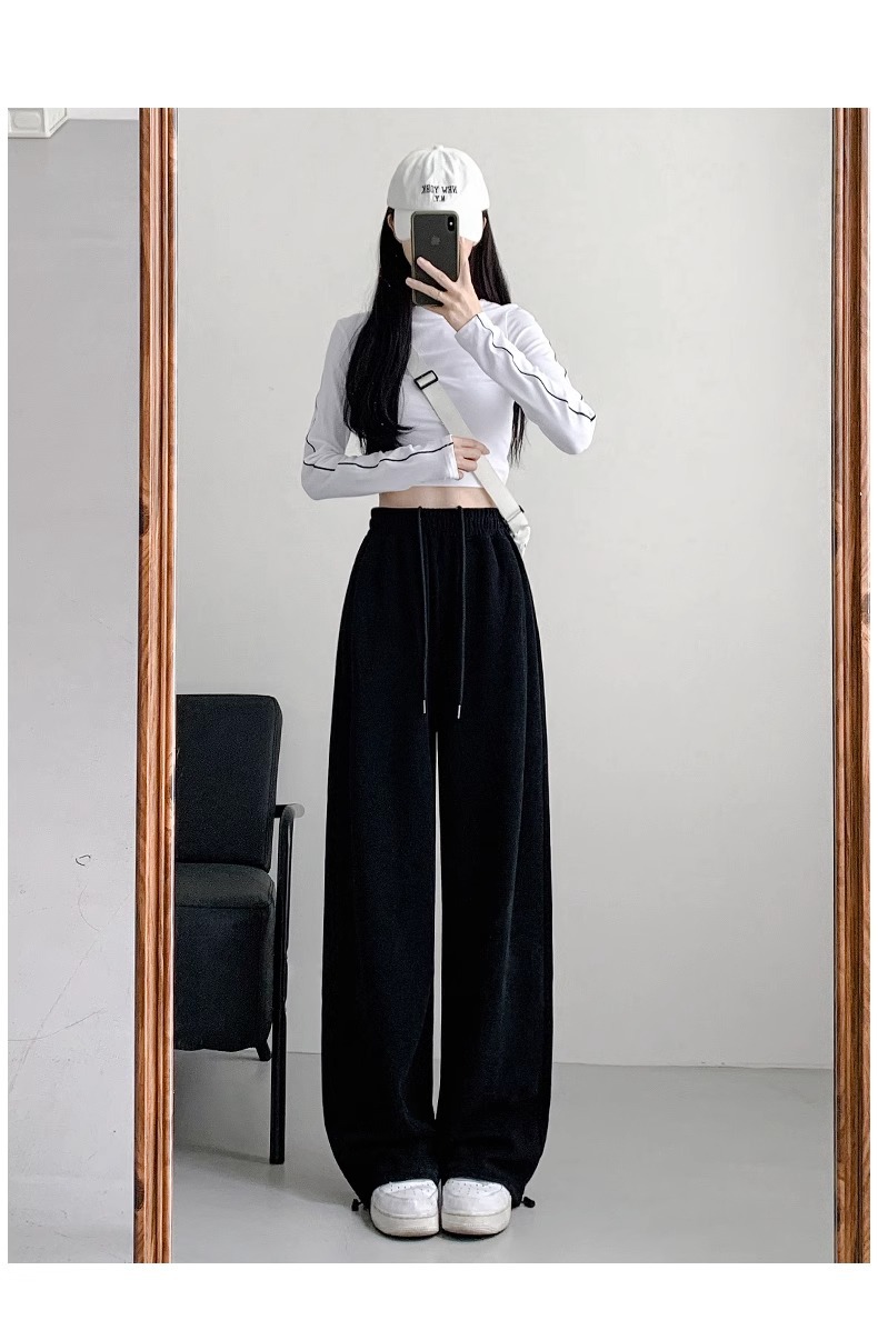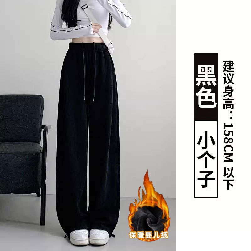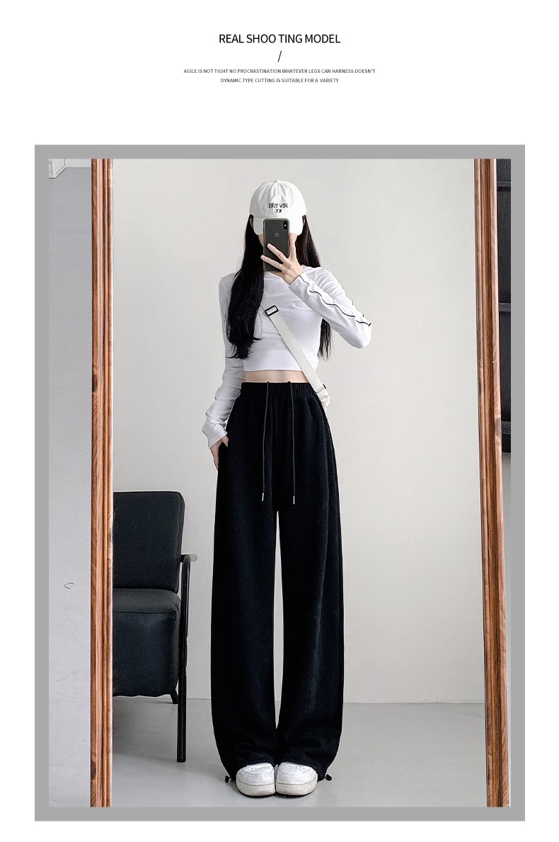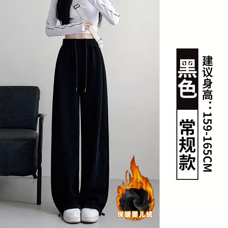 여성용 회색 와이드 팬츠 가을 겨울 하이웨이스트 루즈핏 레깅스 플리스 안감 아메리칸 스타일 스포츠 바지 롱 팬츠