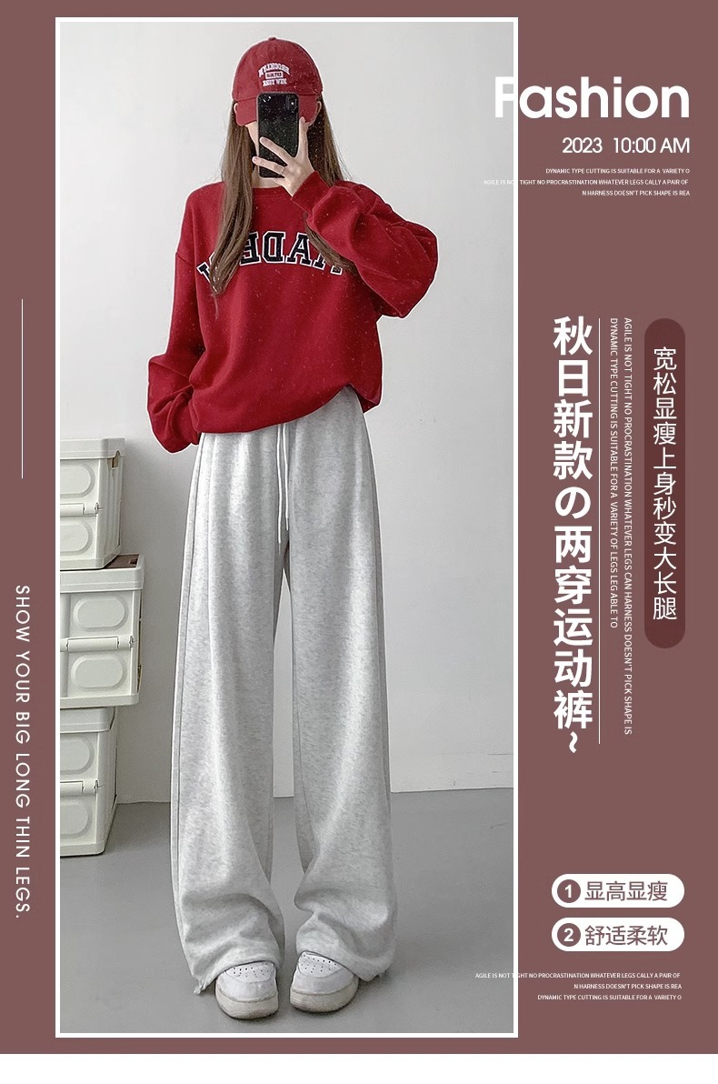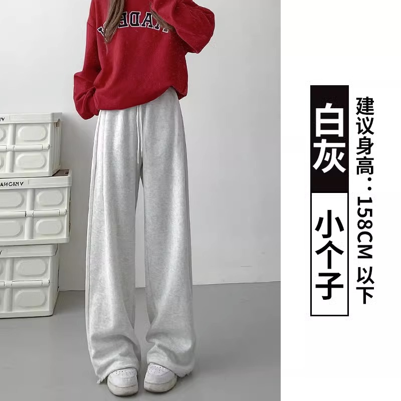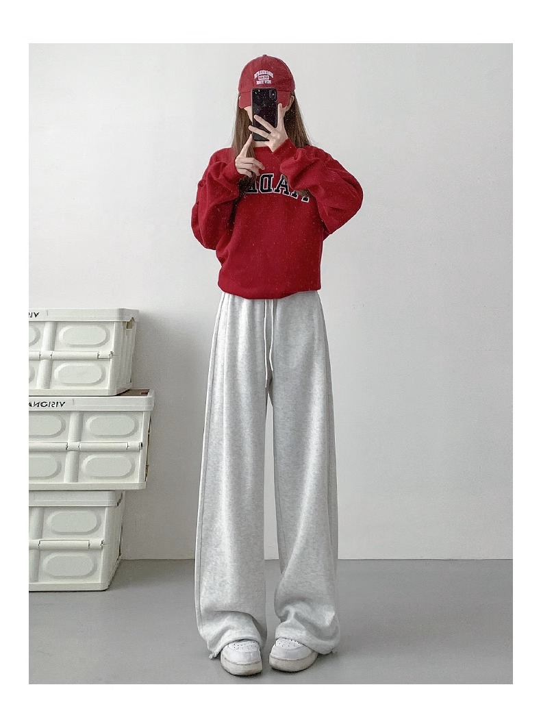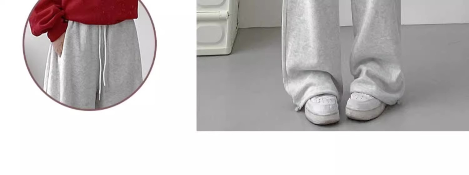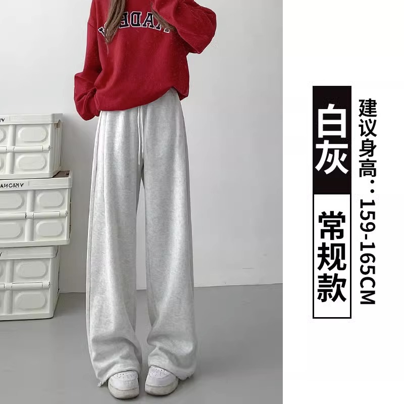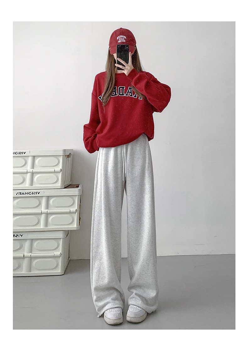 여성용 회색 와이드 팬츠 가을 겨울 하이웨이스트 루즈핏 레깅스 플리스 안감 아메리칸 스타일 스포츠 바지 롱 팬츠스토어 가기