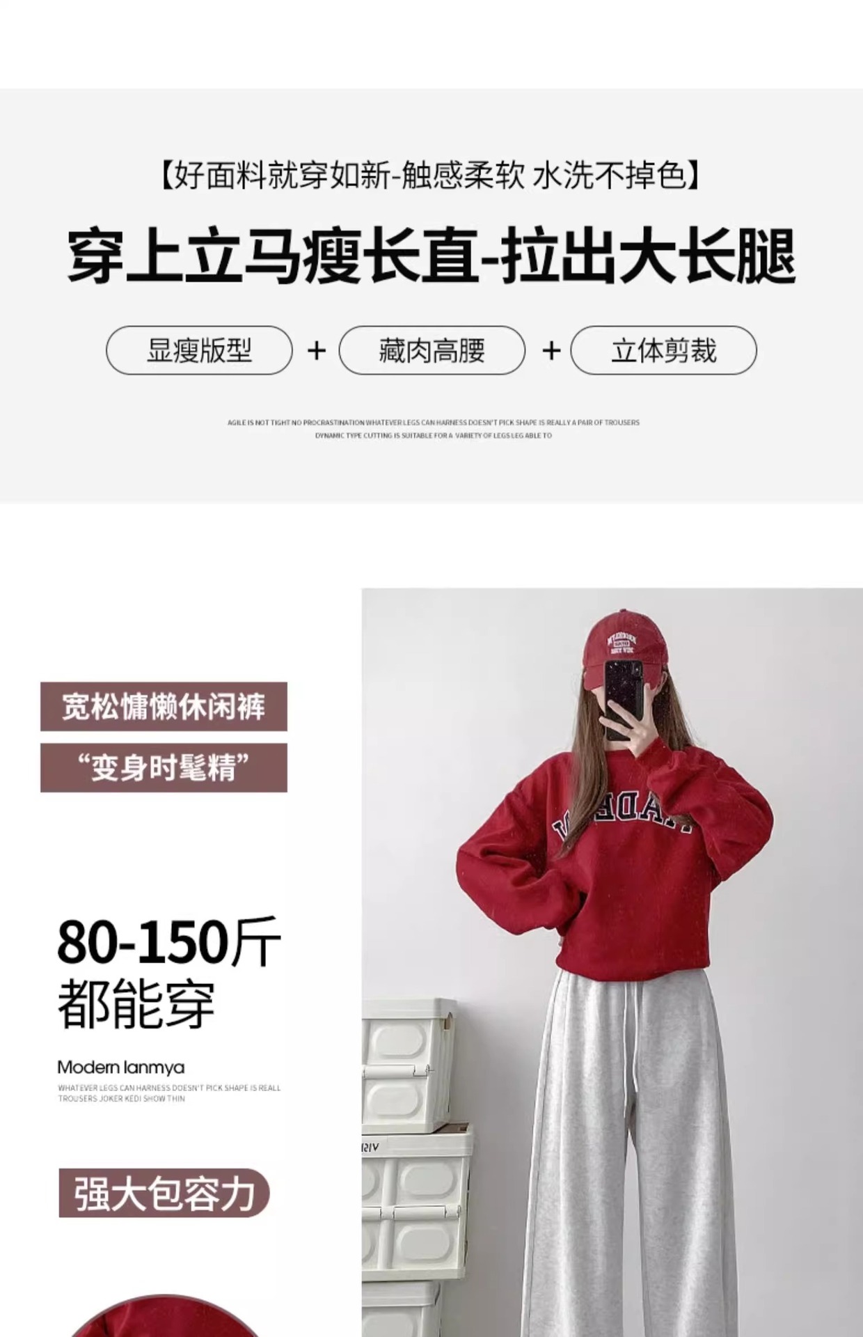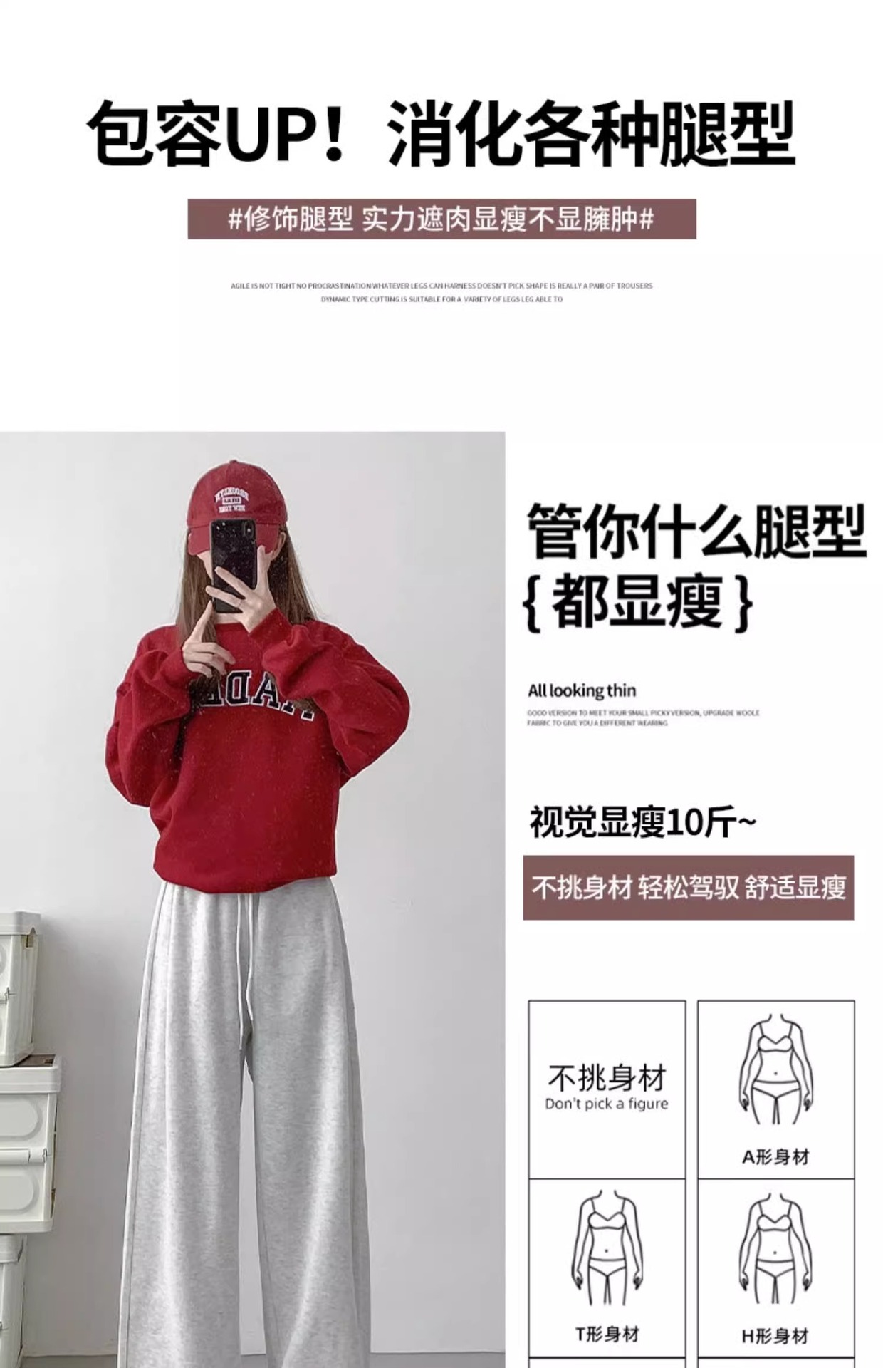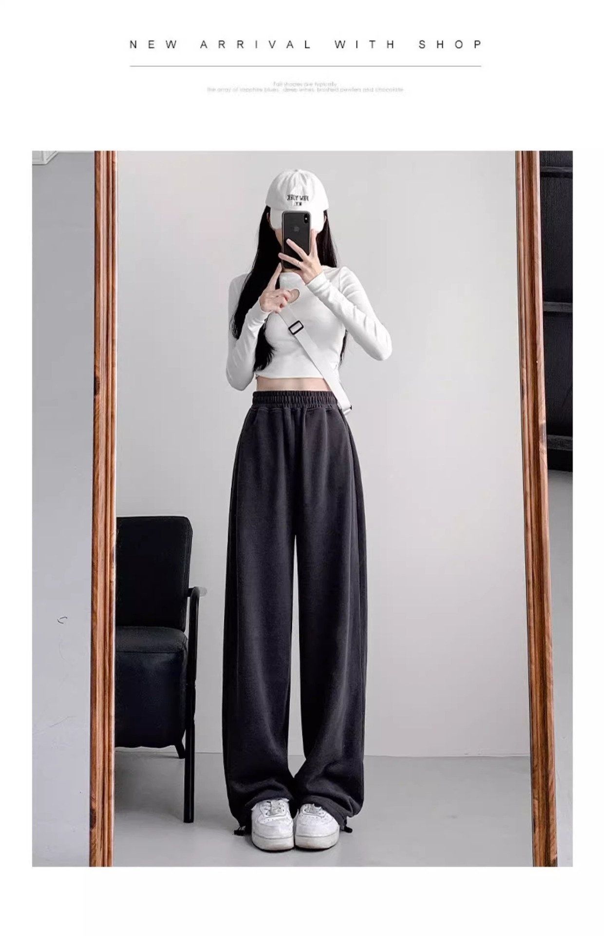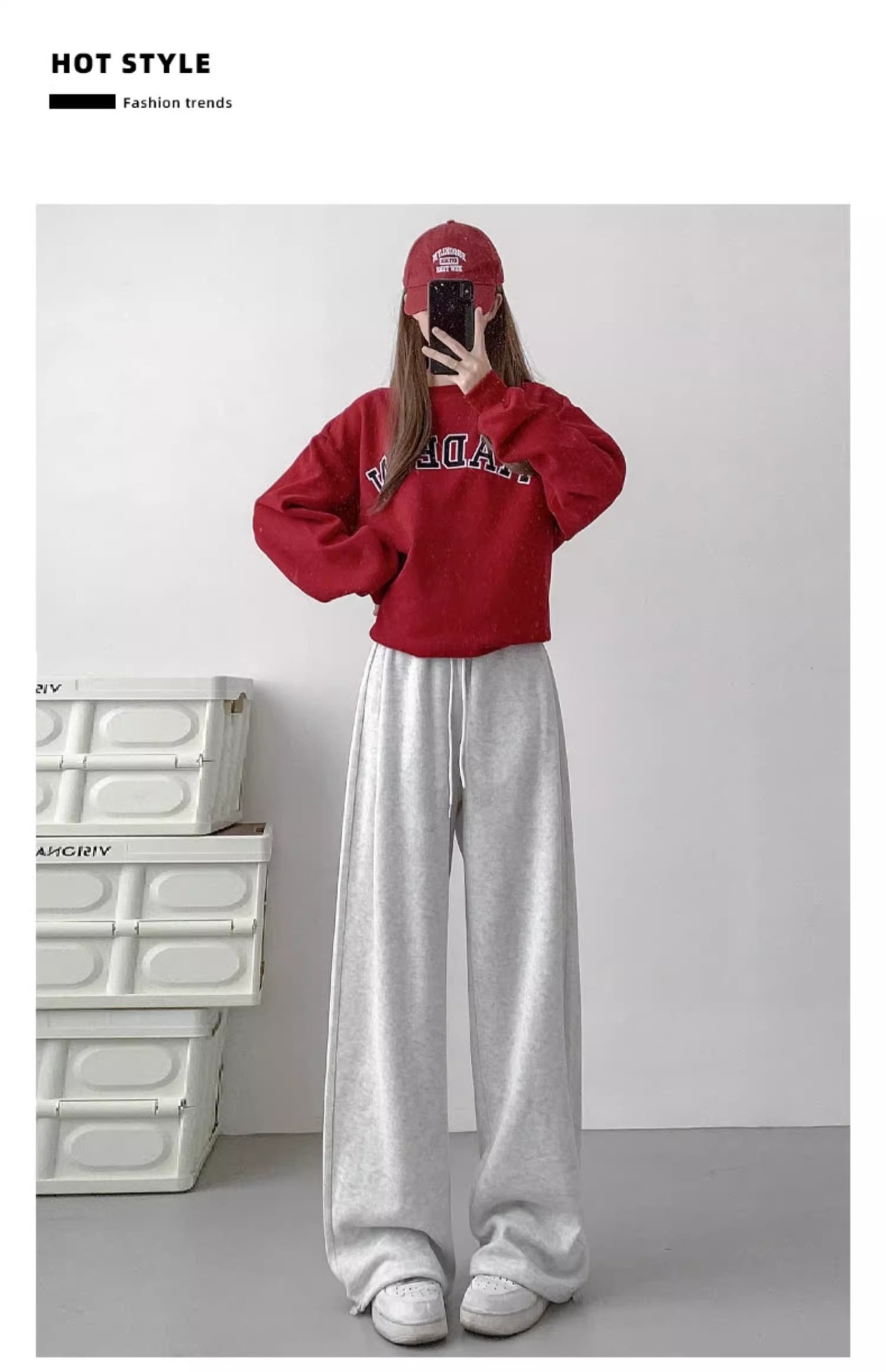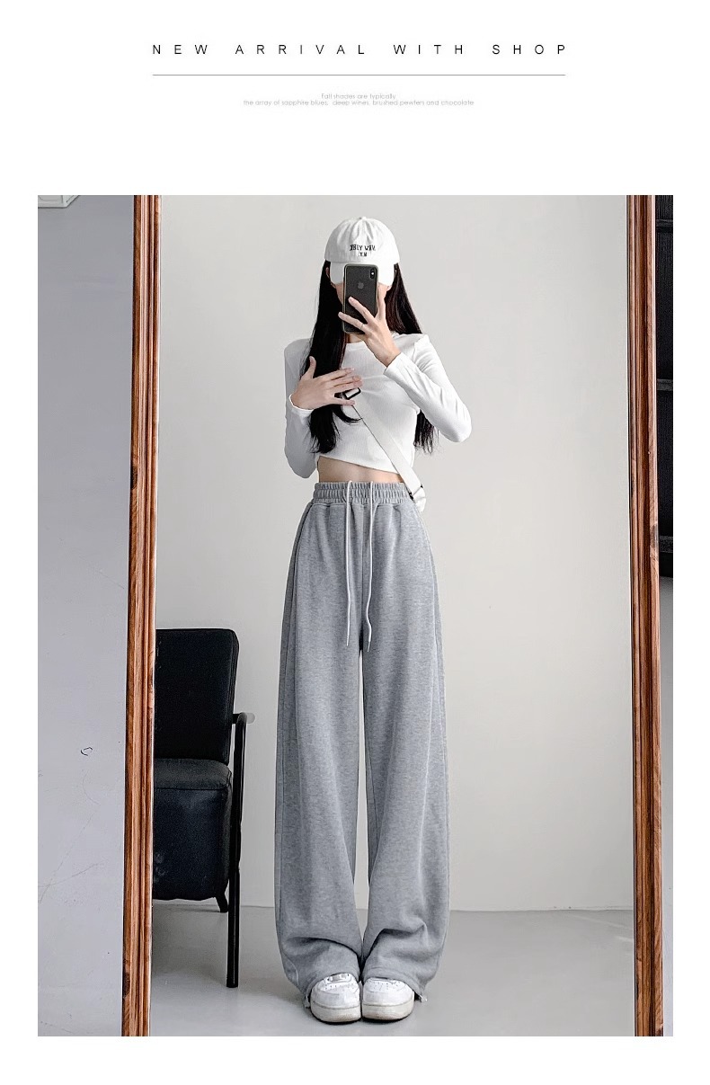 여성용 회색 와이드 팬츠 가을 겨울 하이웨이스트 루즈핏 레깅스 플리스 안감 아메리칸 스타일 스포츠 바지 롱 팬츠스토어 가기