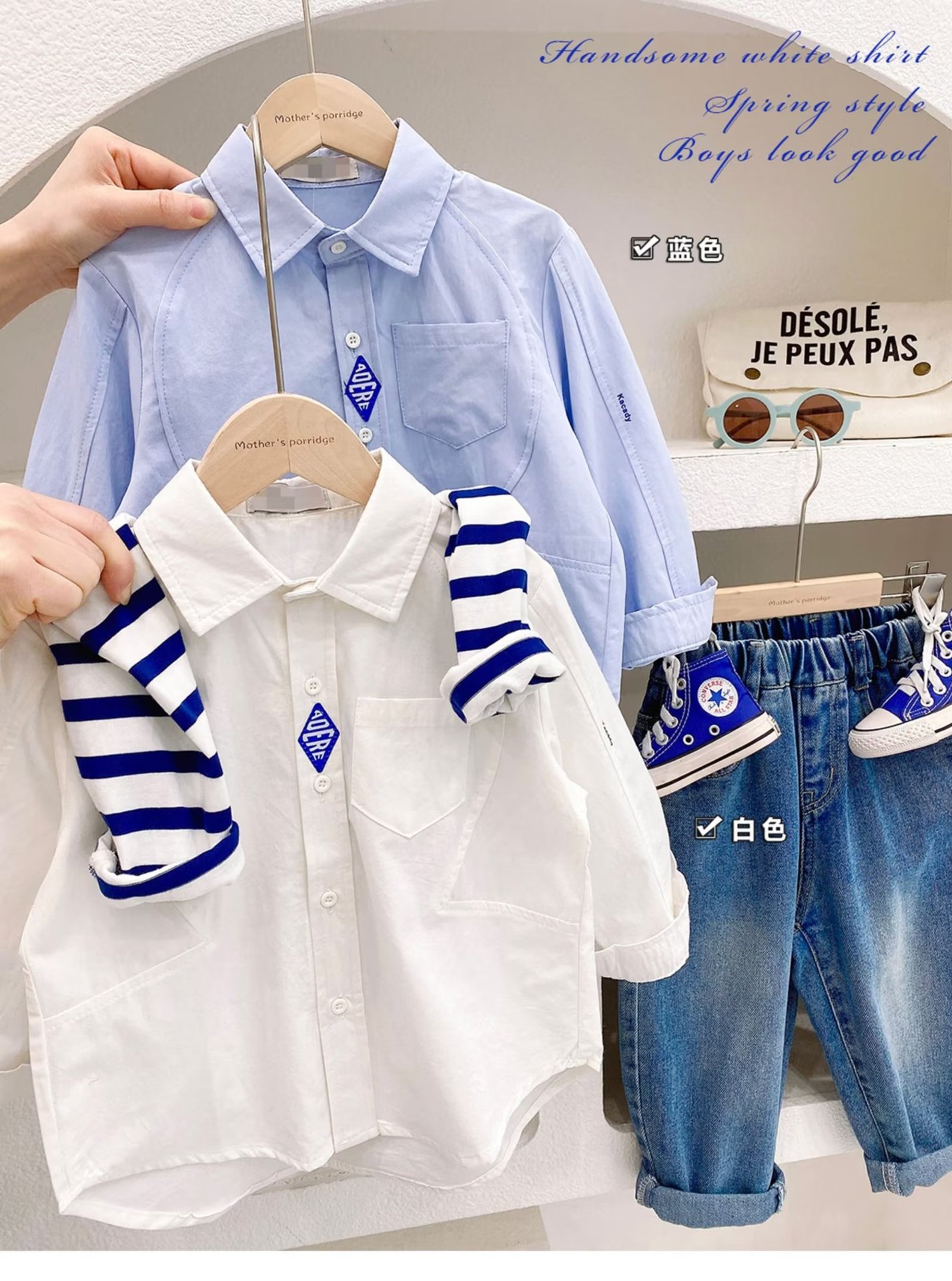 2025 봄, 가을 새로운 소년 대학 스타일 한국 스타일 긴팔 베이비 셔츠 새로운 캐주얼 다목적 유행 의류스토어 가기