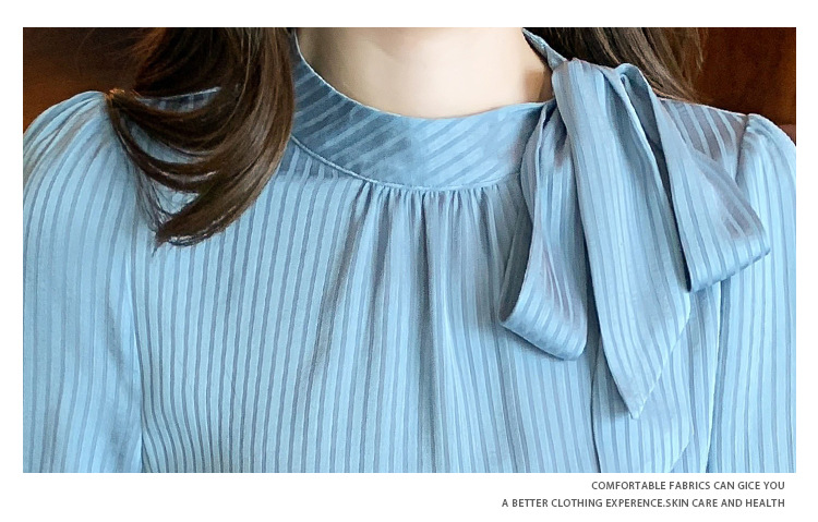 실제 촬영된 쉬폰 셔츠 여성용 고급스러운 2026 봄 신상 한국 스타일 리본 긴팔 우아한 스트라이프 탑스토어 가기