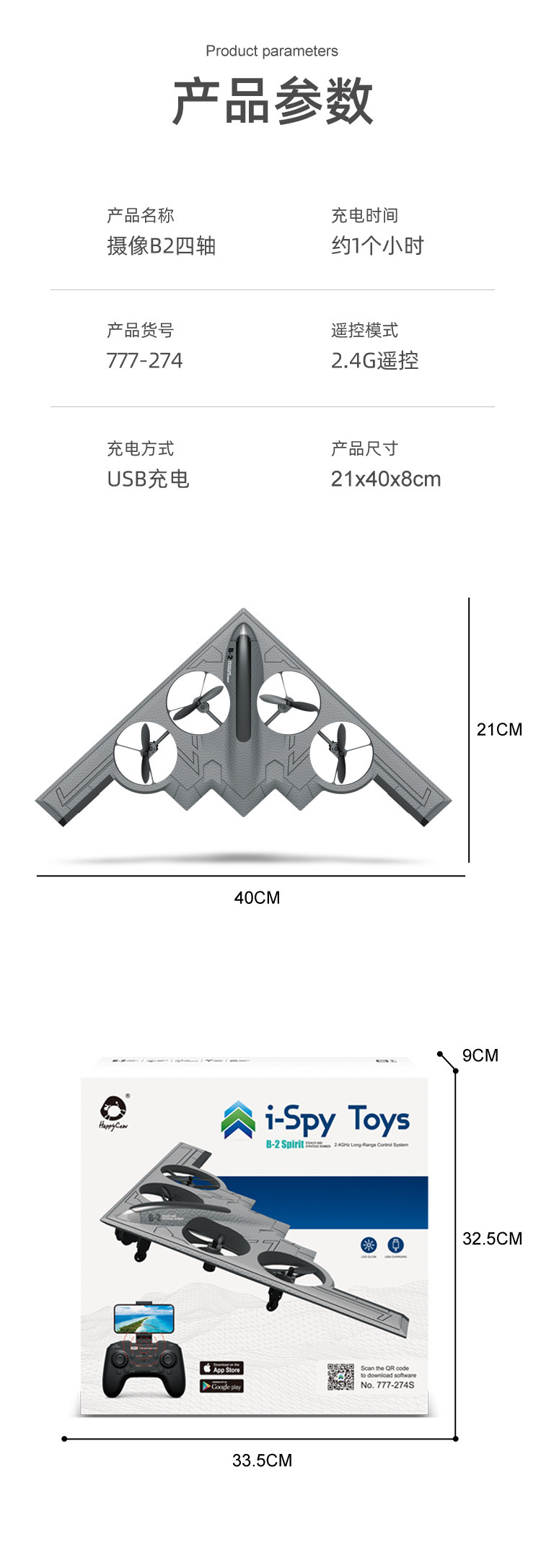 유휴 소 777-274 2.4g 리모콘 실시간 전송 카메라 4 축 평면 B2 (카메라 부착)