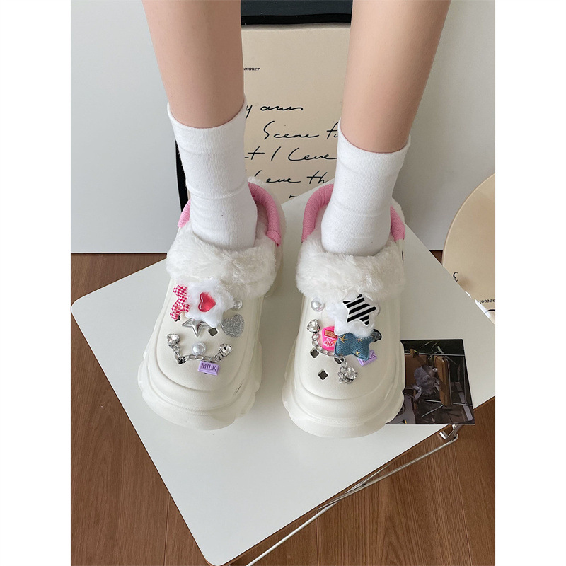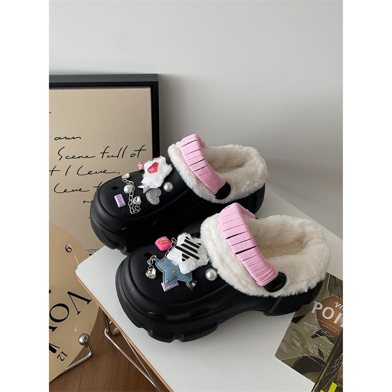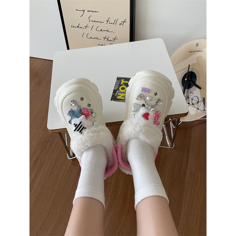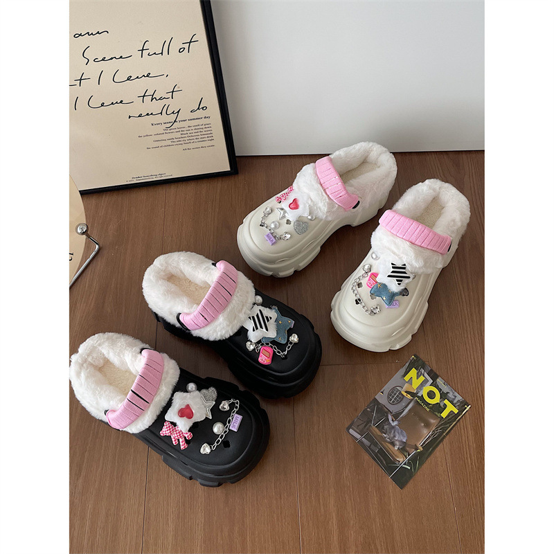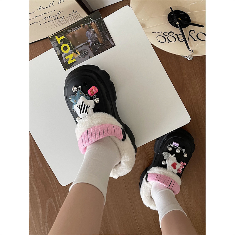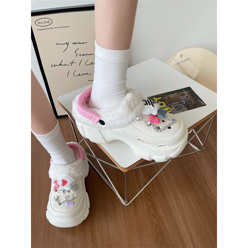 두꺼운 밑창 높이 귀여운 만화 기모 구멍 신발 여성용 가을/겨울 2023 모든 경기 똥 스테핑 슬리퍼스토어 가기