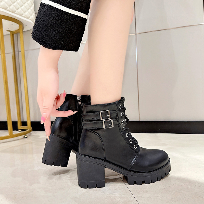 2023 새로운 둥근 머리 짧은 쪽 지퍼 단색 마틴 부츠 유럽과 미국 패션 플러스 사이즈 외국 무역 패션 부츠 여성스토어 가기