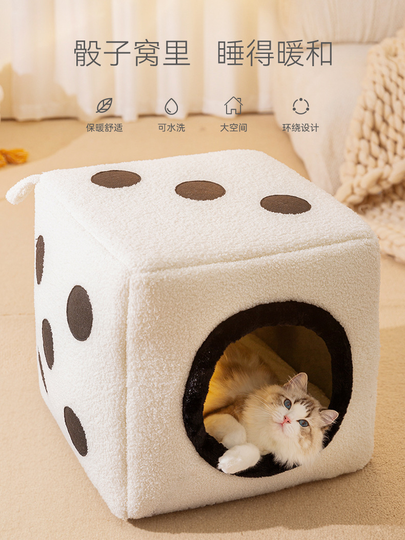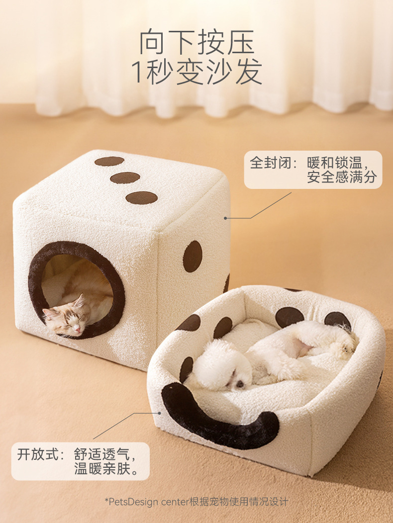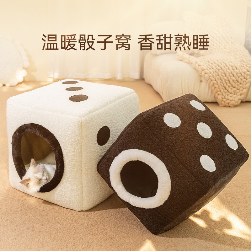흑백 주사위 가을과 겨울 폐쇄 고양이 둥지 따뜻한 두꺼운 개 둥지 테디 이중 목적 의자 애완 동물 둥지 매트 용품스토어 가기