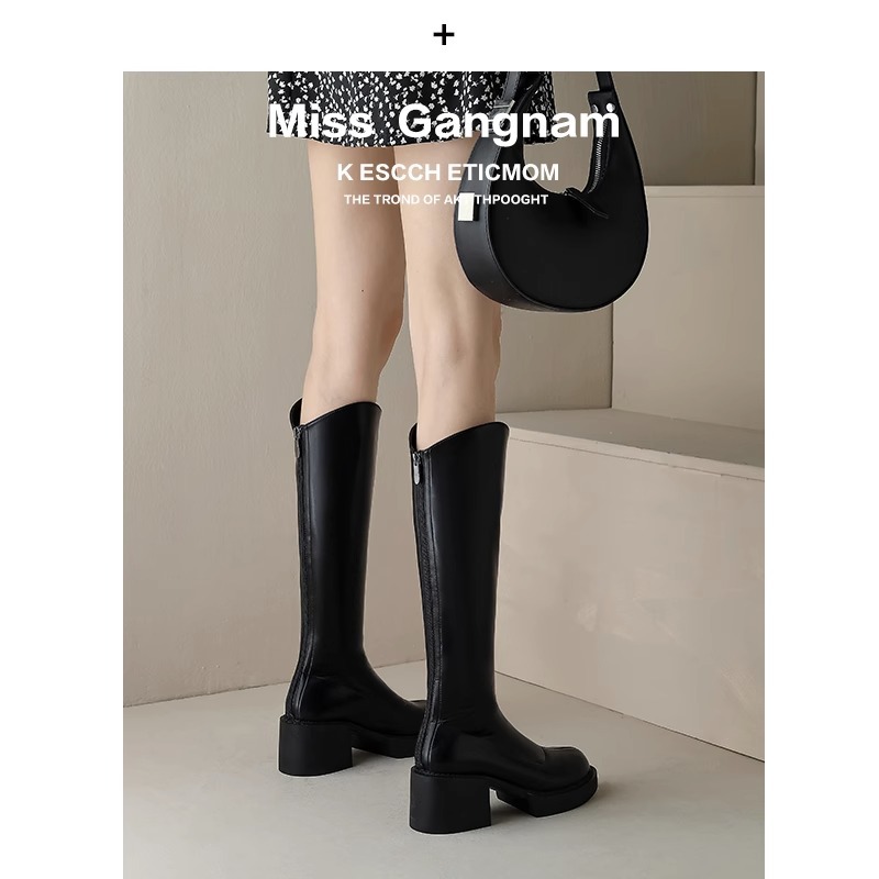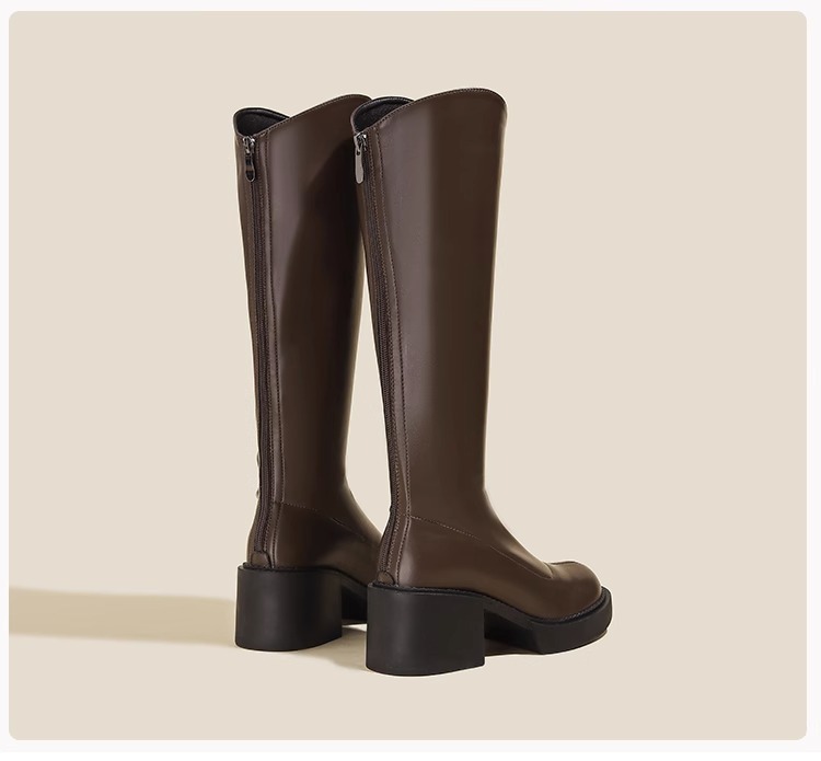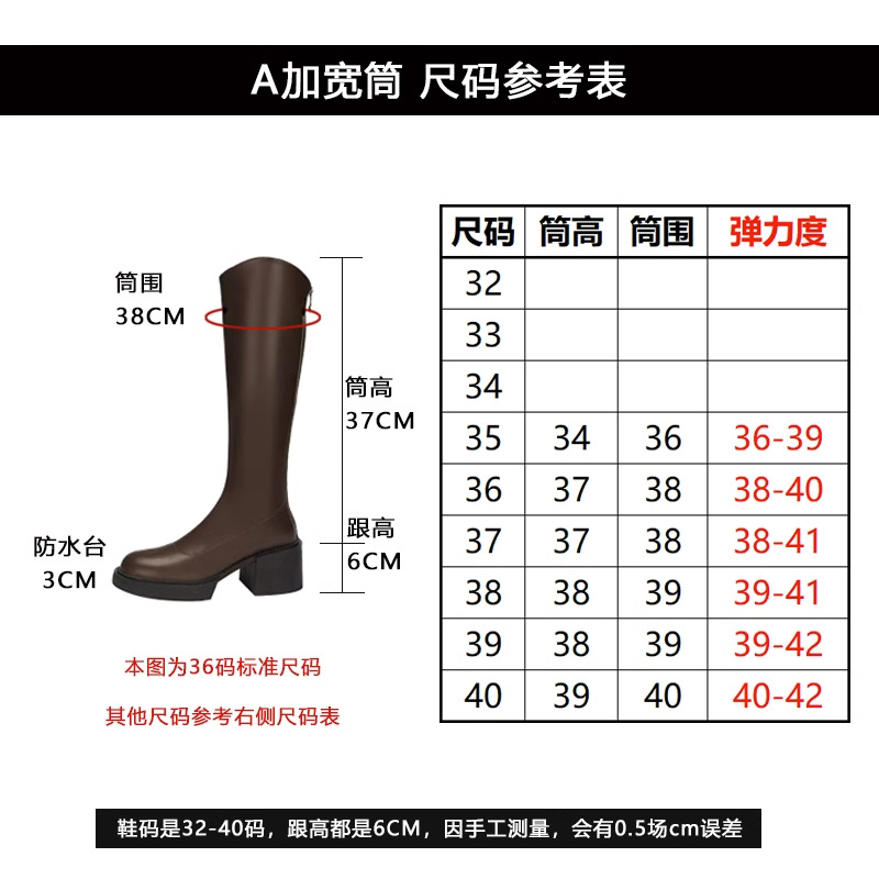통통녀 대형 붐 와이드 라이더 부츠 여성용 v-입 부츠 두꺼운 다리 높은 부츠 두꺼운 뒤꿈치 부츠 여성용 다크 브라운 부츠스토어 가기