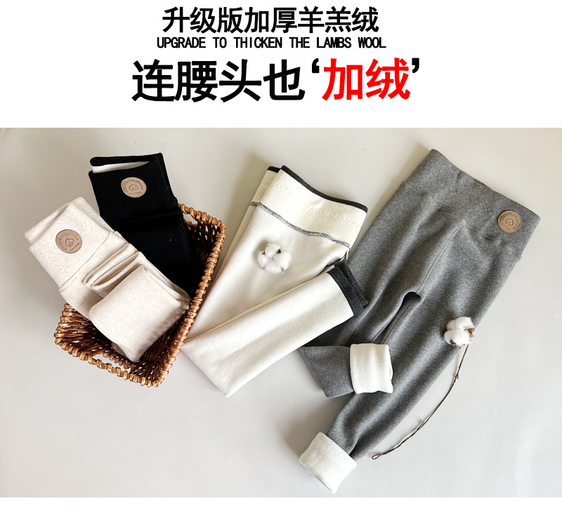어린이 레깅스 가을과 겨울 하이 웨이스트 뼈없는 단색 소녀 겉옷 레깅스 기모 두꺼운 겨울 아기 바지