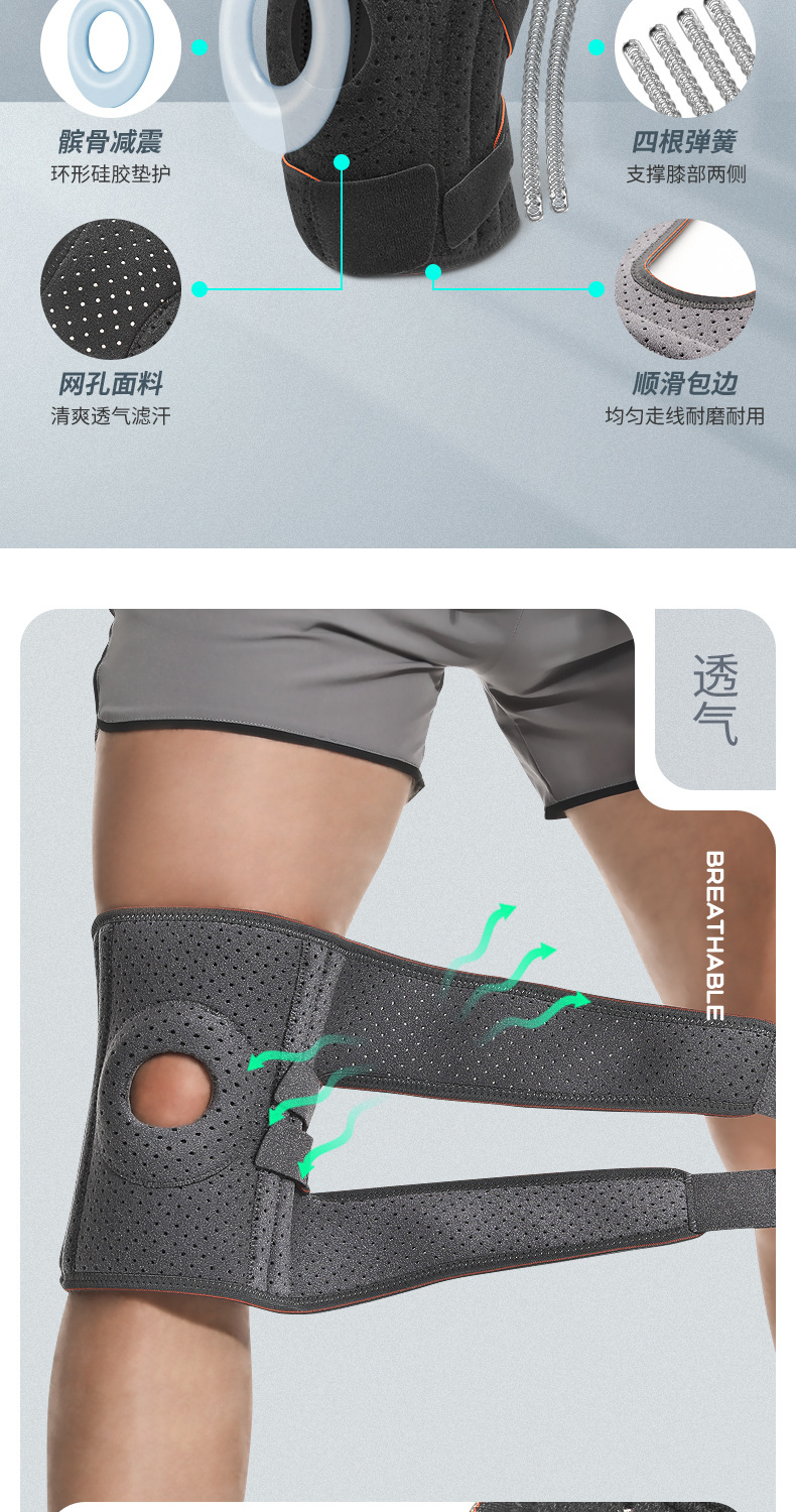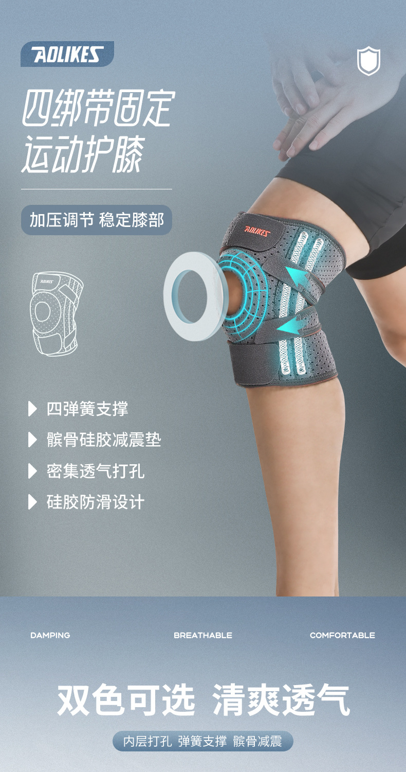 스포츠 무릎 패드 피트니스 라이딩 프로텍터 실행 등산 스프링 다리 패드 가압 실리콘 미끄럼 방지 무릎 패드