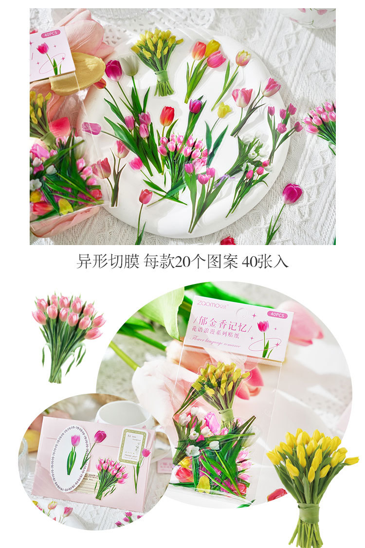 꽃 로맨틱 식물 꽃 꽃 일러스트 PET 스티커 문학 복고풍 손 계정 장식 콜라주 재료 스티커스토어 가기