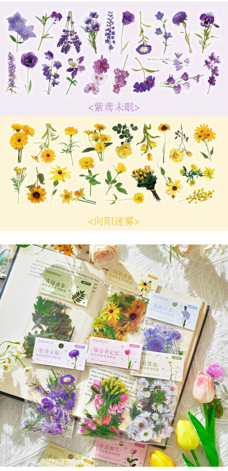 꽃 로맨틱 식물 꽃 꽃 일러스트 PET 스티커 문학 복고풍 손 계정 장식 콜라주 재료 스티커