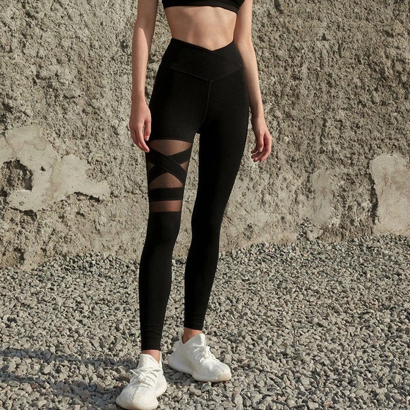 블랙 알몸 통기성 요가 바지 메쉬 스포츠 바지 캐주얼 타이트 팬츠 여성용 하이 웨이스트 힙 리프팅 피트니스 바지 고탄성